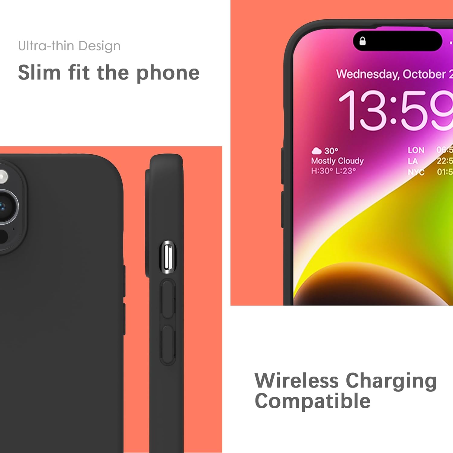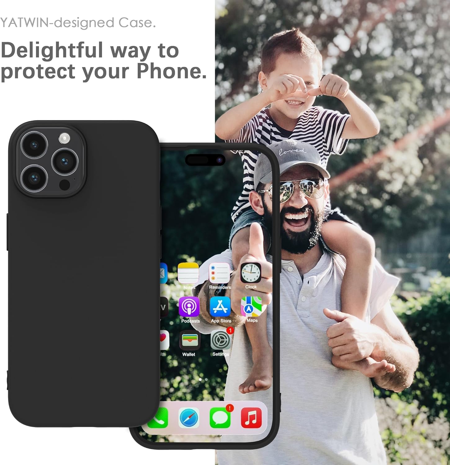 YATWIN Кейс за iPhone 14 Pro, Премиум силиконов калъф за мобилен телефон със защита на камерата, Копринен, Мек на допир, Ултра тънък, Удароустойчив, Устойчив на надраскване, Защитен калъф, Черен