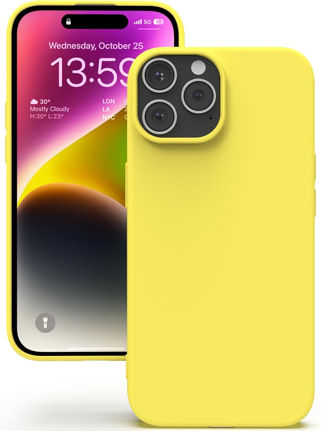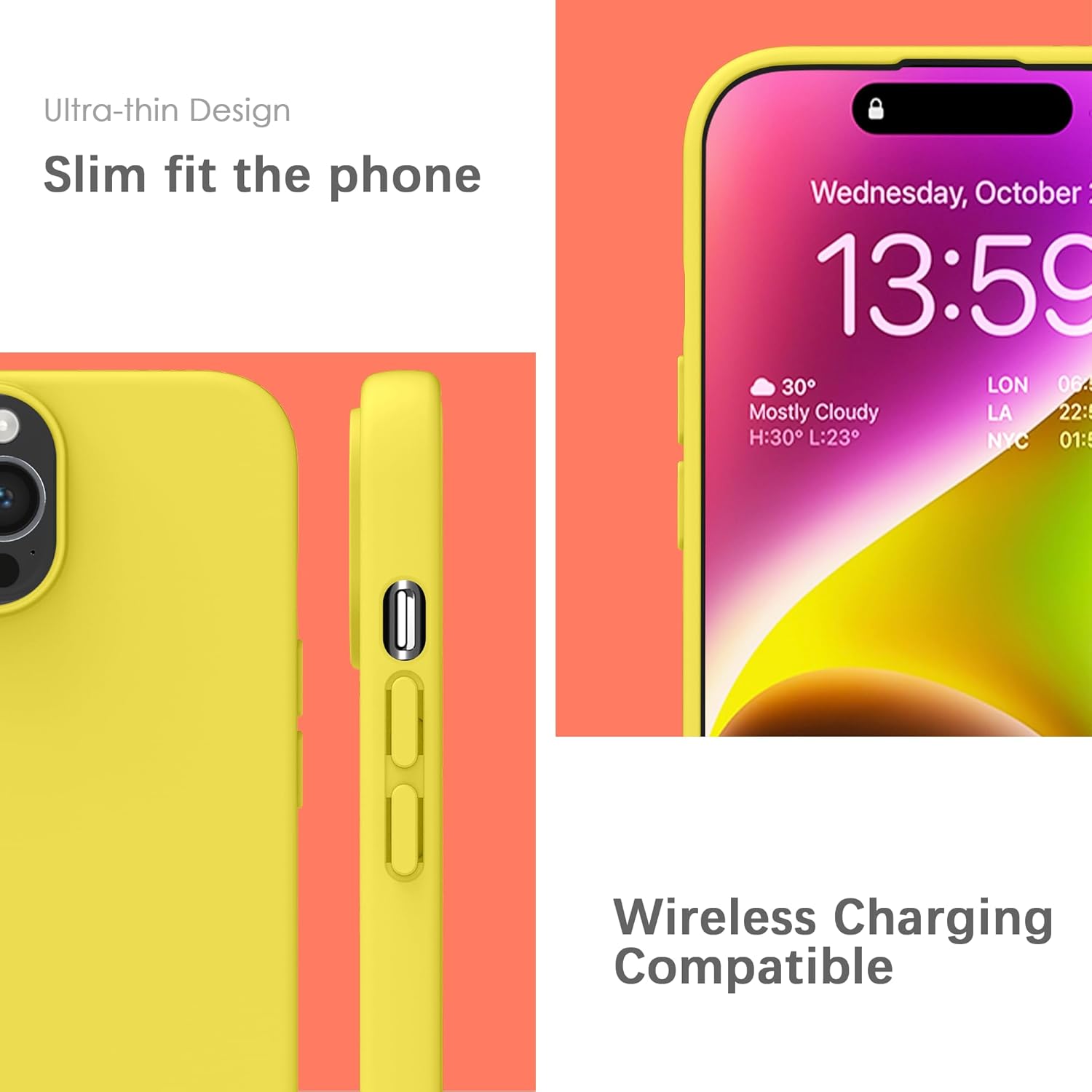 YATWIN Кейс за iPhone 14 Pro, Премиум силиконов калъф за мобилен телефон със защита на камерата, Копринен, Мек на допир, Ултра тънък, Удароустойчив, Устойчив на надраскване, Защитен калъф, Жълт