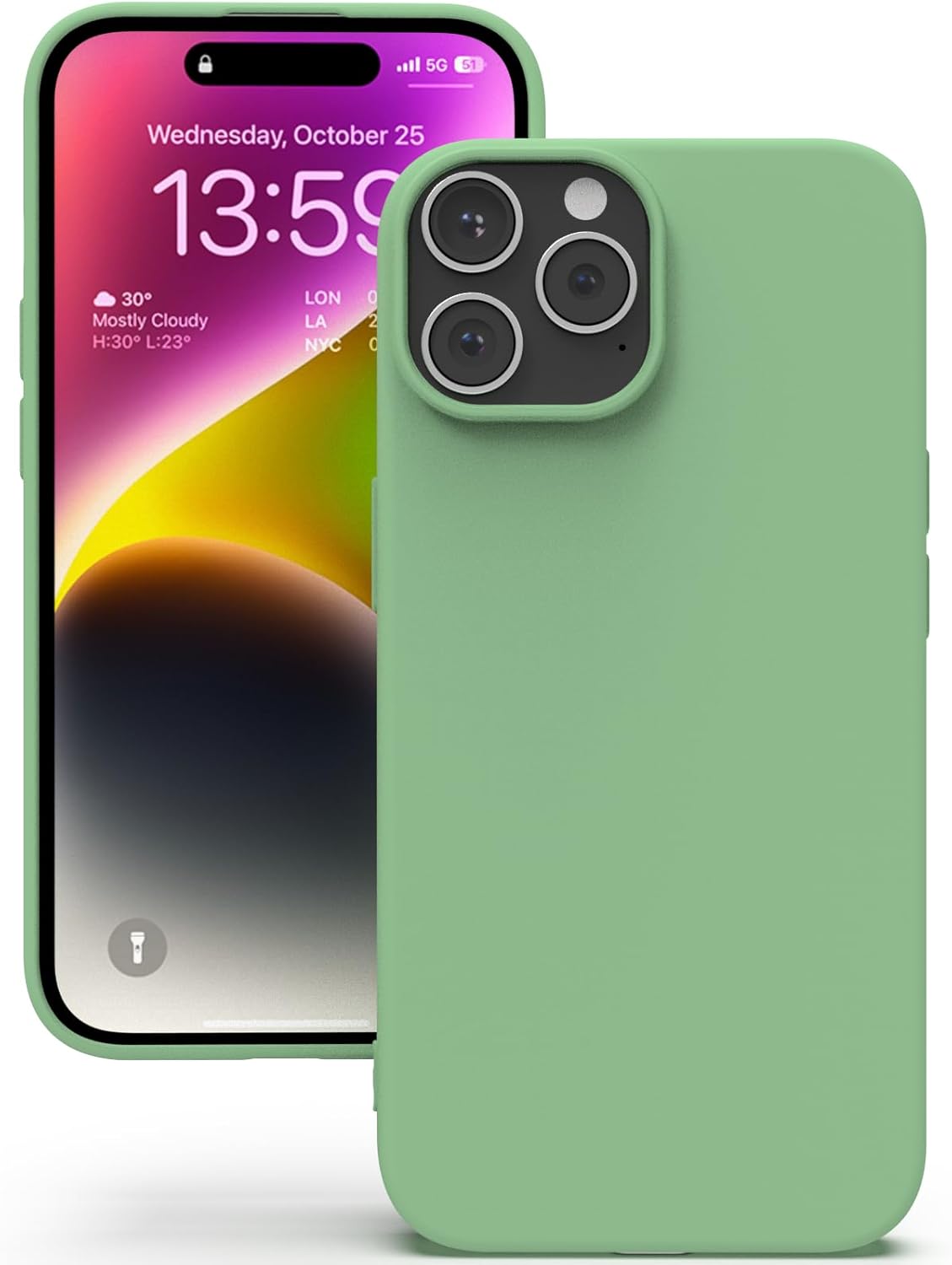 YATWIN Кейс за iPhone 14 Pro, Премиум силиконов калъф за мобилен телефон със защита на камерата, Копринен, Мек на допир, Ултра тънък, Удароустойчив, Устойчив на надраскване, Защитен калъф, Ментово зелен