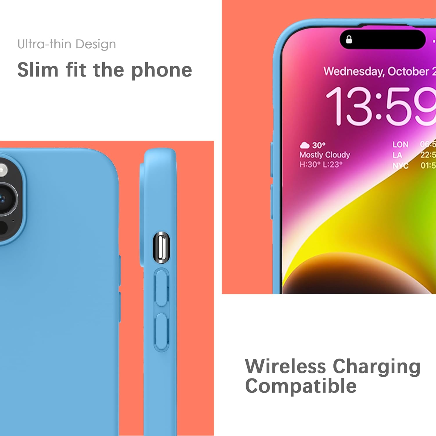 YATWIN Кейс за iPhone 14 Pro, Премиум силиконов калъф за мобилен телефон със защита на камерата, Копринен, Мек на допир, Ултра тънък, Удароустойчив, Устойчив на надраскване, Защитен калъф, Небесно син