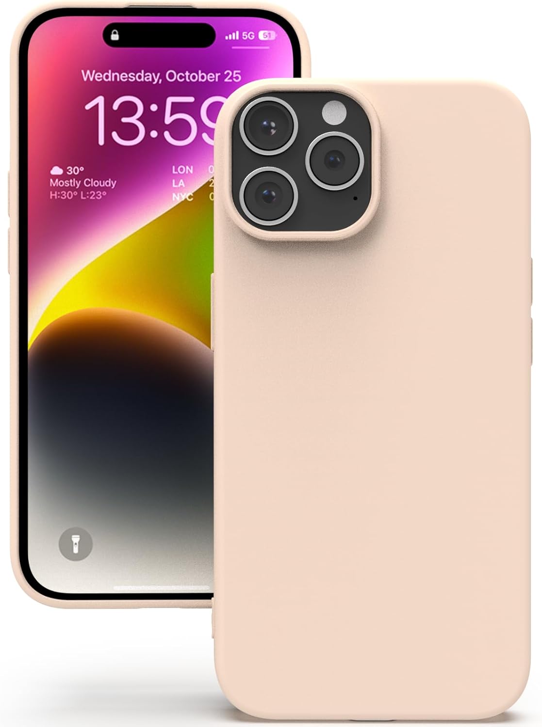 YATWIN Кейс за iPhone 14 Pro, Премиум силиконов калъф за мобилен телефон със защита на камерата, Копринен, Мек на допир, Ултра тънък, Удароустойчив, Устойчив на надраскване, Защитен калъф, Светло розов