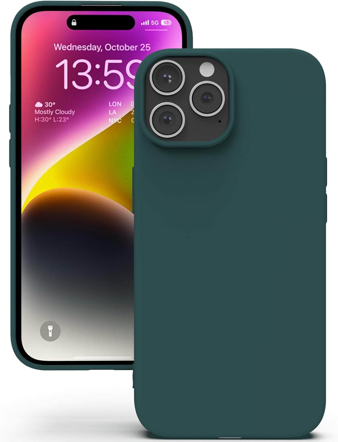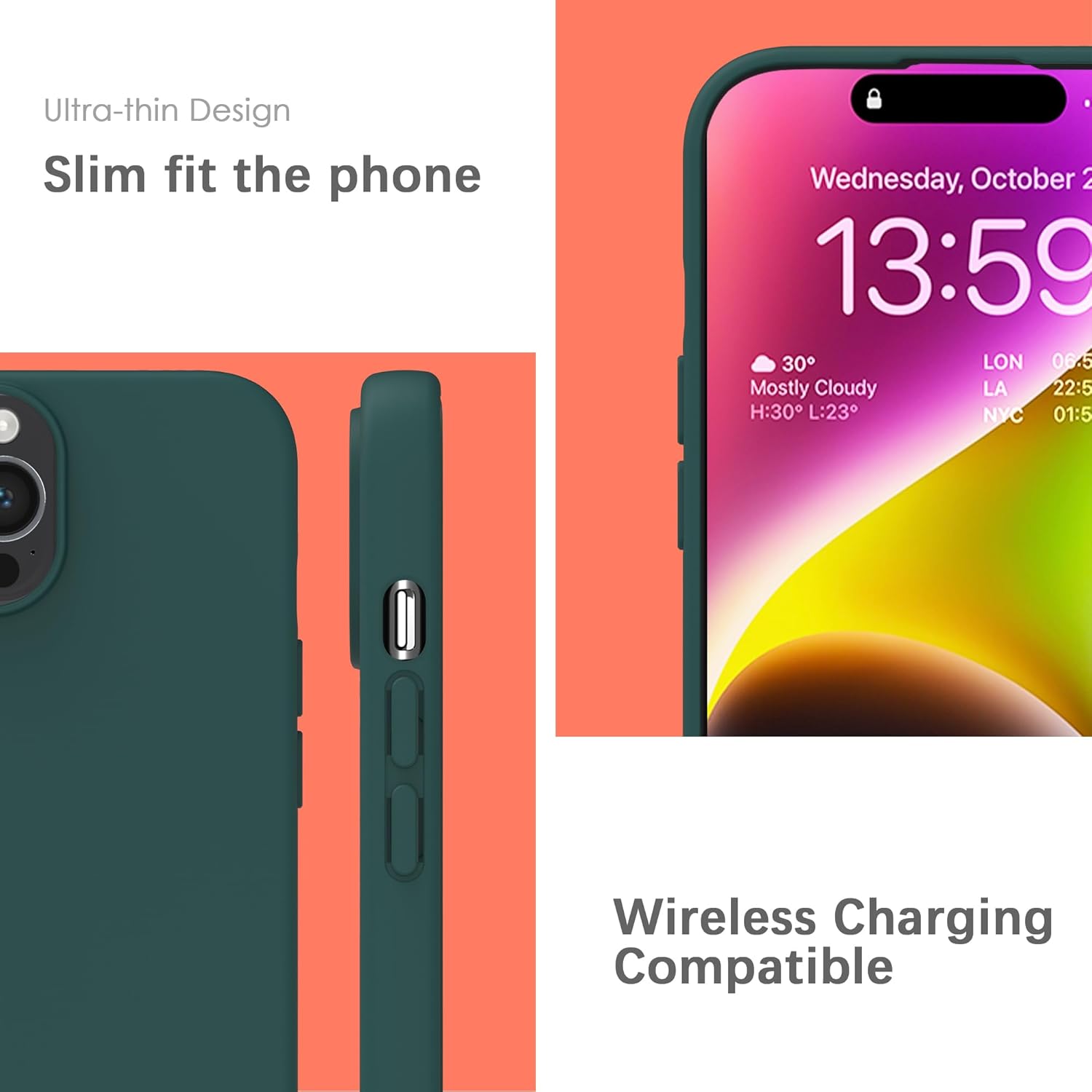 YATWIN Кейс за iPhone 14 Pro, Премиум силиконов калъф за мобилен телефон със защита на камерата, Копринен, Мек на допир, Ултра тънък, Удароустойчив, Устойчив на надраскване, Защитен калъф, Зелен