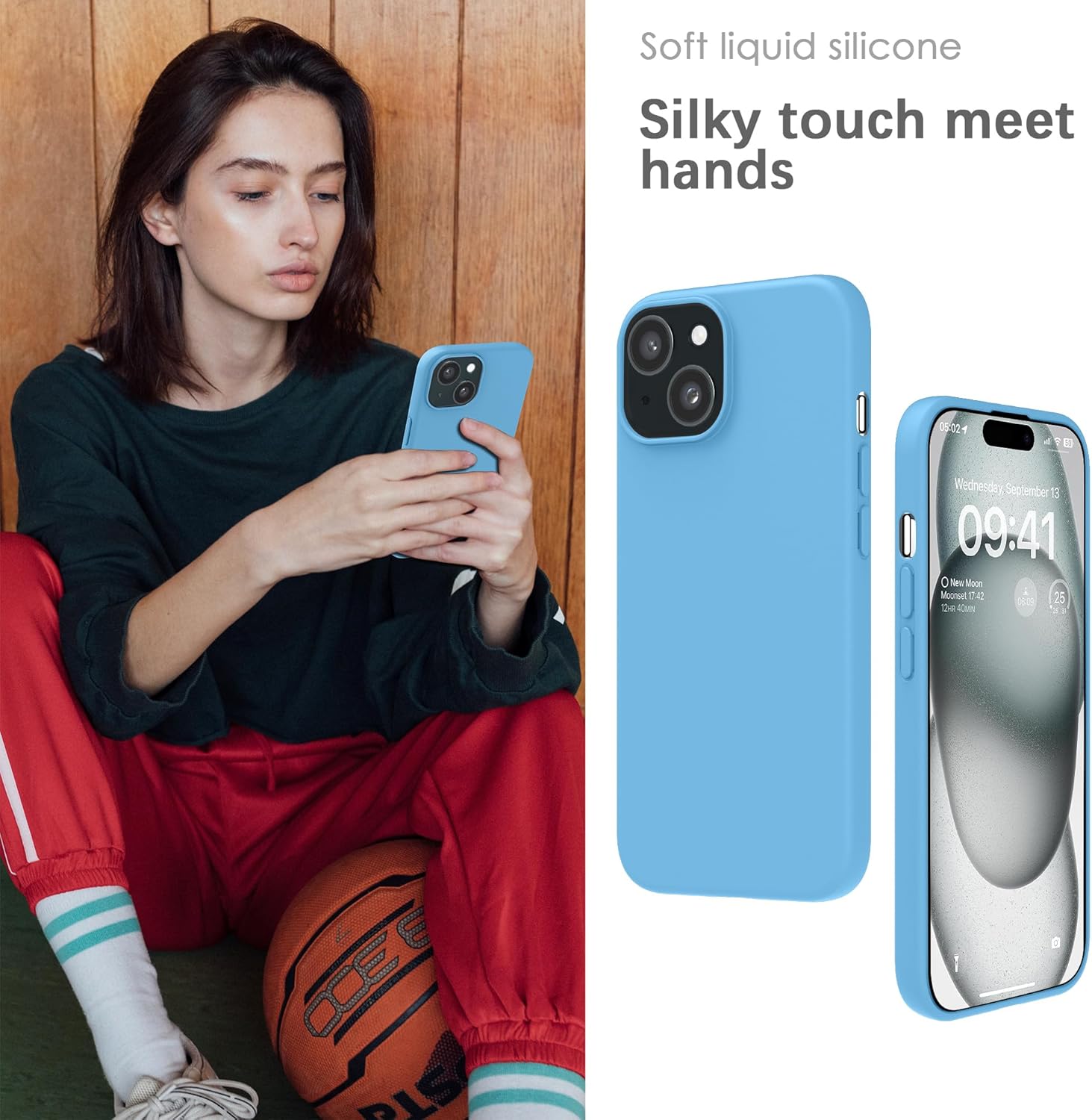 YATWIN Кейс за iPhone 15 Plus, Премиум силиконов калъф за мобилен телефон с копринено меко докосване, Ултра тънък, Удароустойчив, Устойчив на надраскване, Защитен калъф, Лазурно син