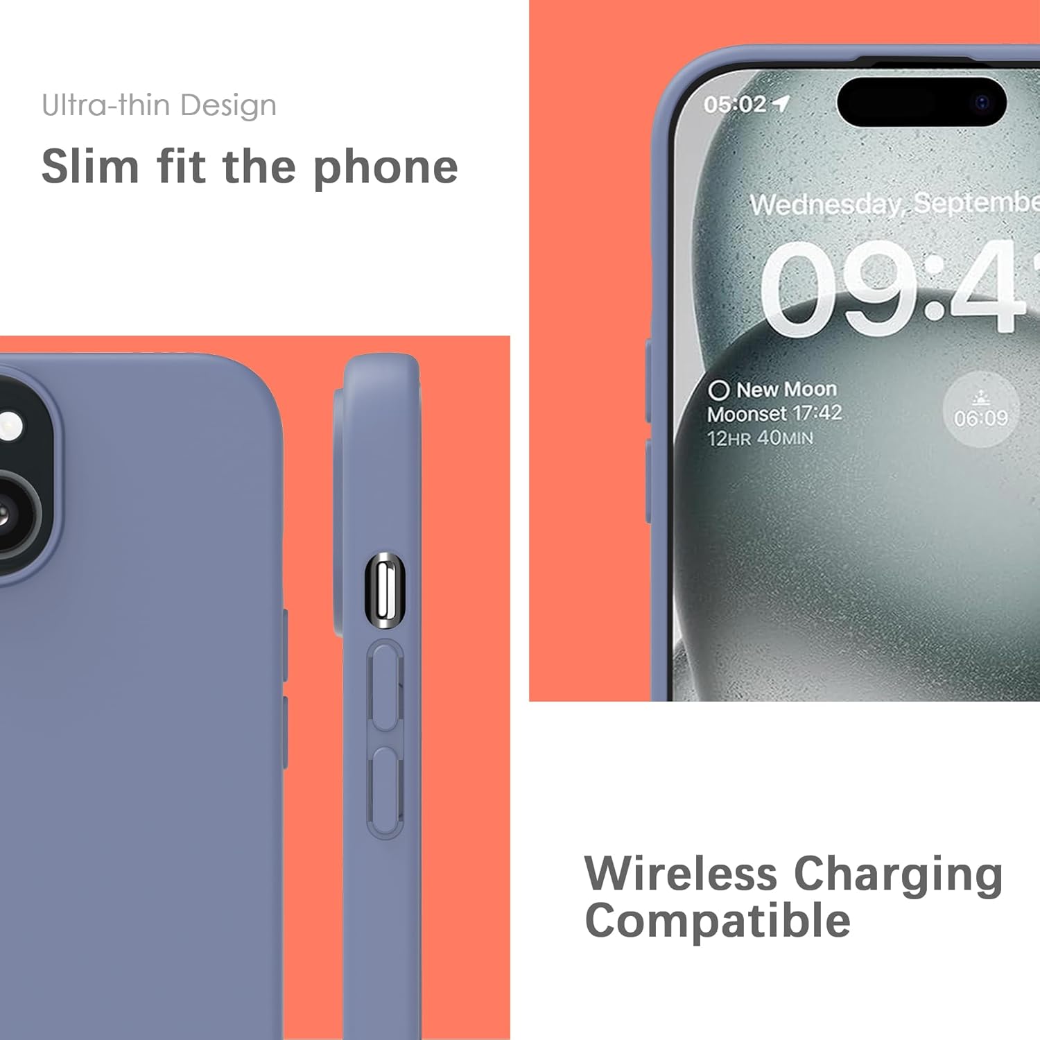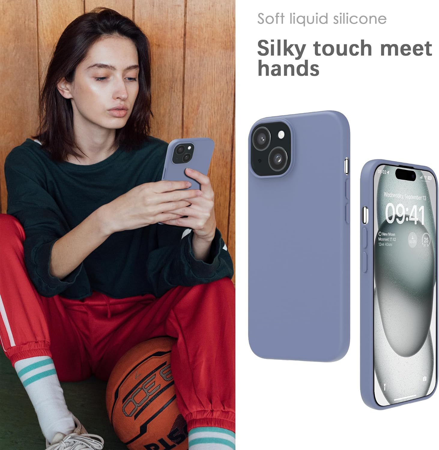 YATWIN Кейс за iPhone 15 Plus, Премиум силиконов калъф за мобилен телефон с копринено меко покритие, Ултра тънък, Удароустойчив, Устойчив на надраскване, Защитен калъф, Лавандулово сив