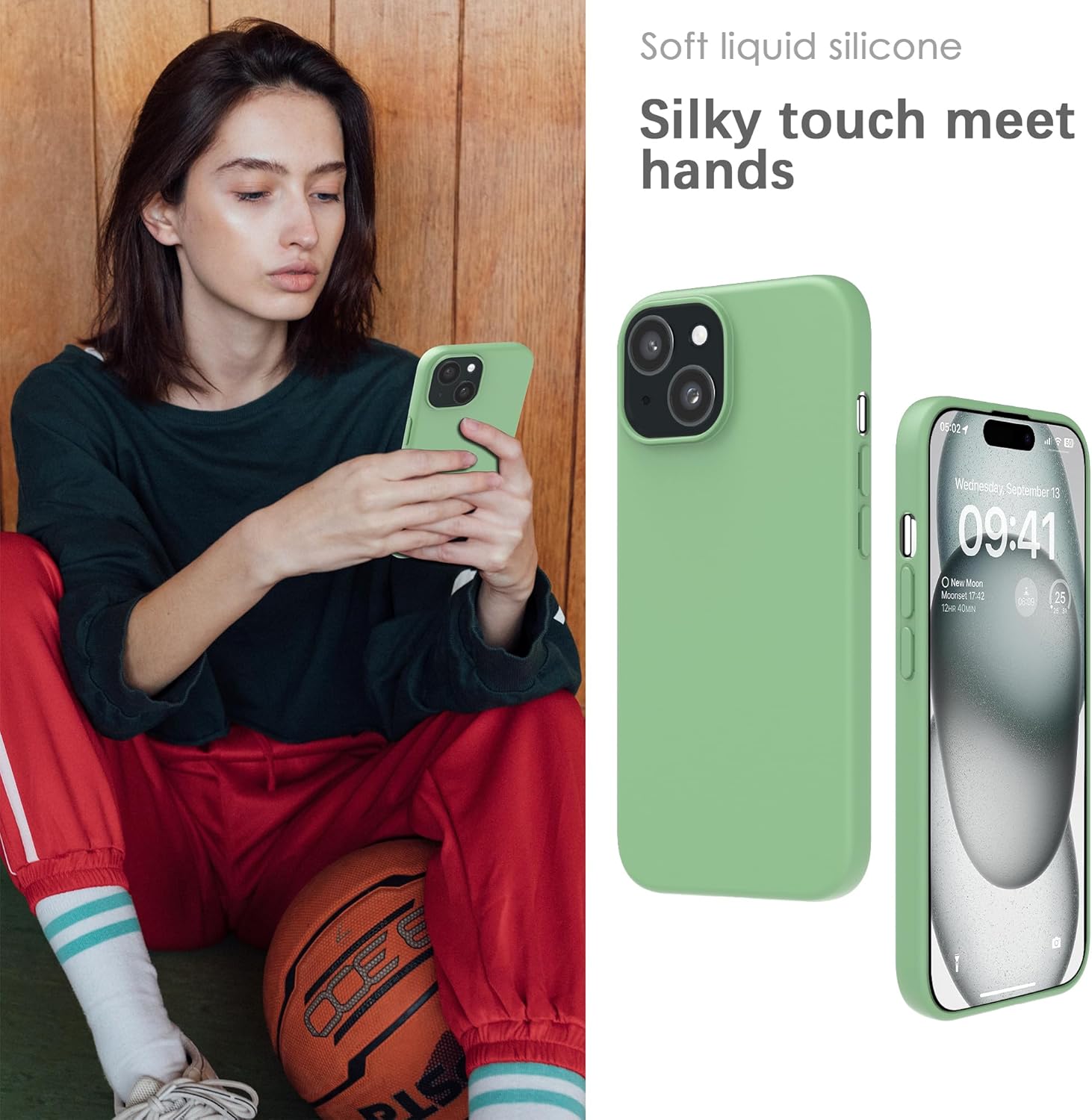 YATWIN Кейс за iPhone 15 Plus, Премиум силиконов калъф за мобилен телефон с копринено меко покритие, Ултра тънък, Удароустойчив, Устойчив на надраскване, Защитен калъф, Ментово зелен