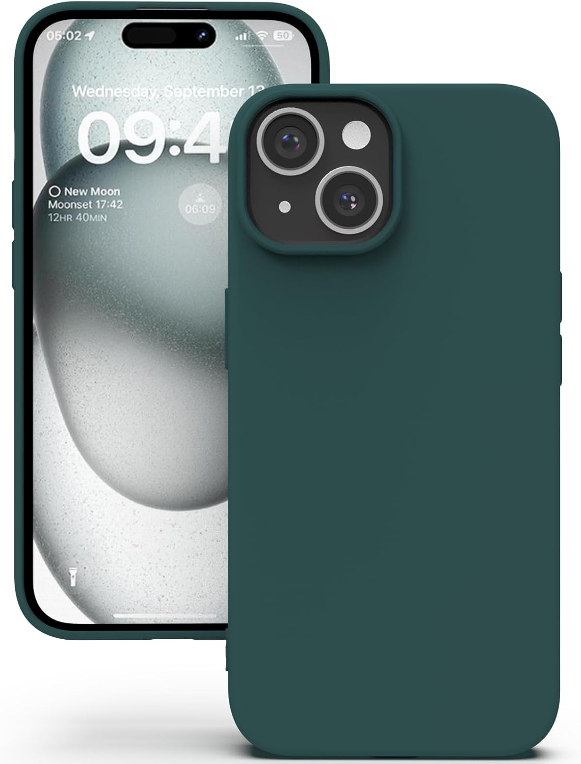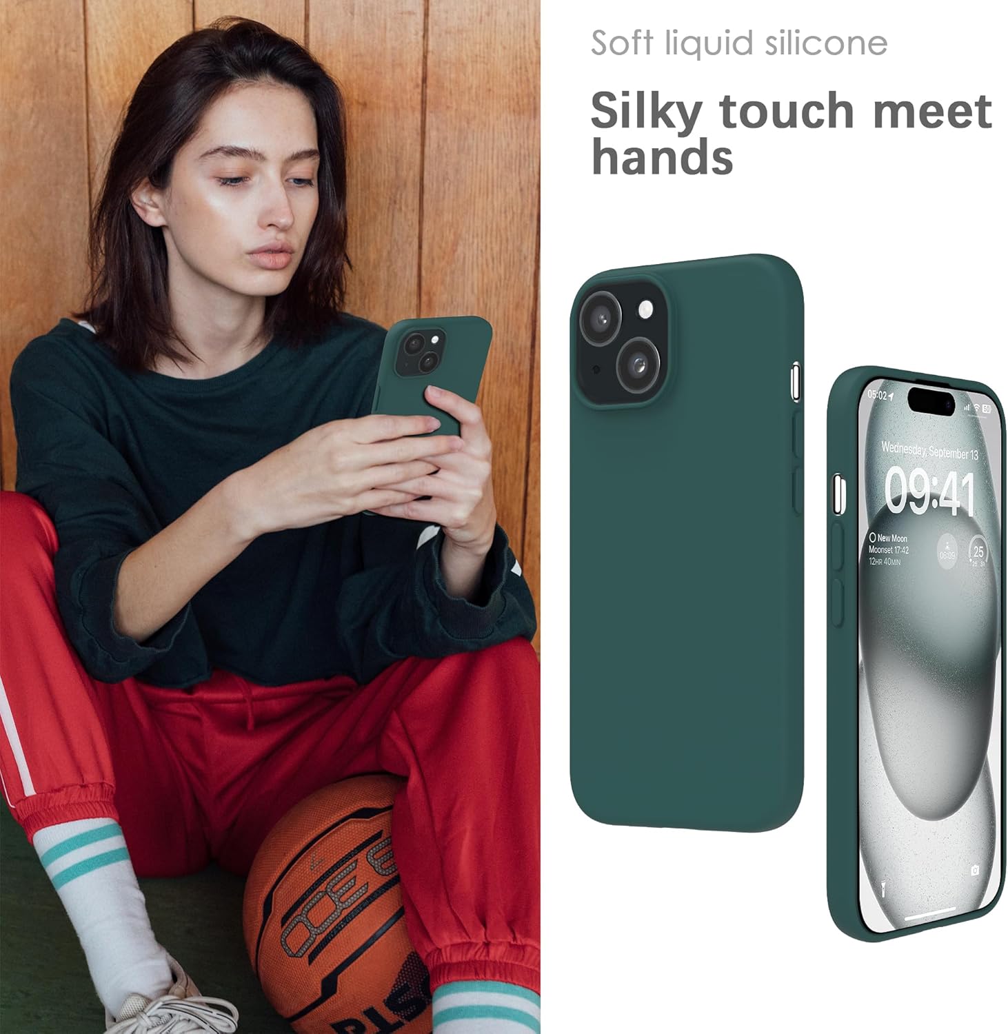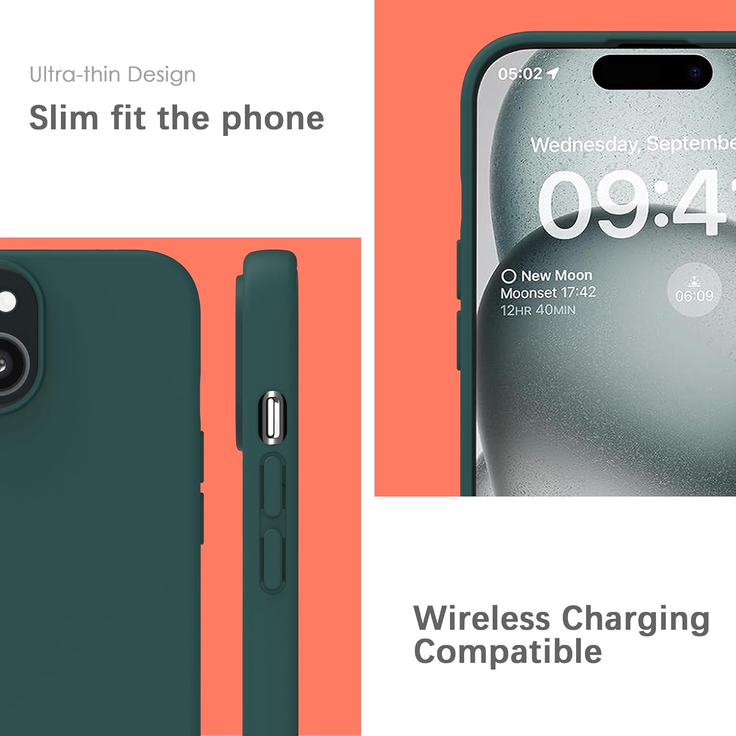 YATWIN Кейс за iPhone 15 Plus, Премиум силиконов калъф за мобилен телефон с копринено меко покритие, Ултра тънък, Удароустойчив, Устойчив на надраскване, Защитен калъф, Зелен