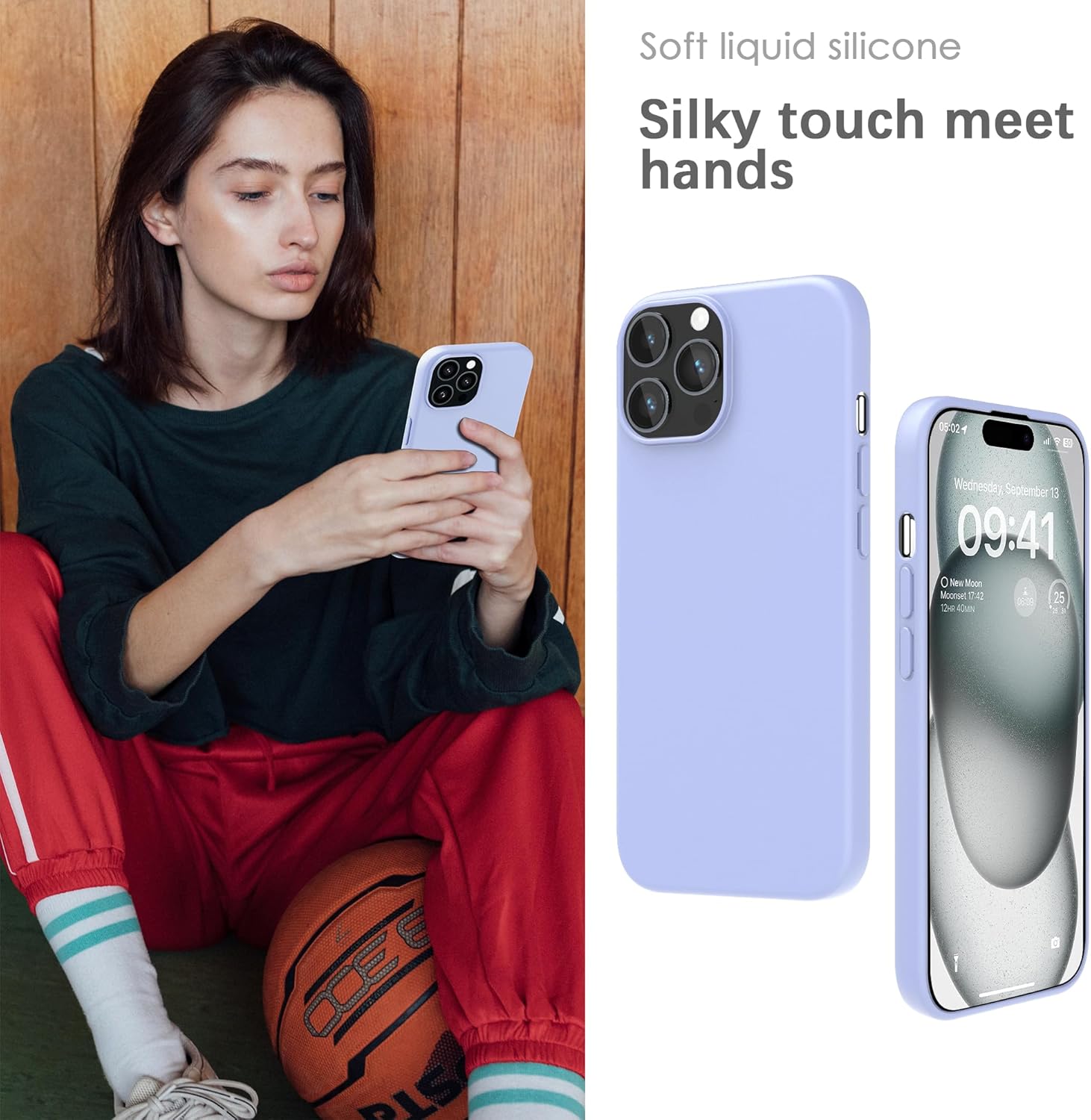 YATWIN Кейс за iPhone 15 Pro Max, Премиум силиконов калъф за мобилен телефон със защита на камерата, Копринен, Мек на допир, Ултра тънък, Удароустойчив, Устойчив на надраскване, Защитен калъф, Лилав