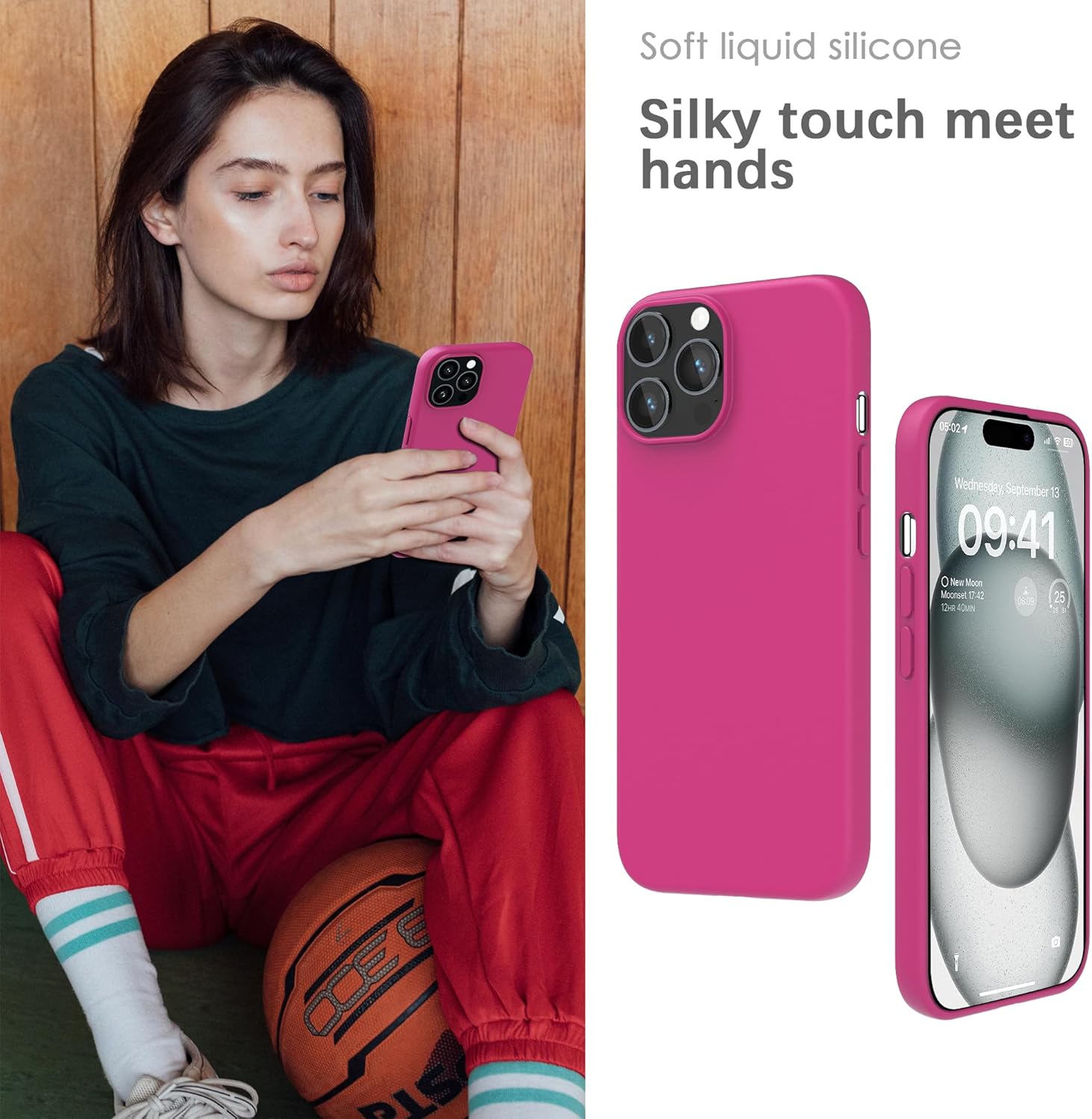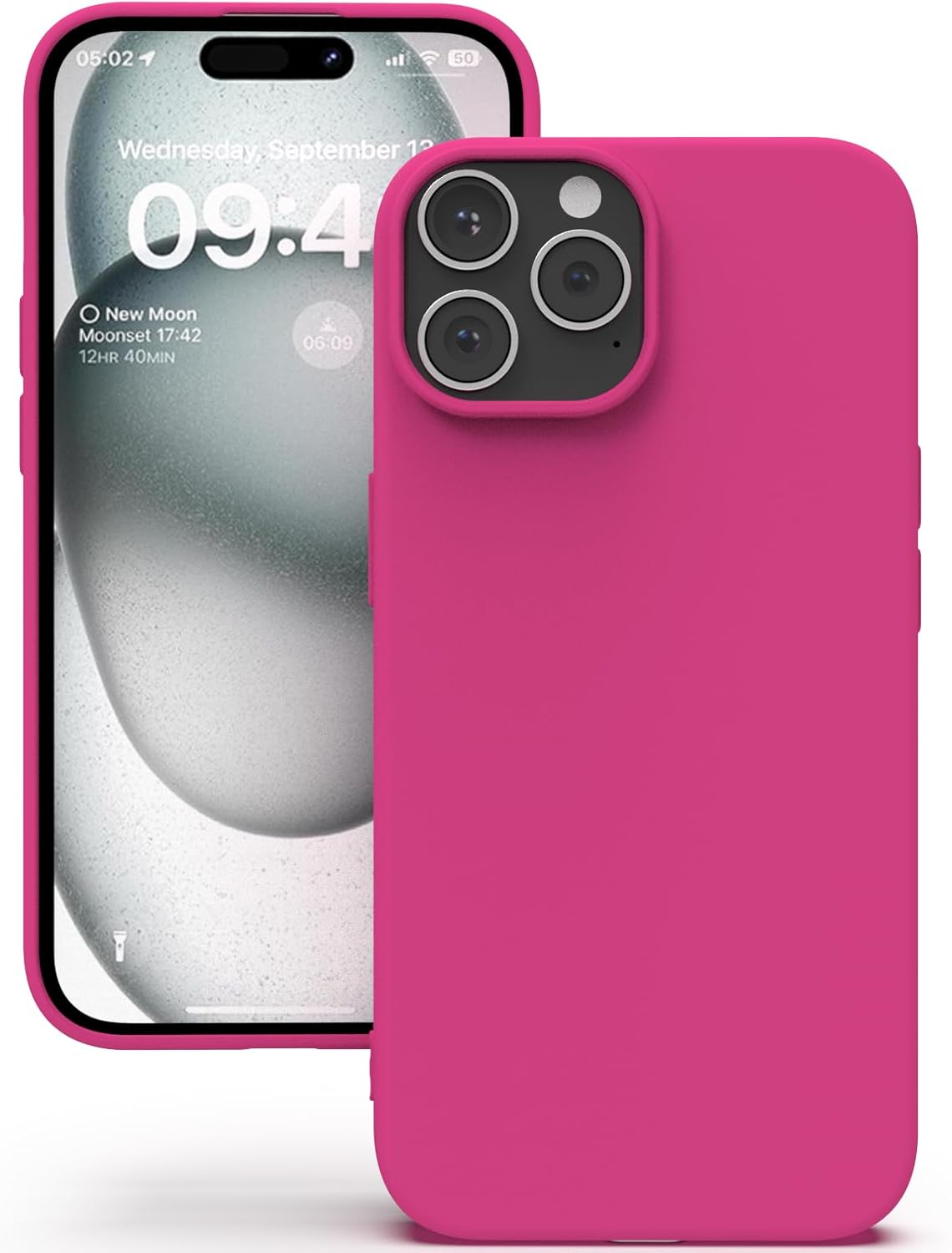YATWIN Кейс за iPhone 15 Pro Max, Премиум силиконов калъф за мобилен телефон със защита на камерата, Копринен, Мек на допир, Ултра тънък, Удароустойчив, Устойчив на надраскване, Защитен калъф, Магента