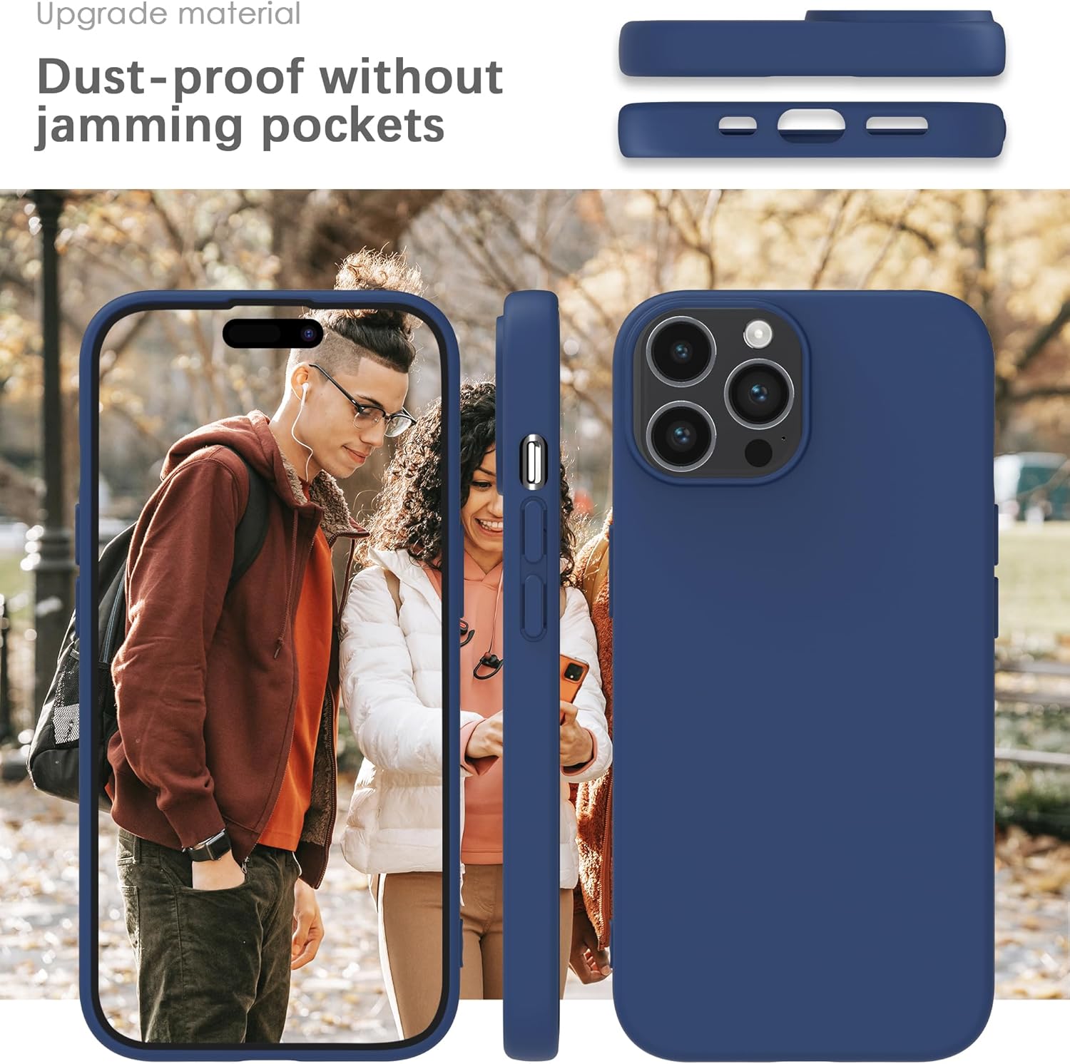 YATWIN Кейс за iPhone 15 Pro Max, Премиум силиконов калъф за мобилен телефон със защита на камерата, Копринен, Мек на допир, Ултра тънък, Удароустойчив, Устойчив на надраскване, Защитен калъф, Син