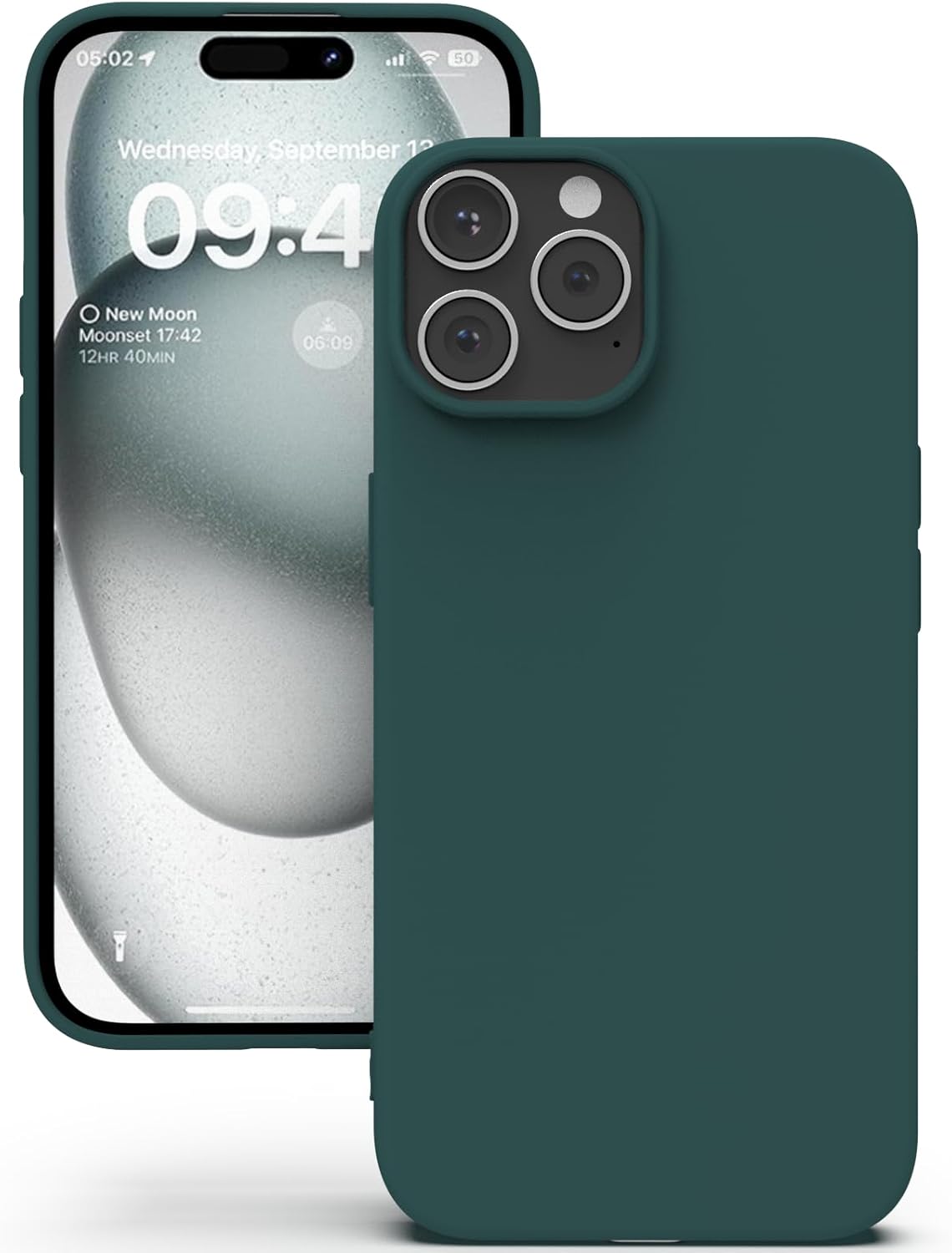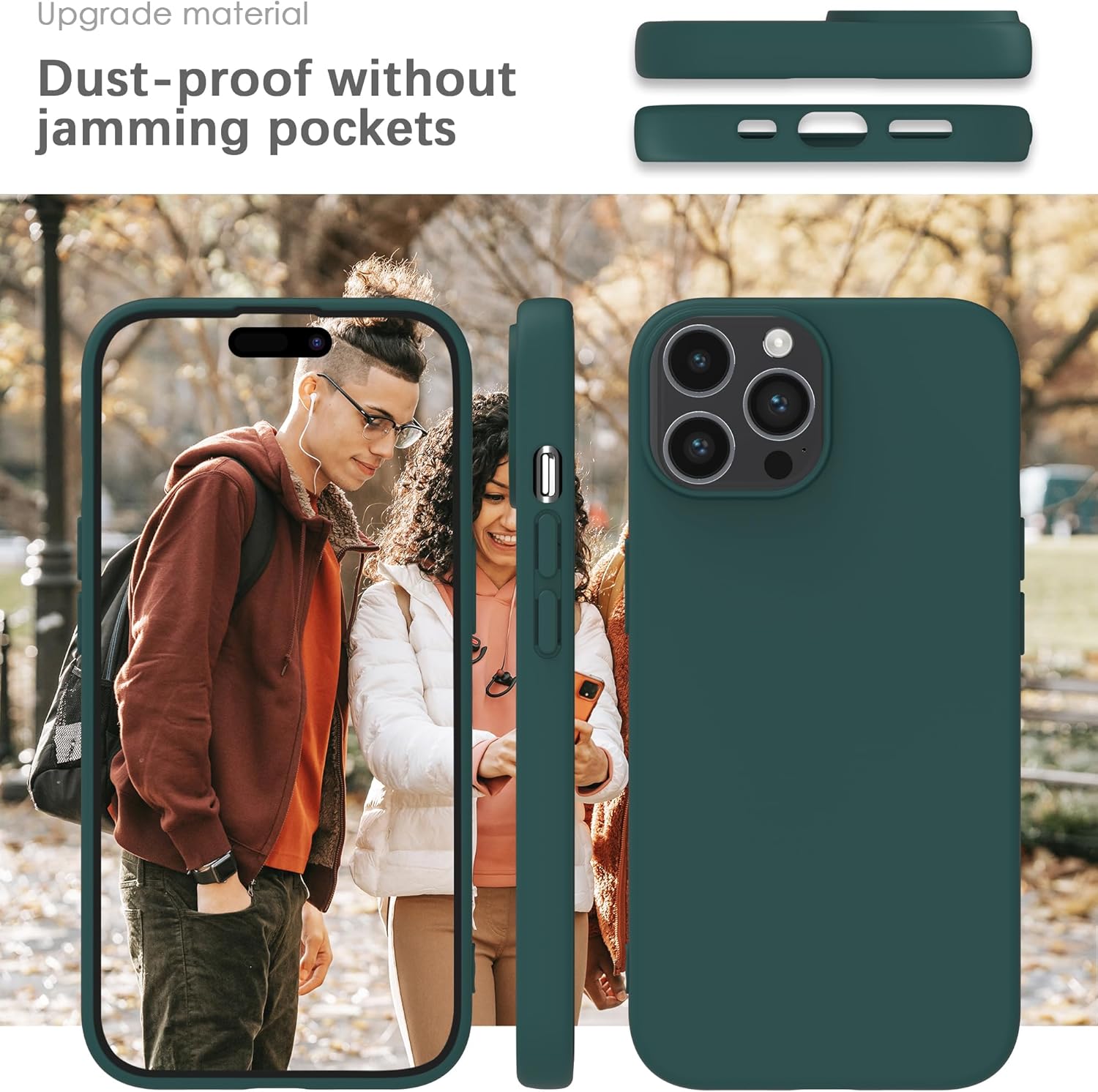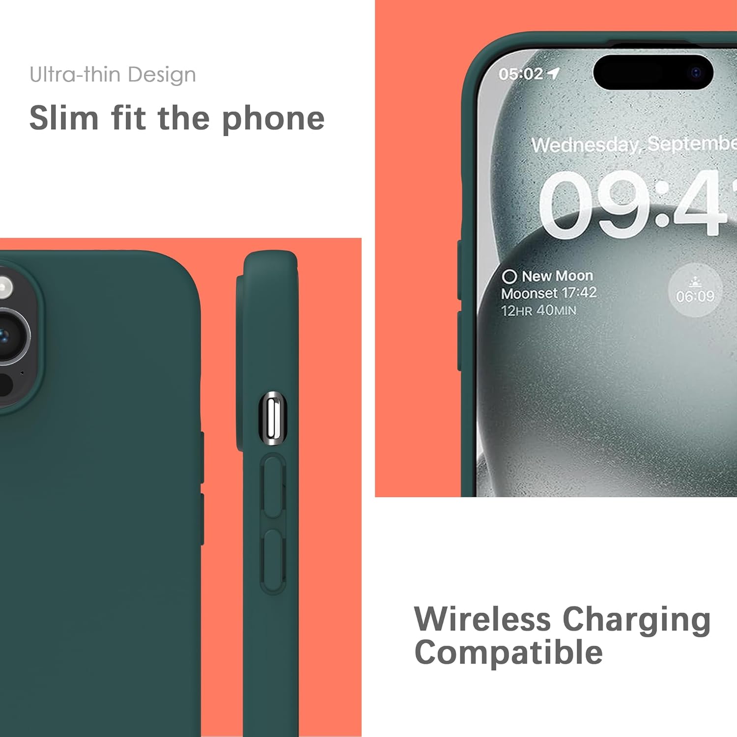 YATWIN Кейс за iPhone 15 Pro Max, Премиум силиконов калъф за мобилен телефон със защита на камерата, Копринен, Мек на допир, Ултра тънък, Удароустойчив, Устойчив на надраскване, Защитен калъф, Зелен