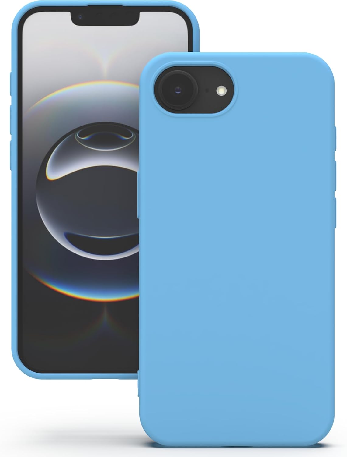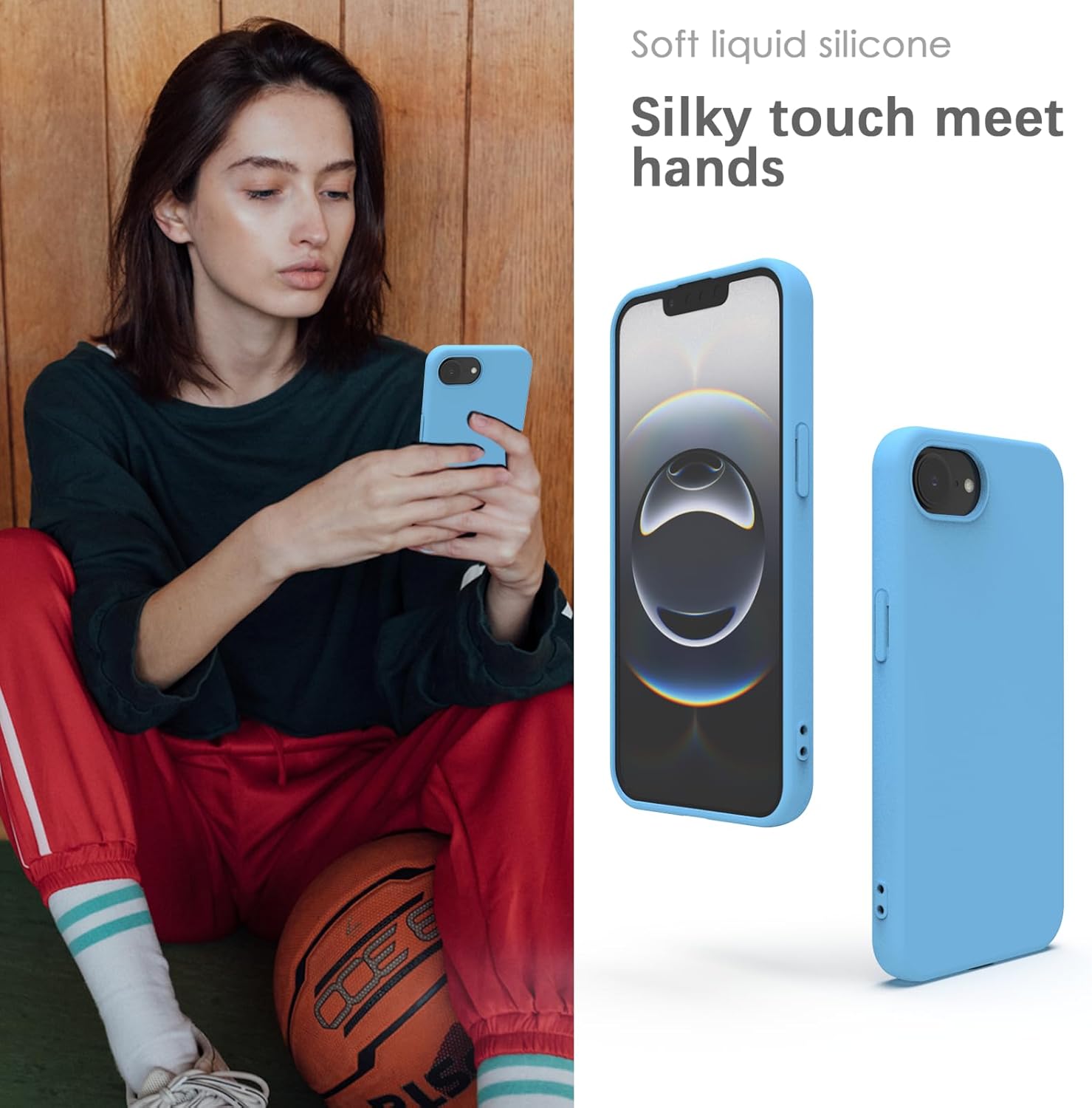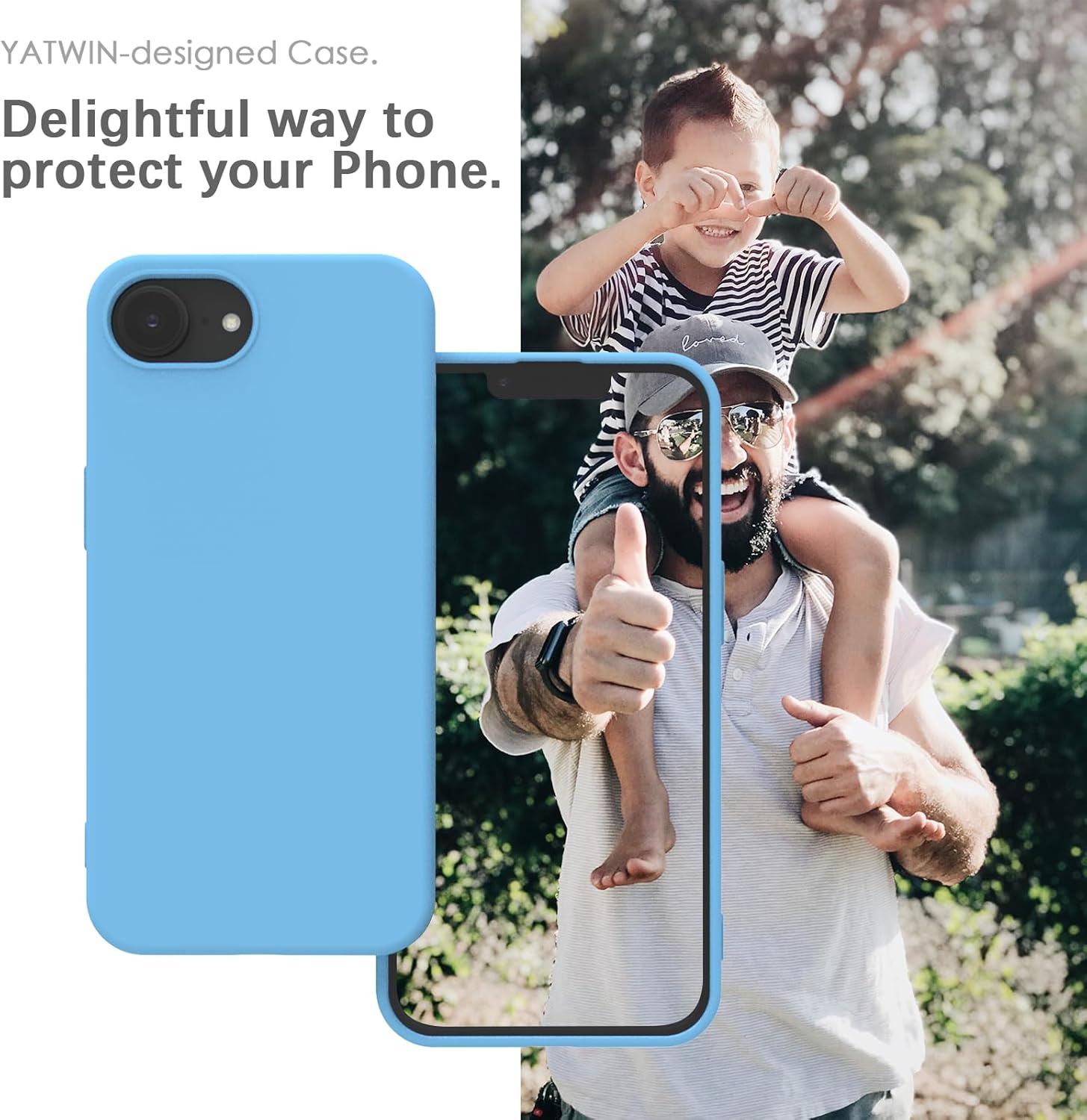YATWIN Кейс за iPhone 16e, Премиум силиконов калъф за мобилен телефон със защита на камерата, Копринен, Мек на допир, Ултра тънък, Удароустойчив, Устойчив на надраскване, Защитен калъф, Небесно син