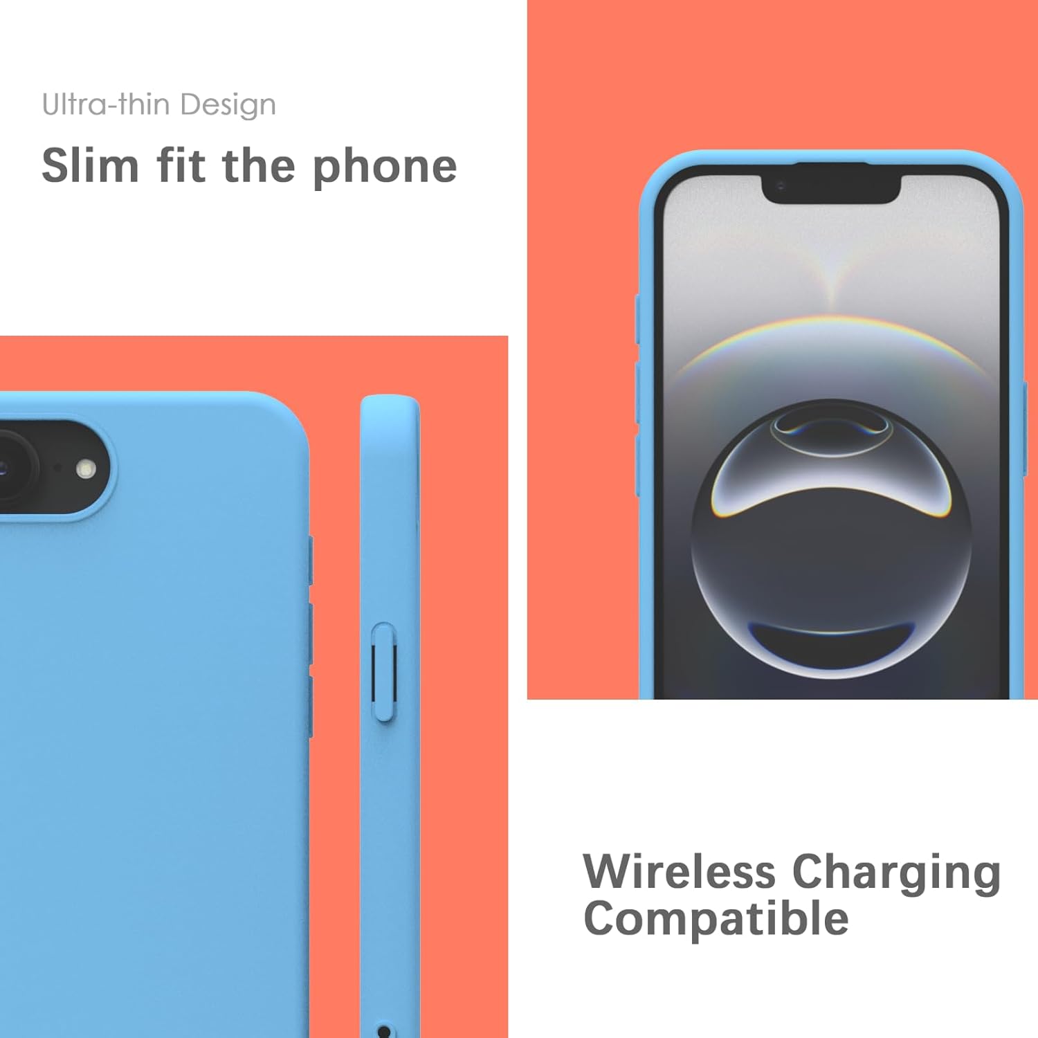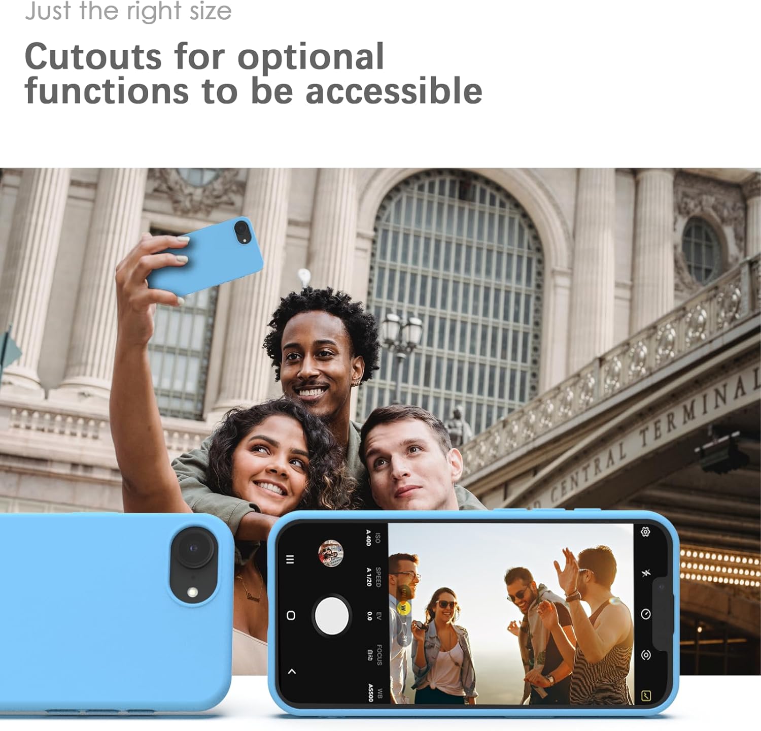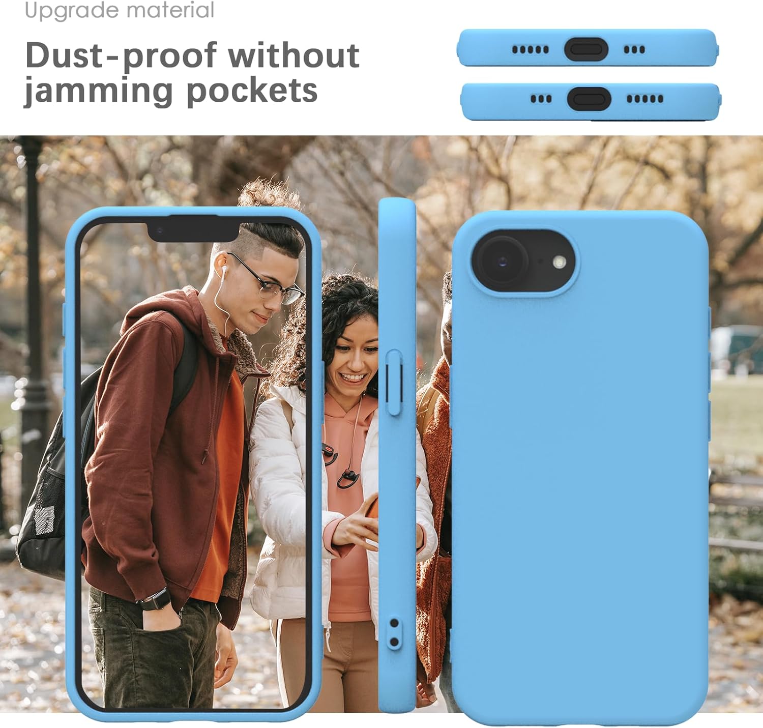 YATWIN Кейс за iPhone 16e, Премиум силиконов калъф за мобилен телефон със защита на камерата, Копринен, Мек на допир, Ултра тънък, Удароустойчив, Устойчив на надраскване, Защитен калъф, Небесно син