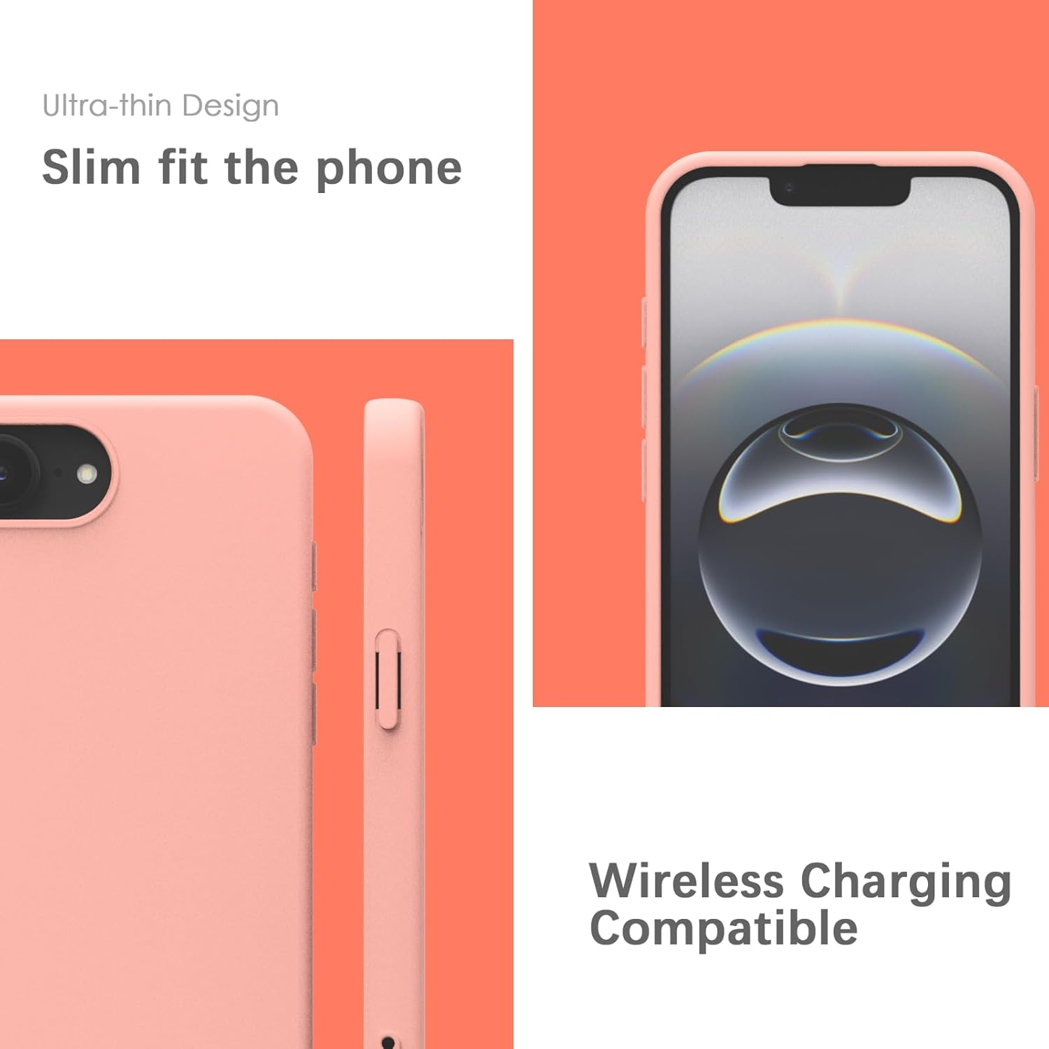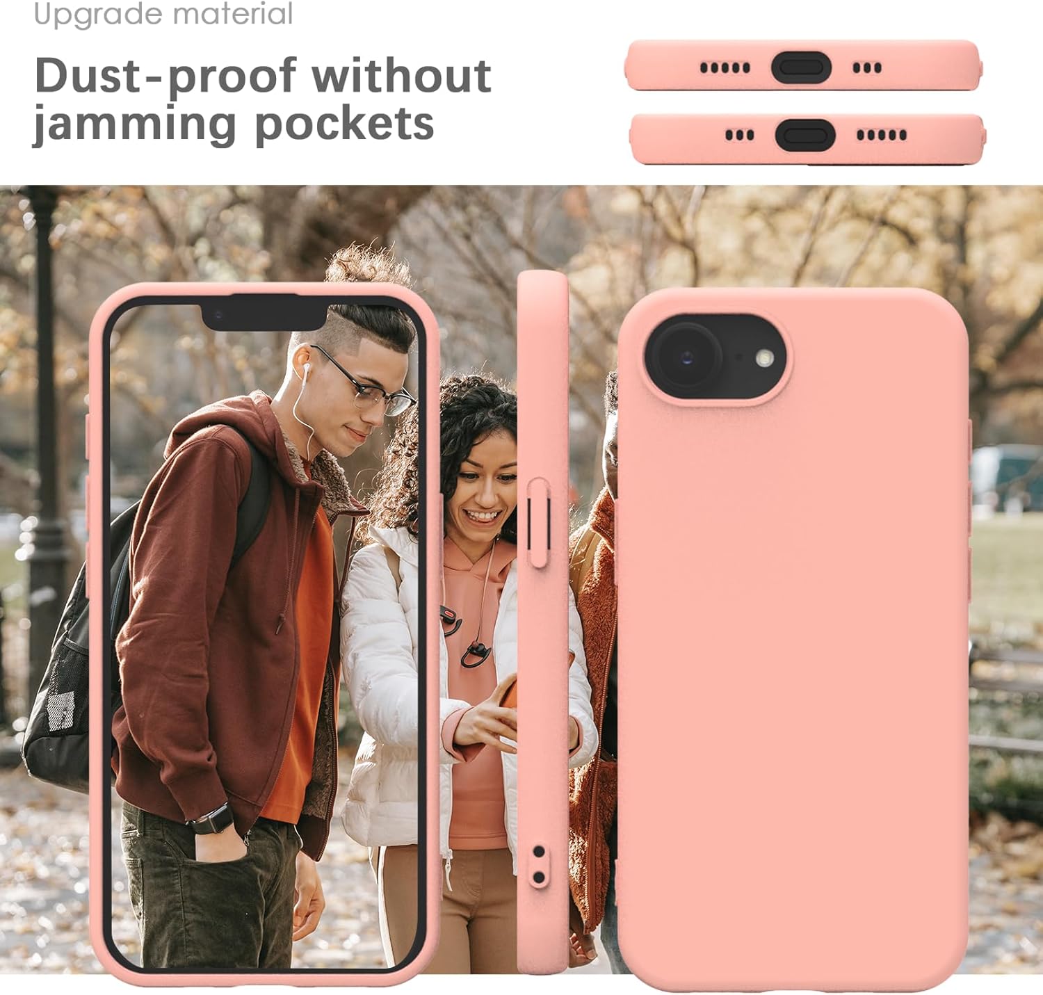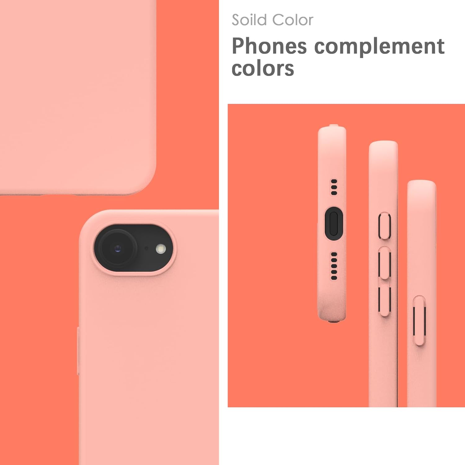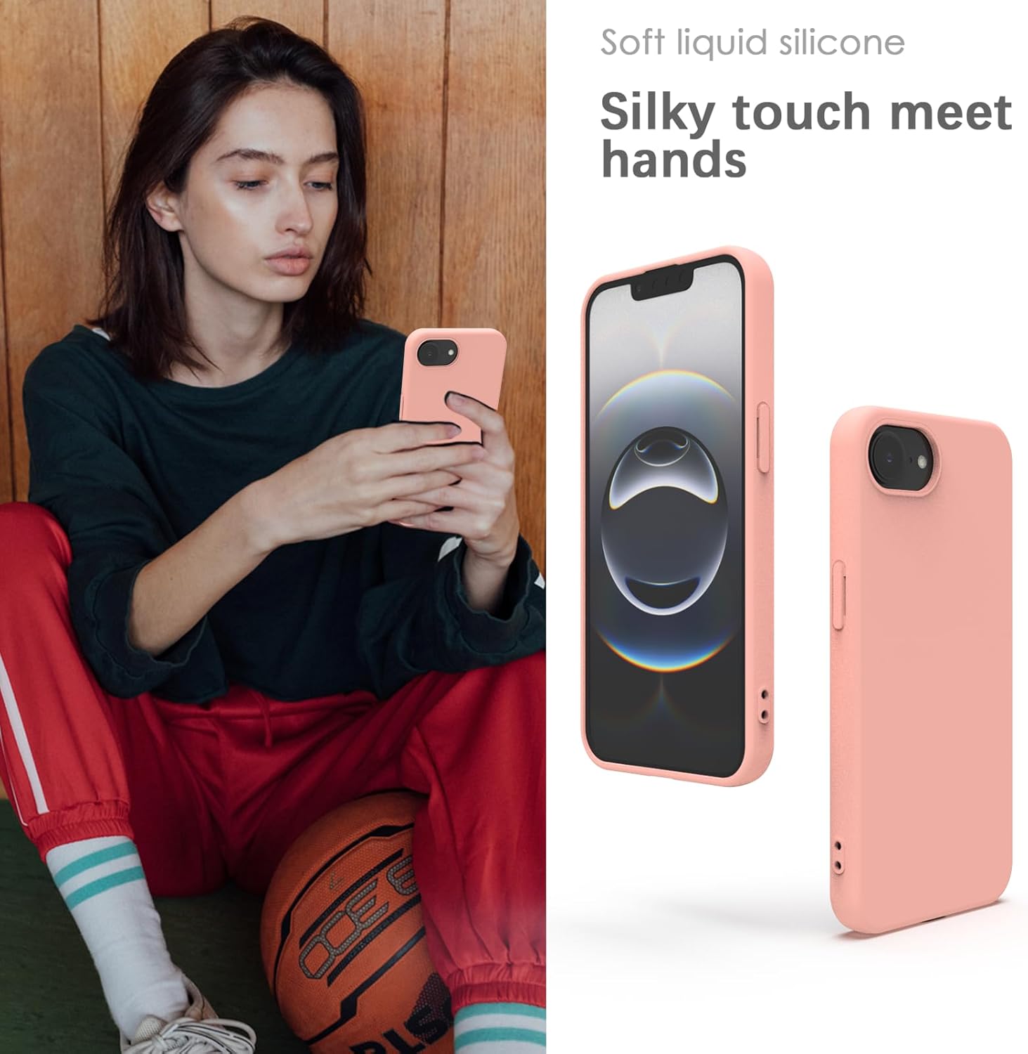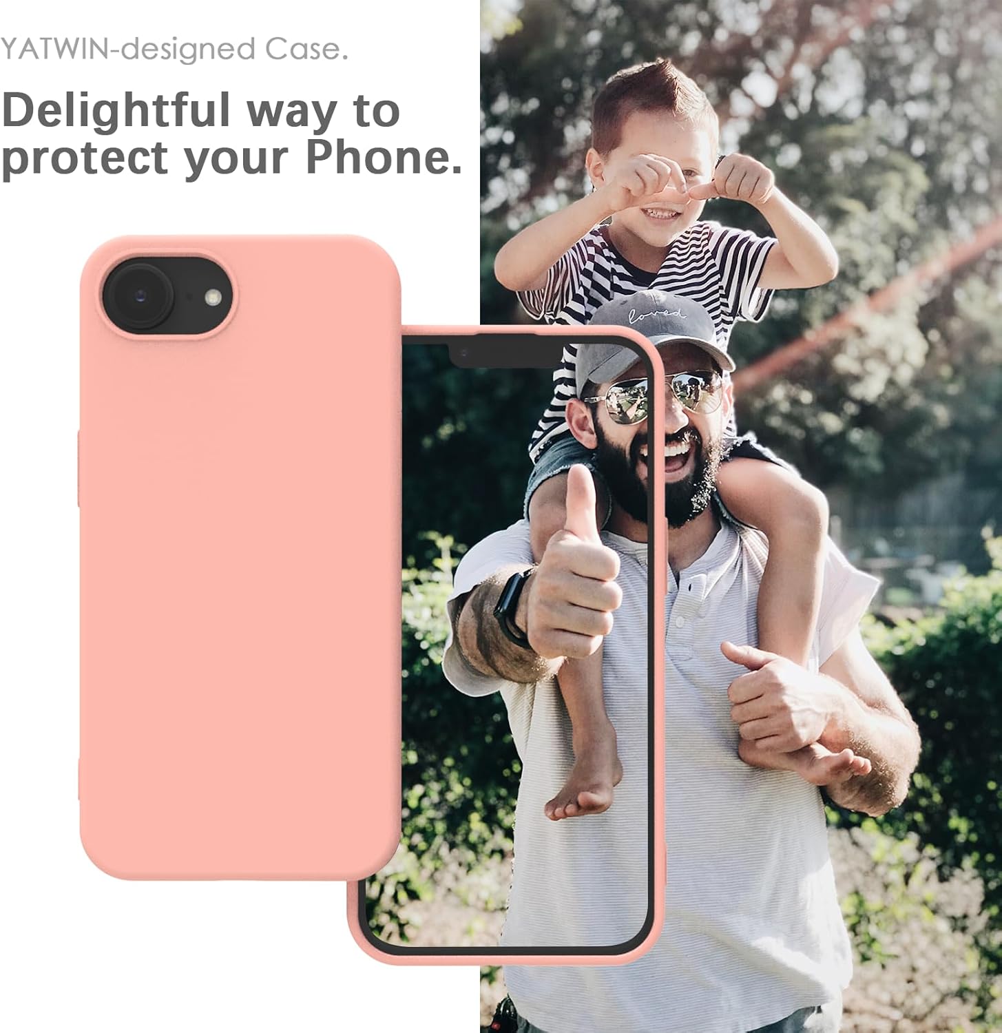 YATWIN Кейс за iPhone 16e, Премиум силиконов калъф за мобилен телефон със защита на камерата, Копринен, Мек на допир, Ултра тънък, Удароустойчив, Устойчив на надраскване, Защитен калъф, Розов
