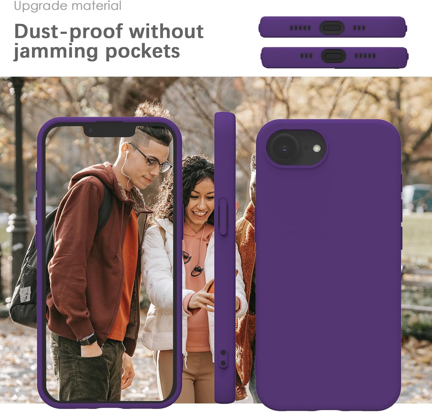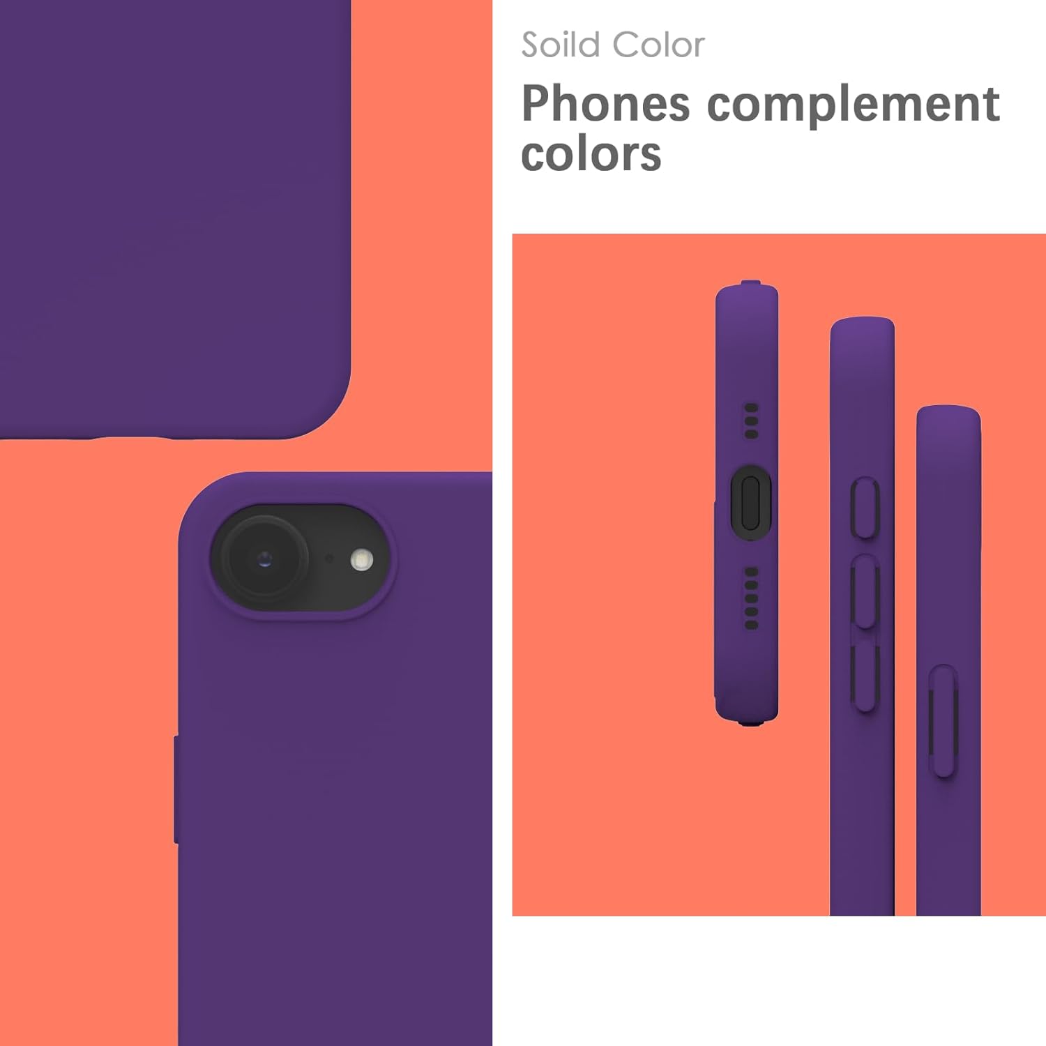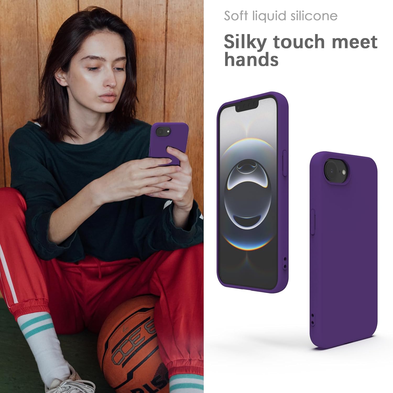 YATWIN Кейс за iPhone 16e, Висококачествен силиконов калъф за мобилен телефон със защита на камерата, Копринен, Мек на допир, Ултра тънък, Удароустойчив, Устойчив на надраскване, Защитен калъф, Виола