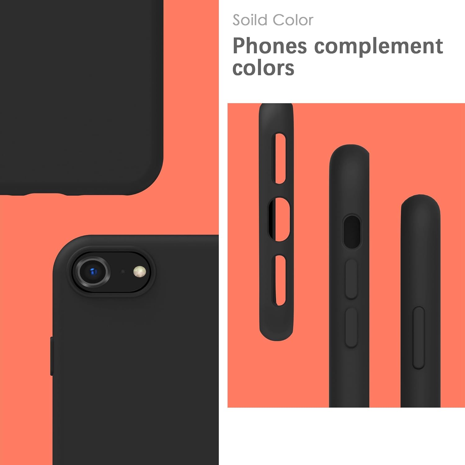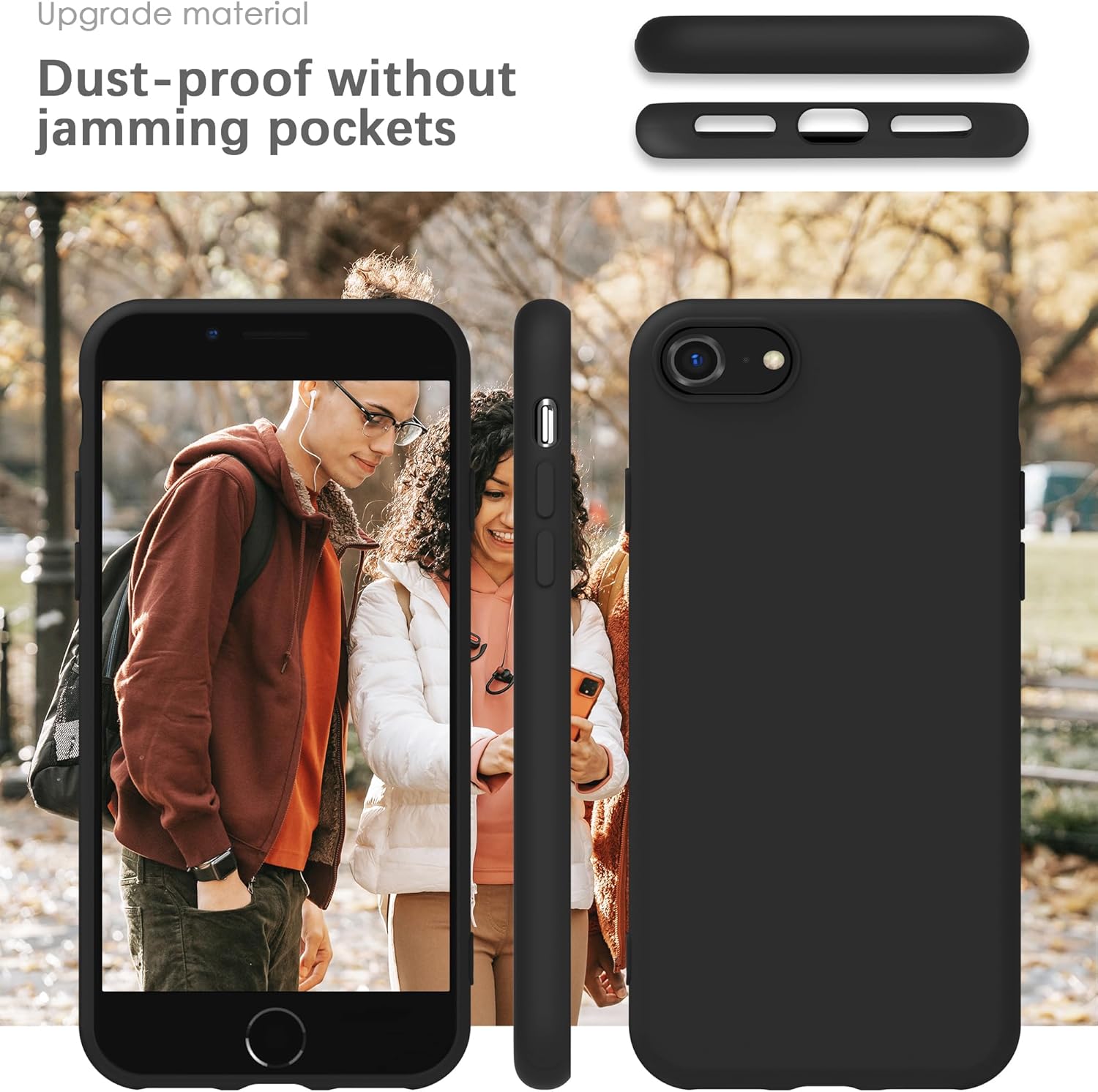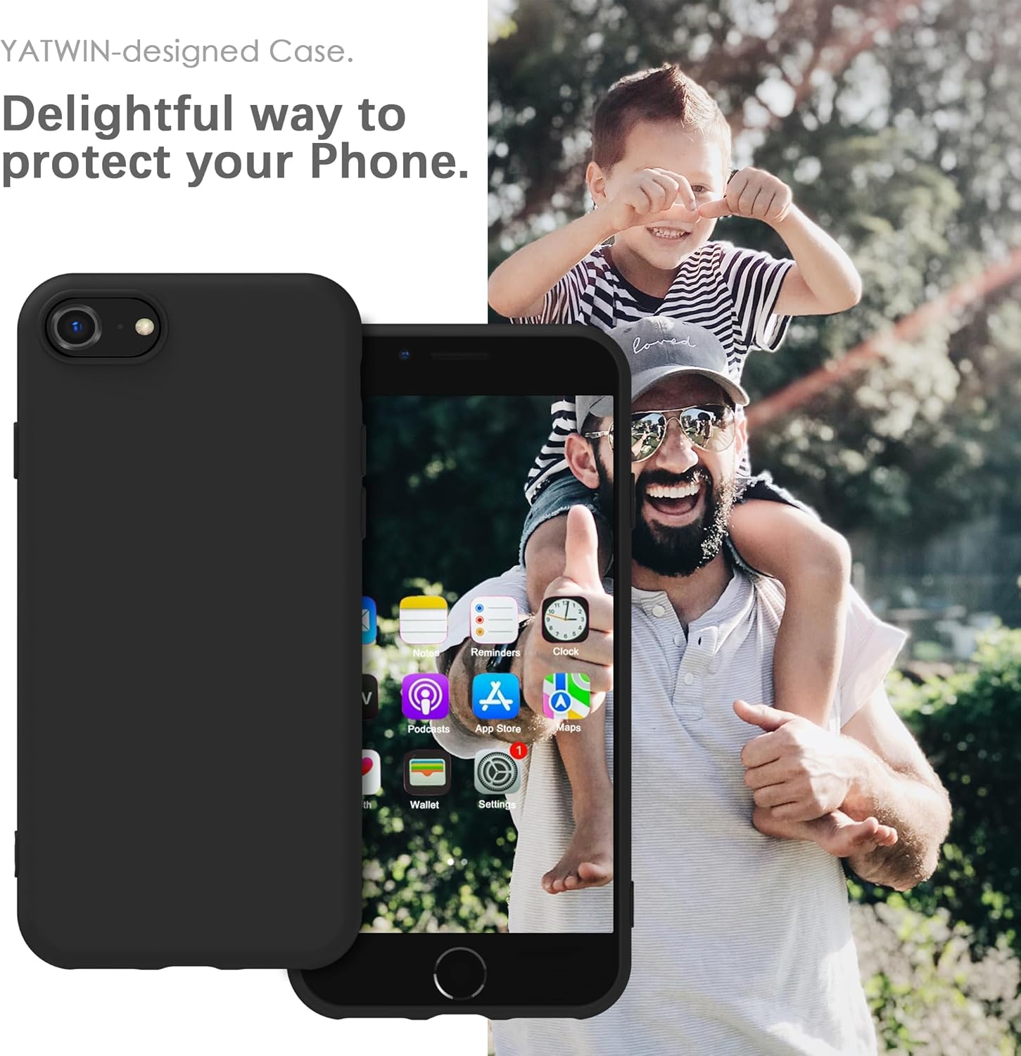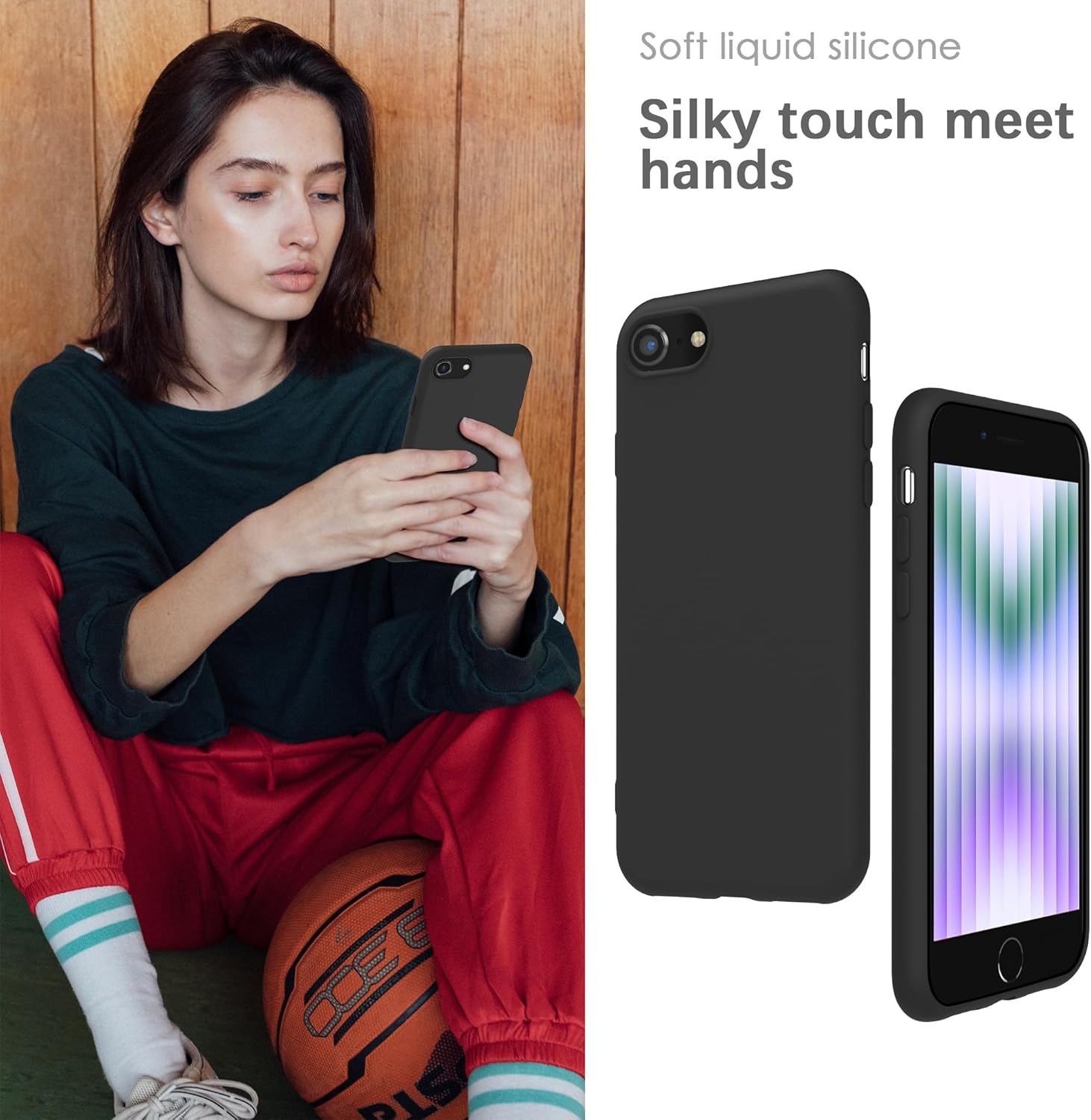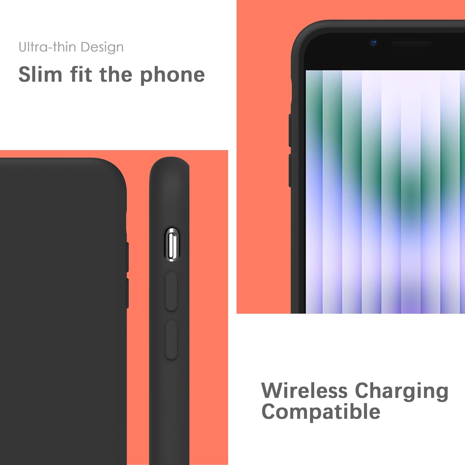 YATWIN Кейс за iPhone SE 2022, iPhone 8/7, iPhone SE 2020, Премиум силиконов кейс за мобилен телефон с копринено меко покритие, ултра тънък, удароустойчив, устойчив на надраскване, защитен кейс, черен