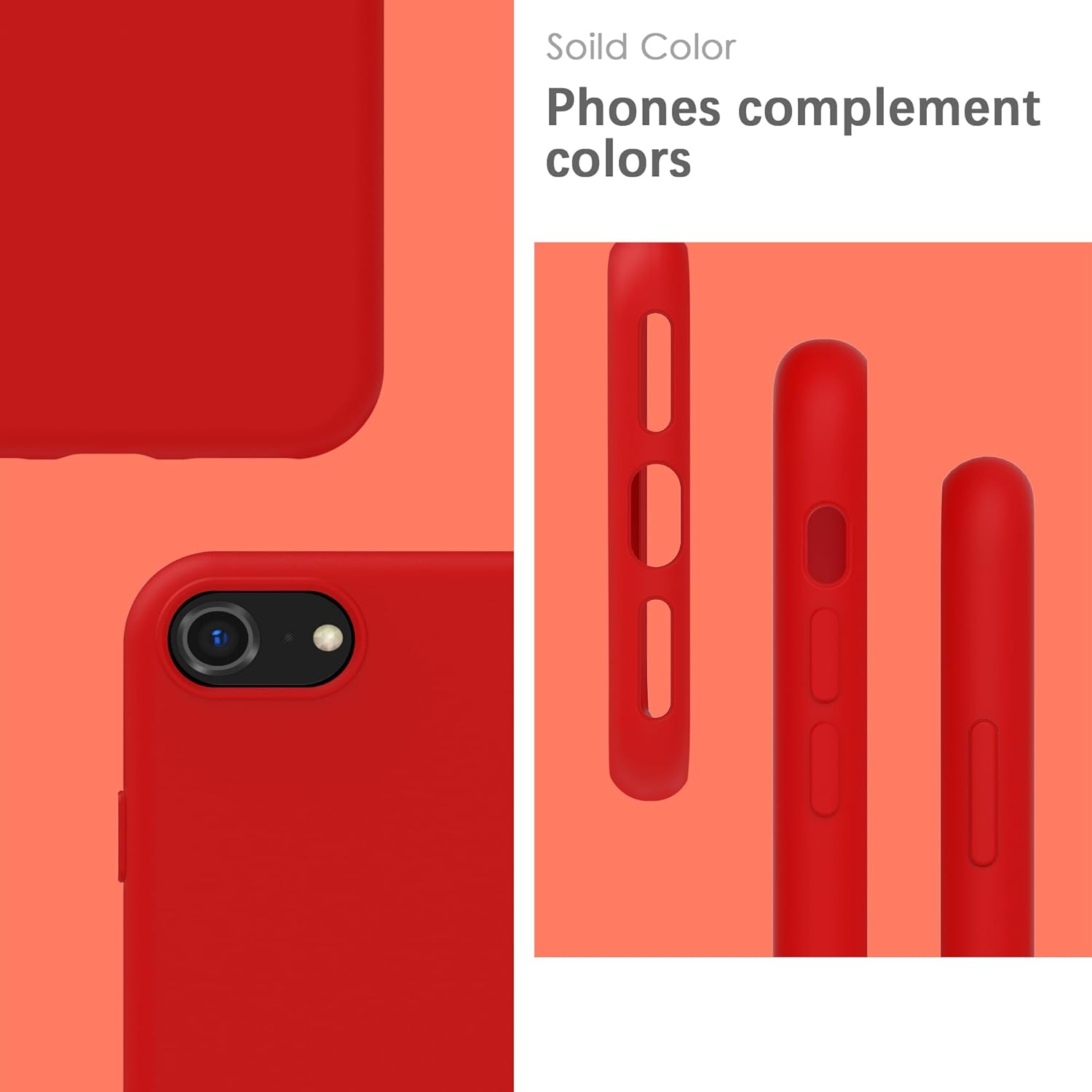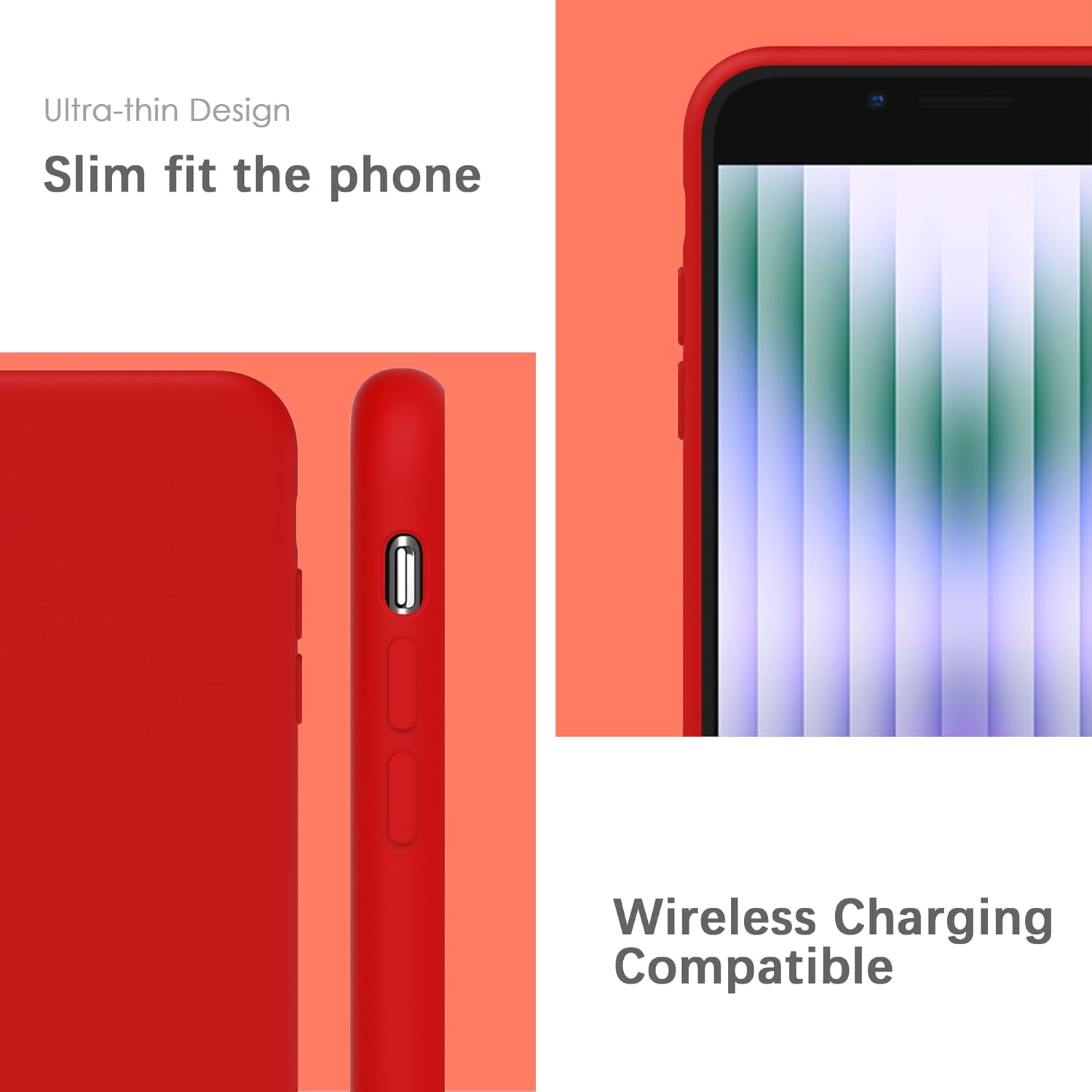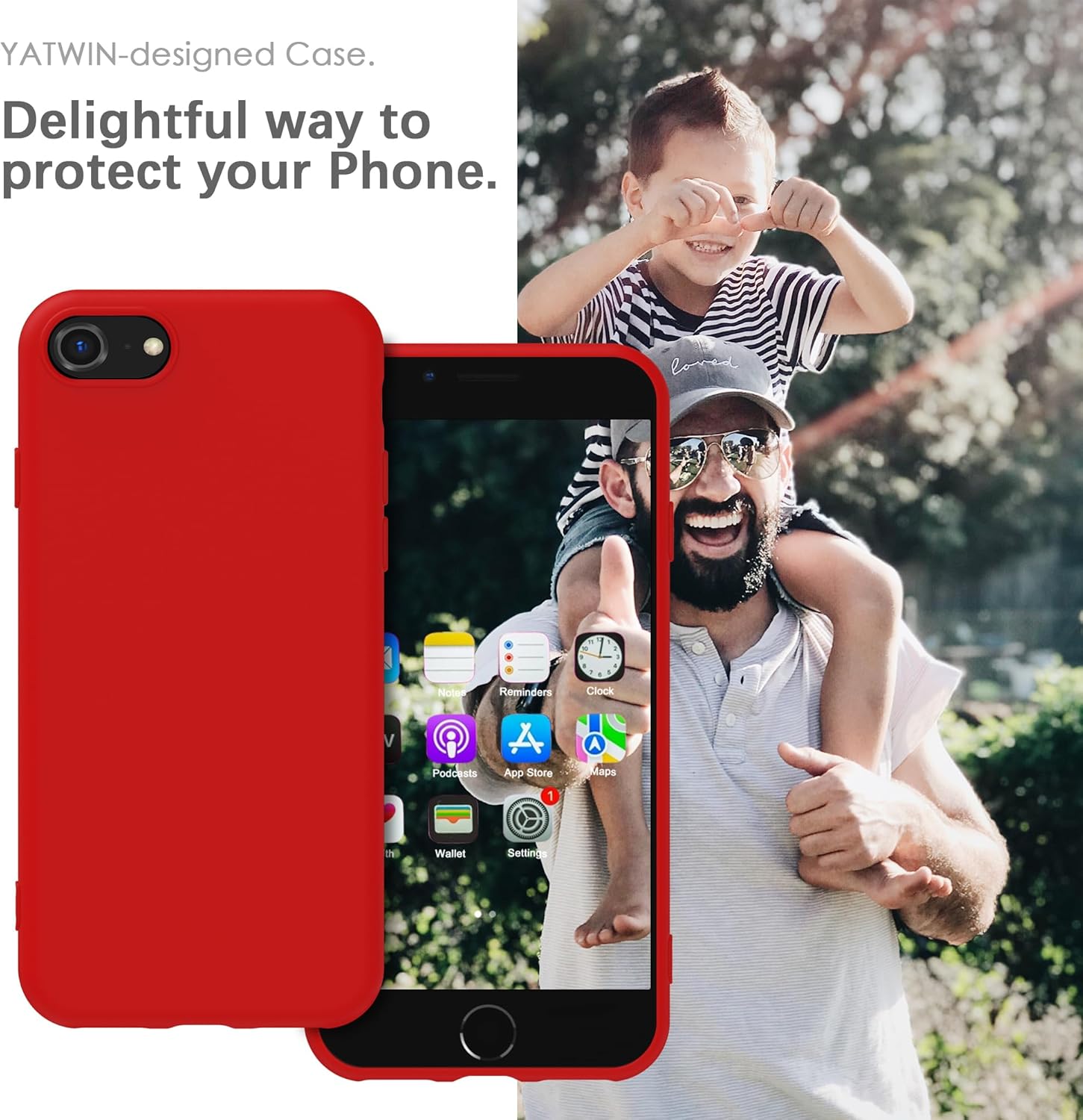 YATWIN Кейс за iPhone SE 2022, iPhone 8/7, iPhone SE 2020, Премиум силиконов кейс за мобилен телефон с копринено меко покритие, ултра тънък, удароустойчив, устойчив на надраскване, защитен кейс, червен