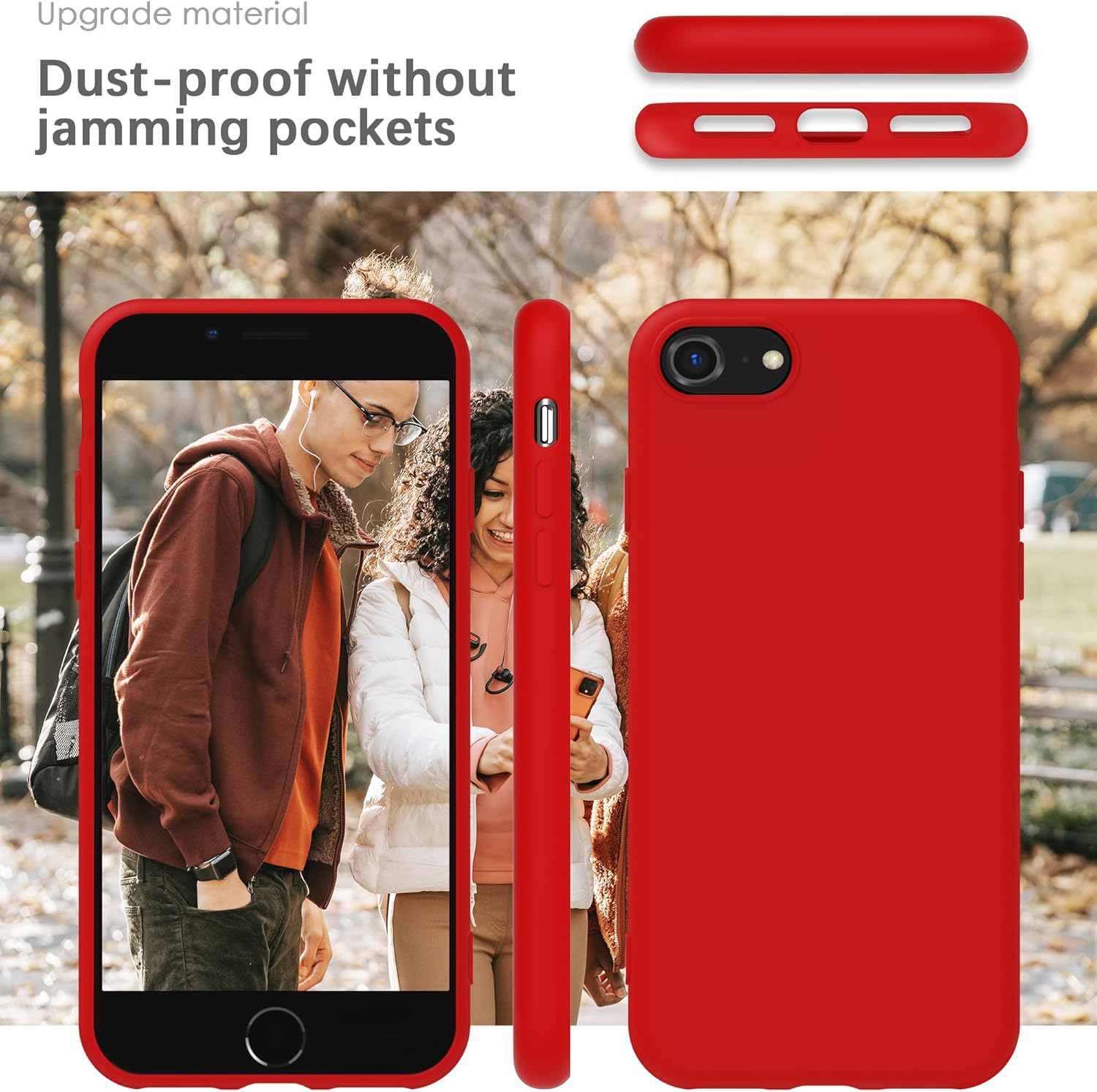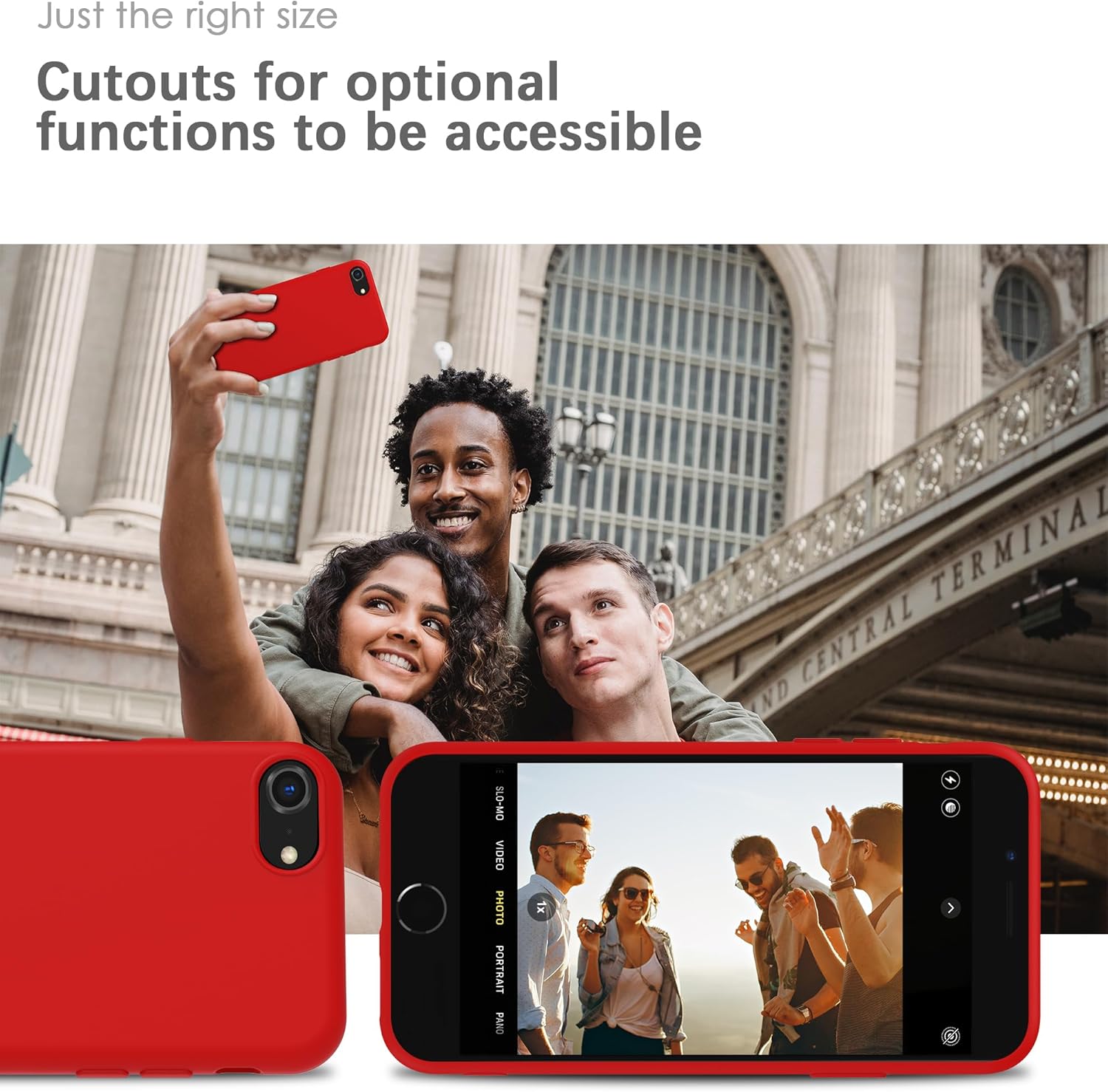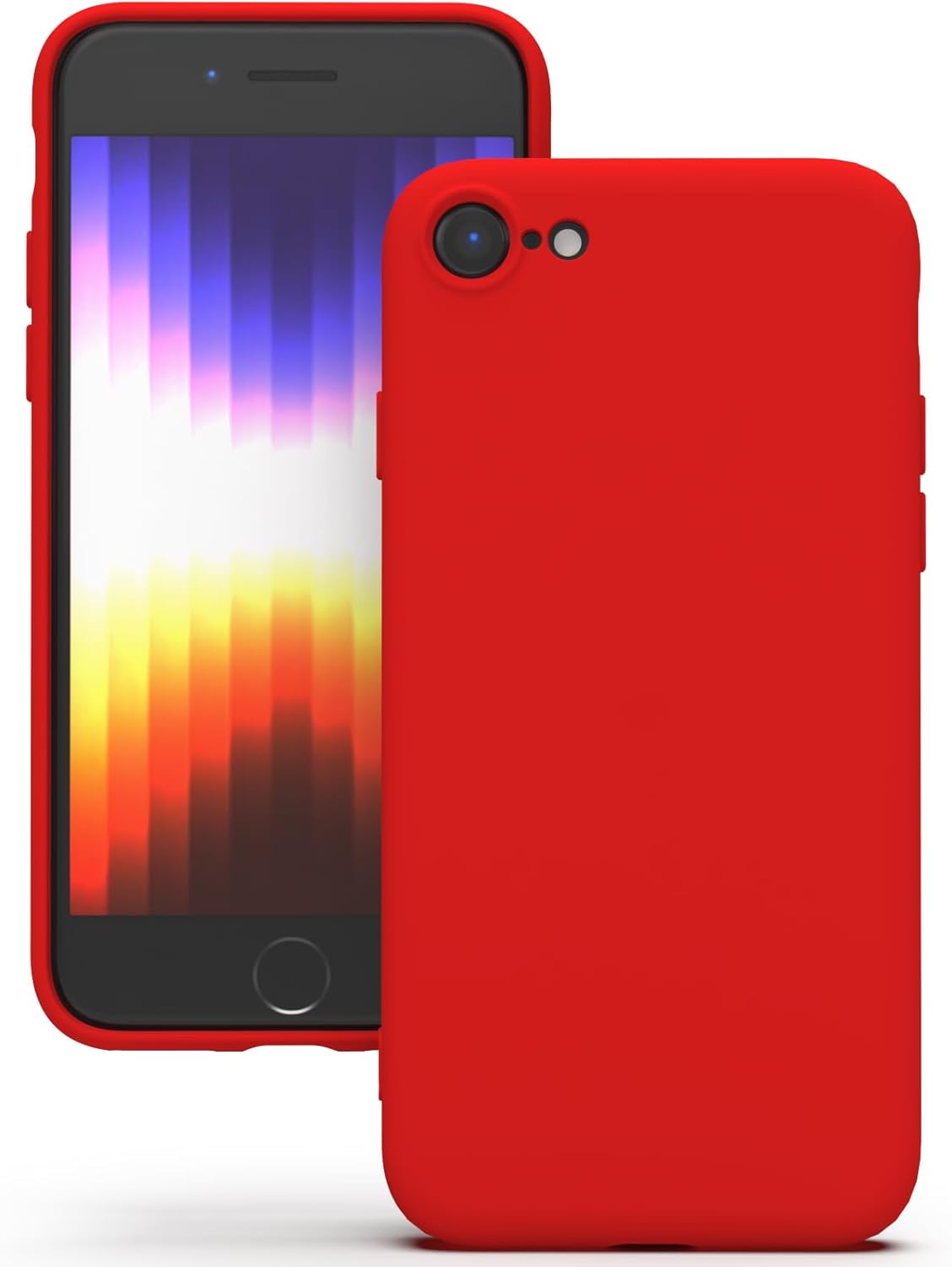 YATWIN Кейс за iPhone SE 2022, iPhone 8/7, iPhone SE 2020, Премиум силиконов кейс за мобилен телефон с копринено меко покритие, ултра тънък, удароустойчив, устойчив на надраскване, защитен кейс, червен