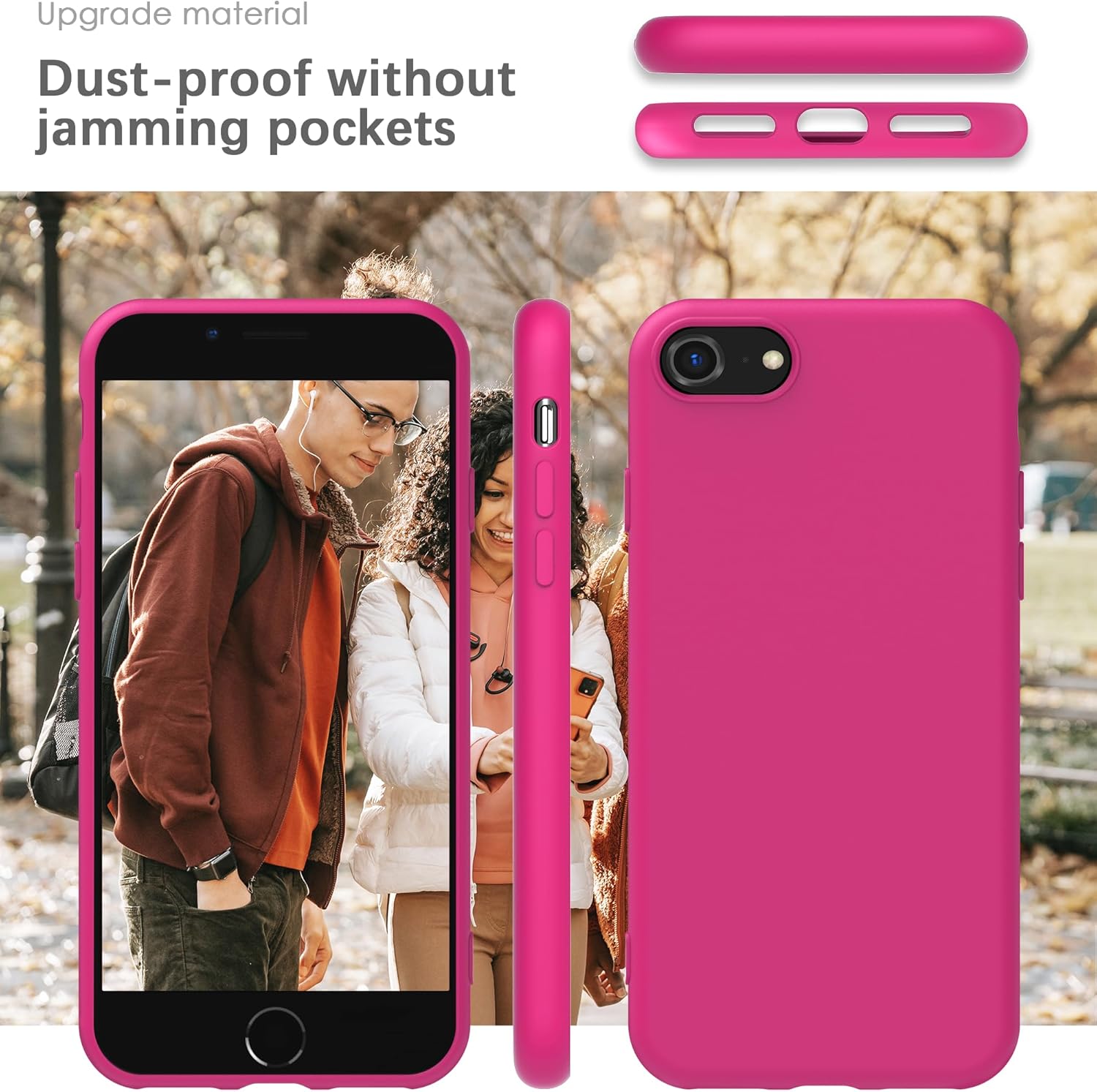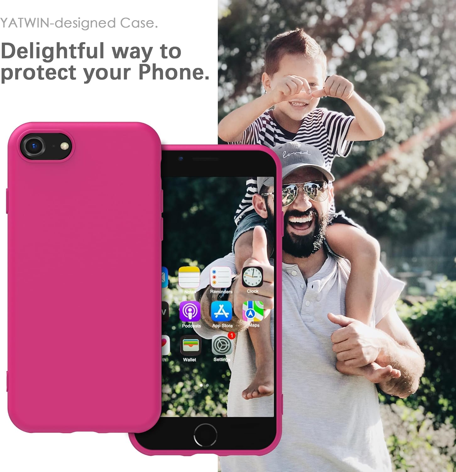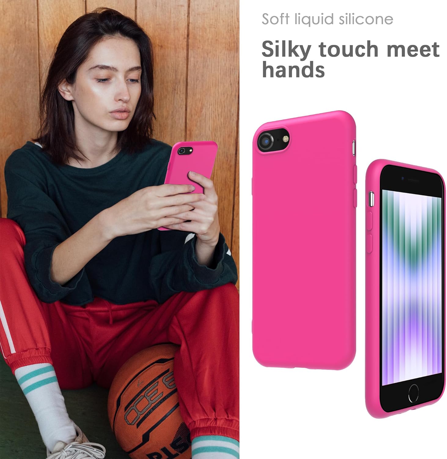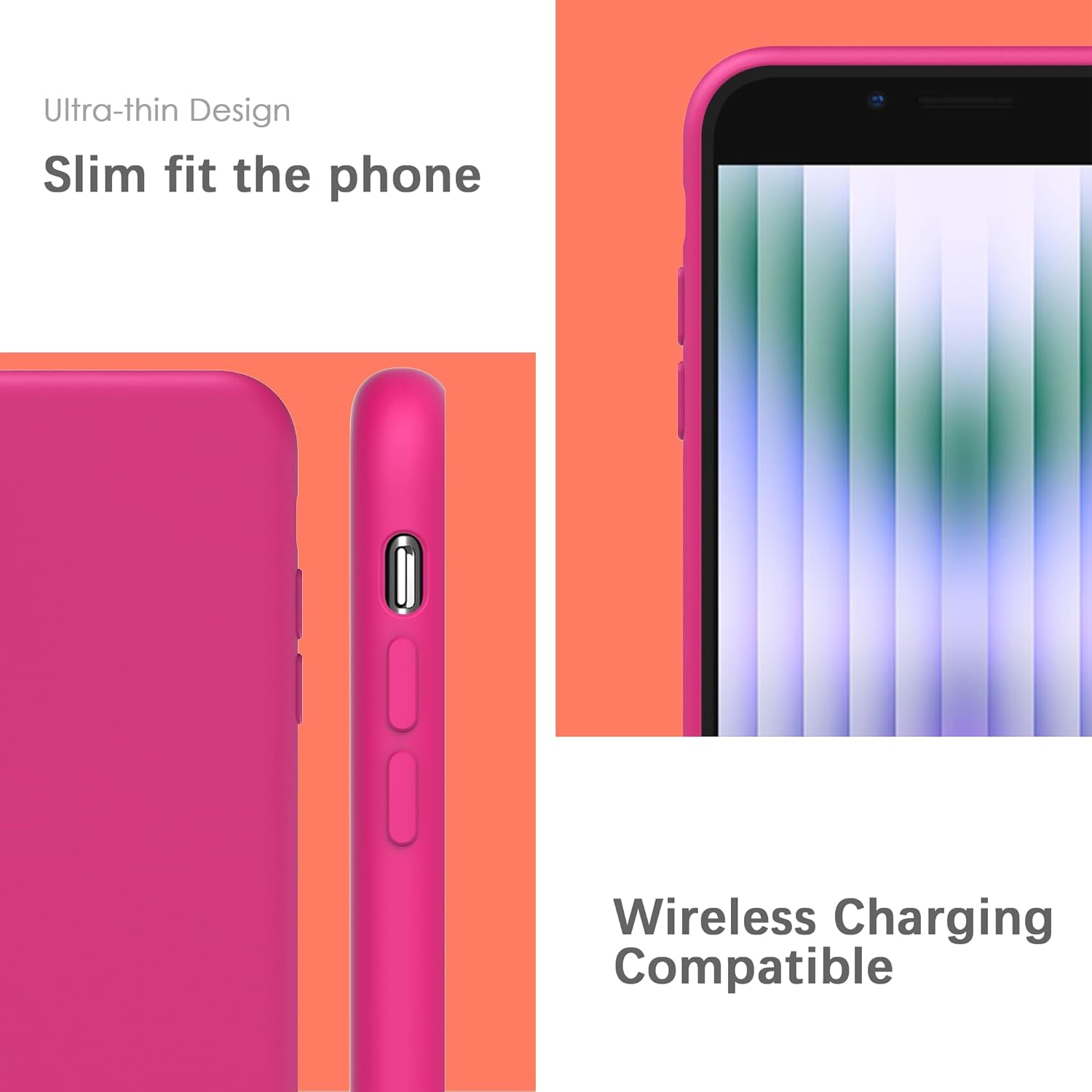 YATWIN Кейс за iPhone SE 2022, iPhone 8/7, iPhone SE 2020, Премиум силиконов кейс за мобилен телефон с копринено меко покритие, ултра тънък, удароустойчив, устойчив на надраскване, защитен кейс, магента