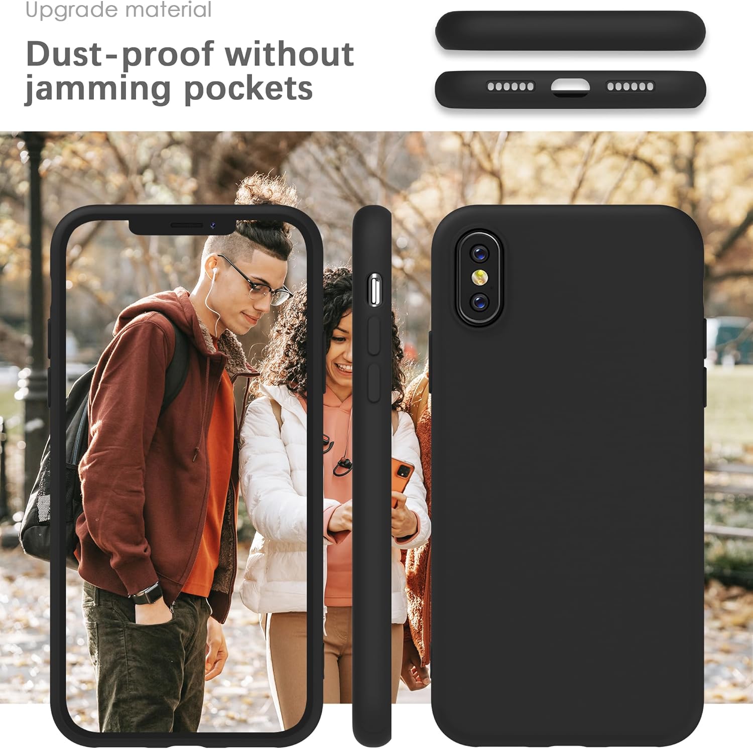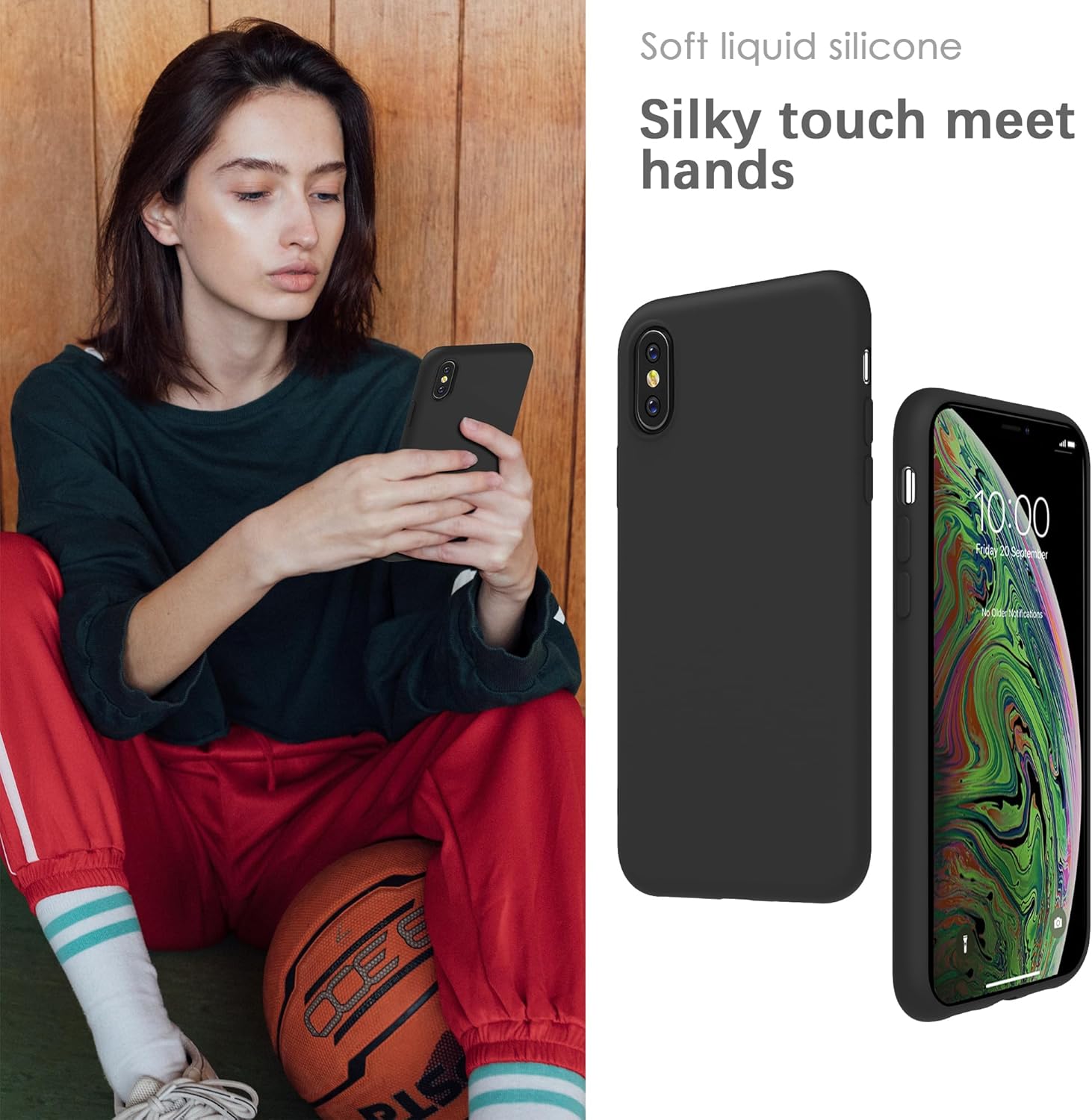 YATWIN Кейс за iPhone X, iPhone XS, Премиум силиконов калъф за мобилен телефон с копринено меко покритие, ултра тънък, удароустойчив, устойчив на надраскване, защитен калъф, черен