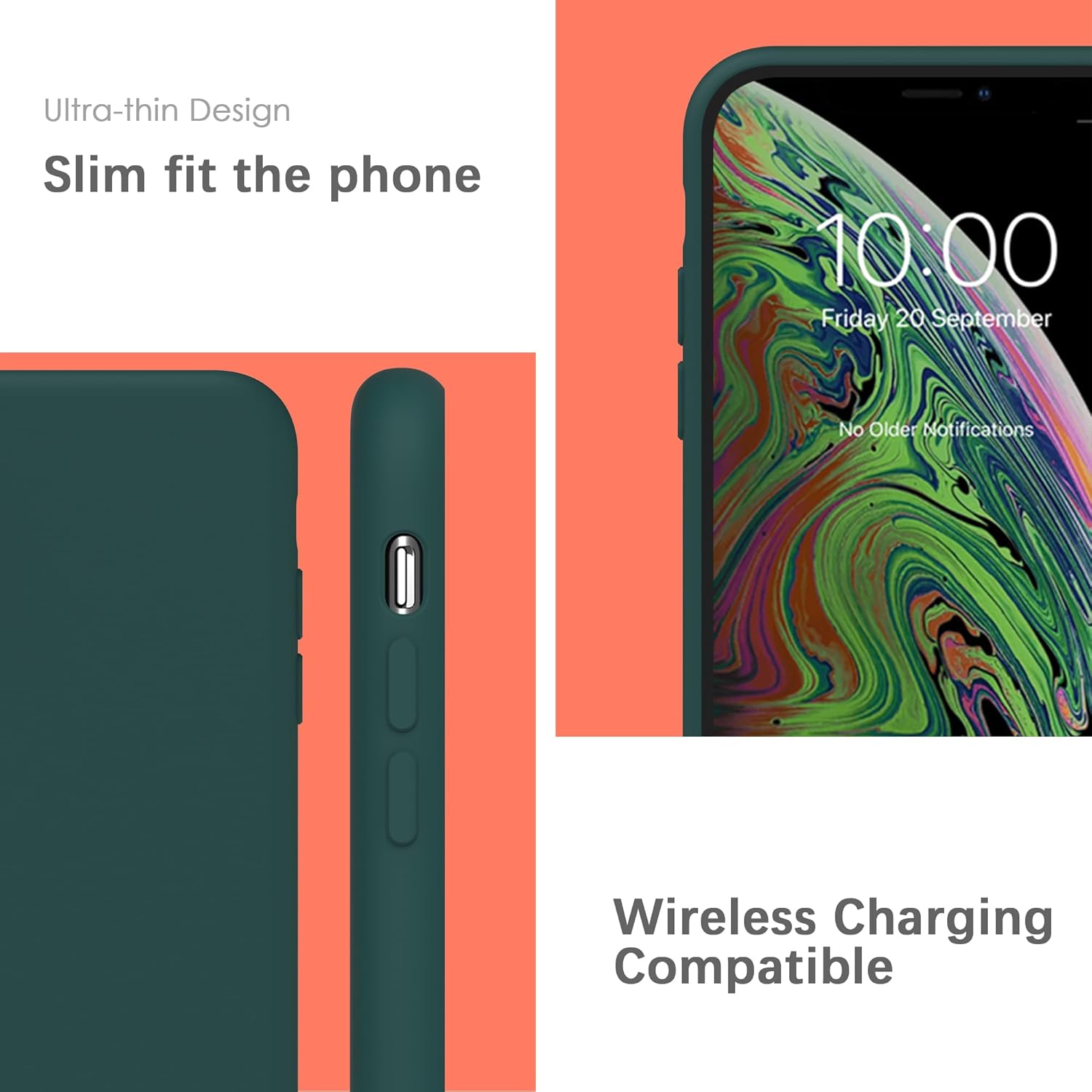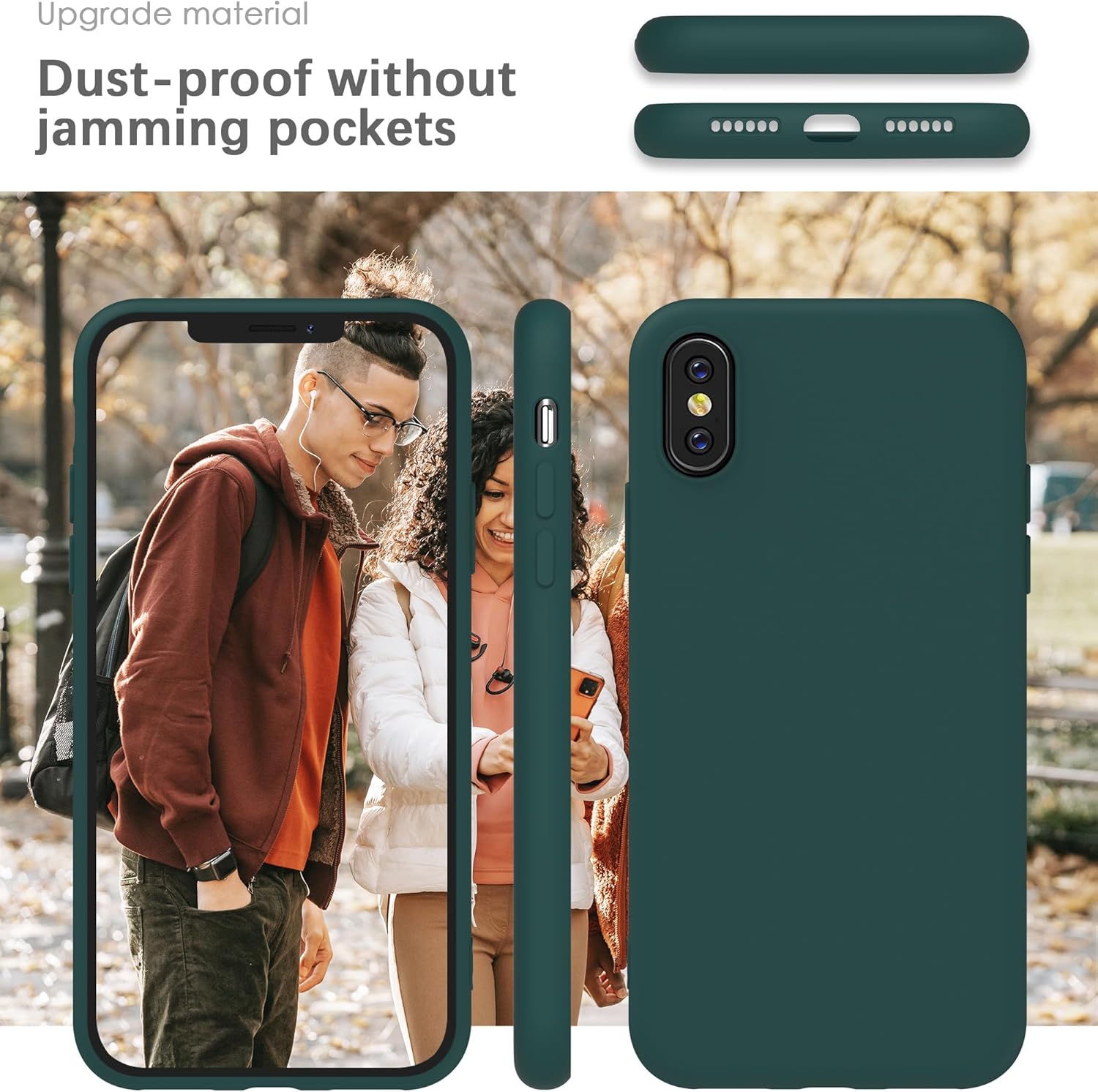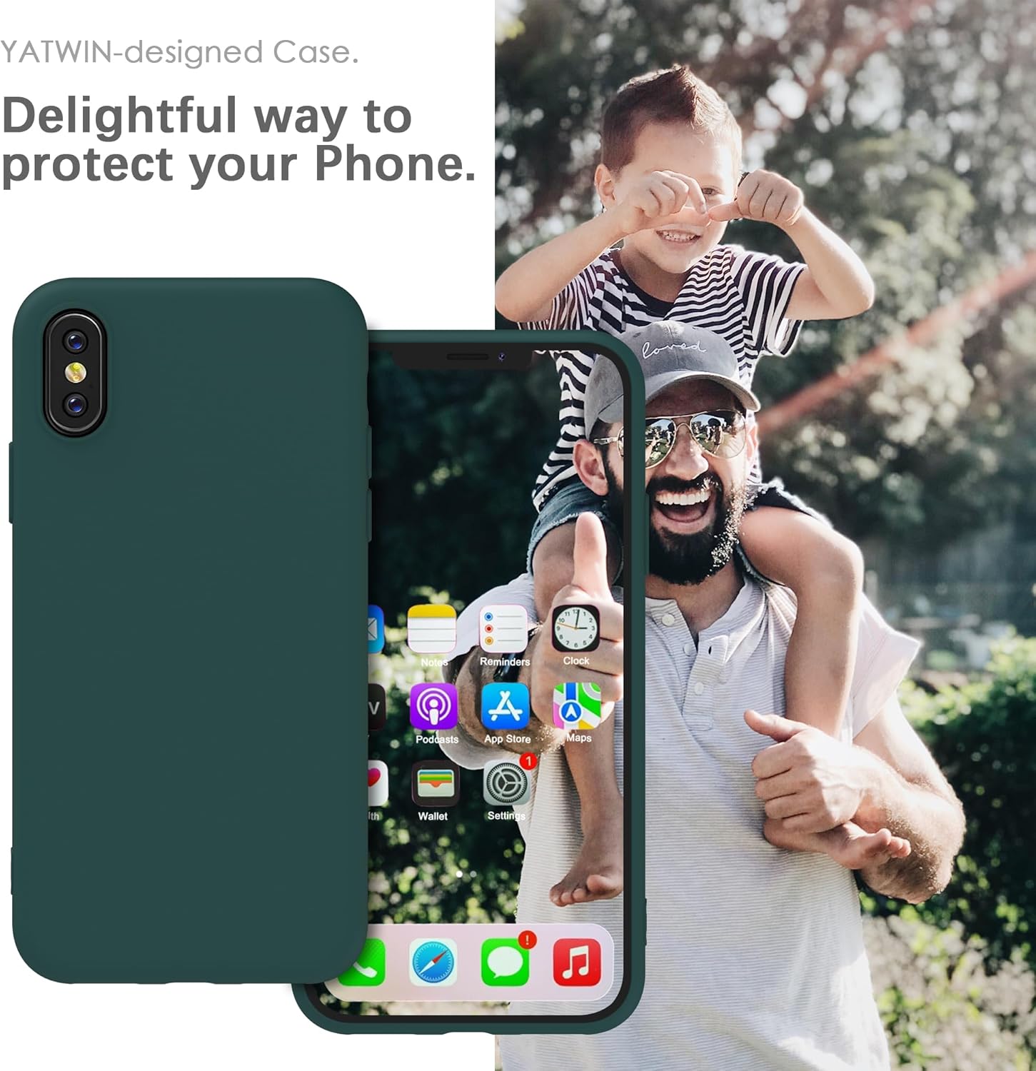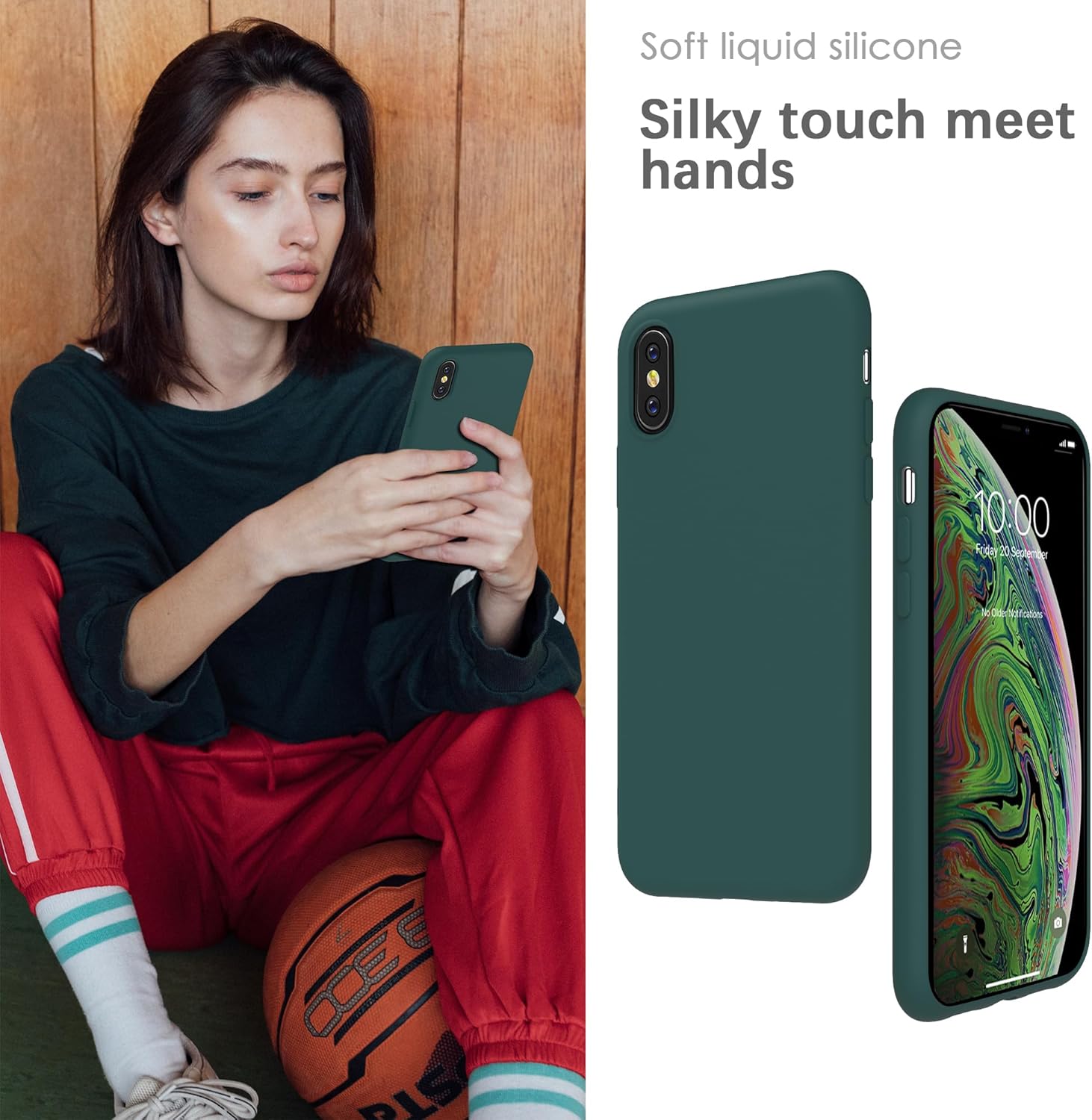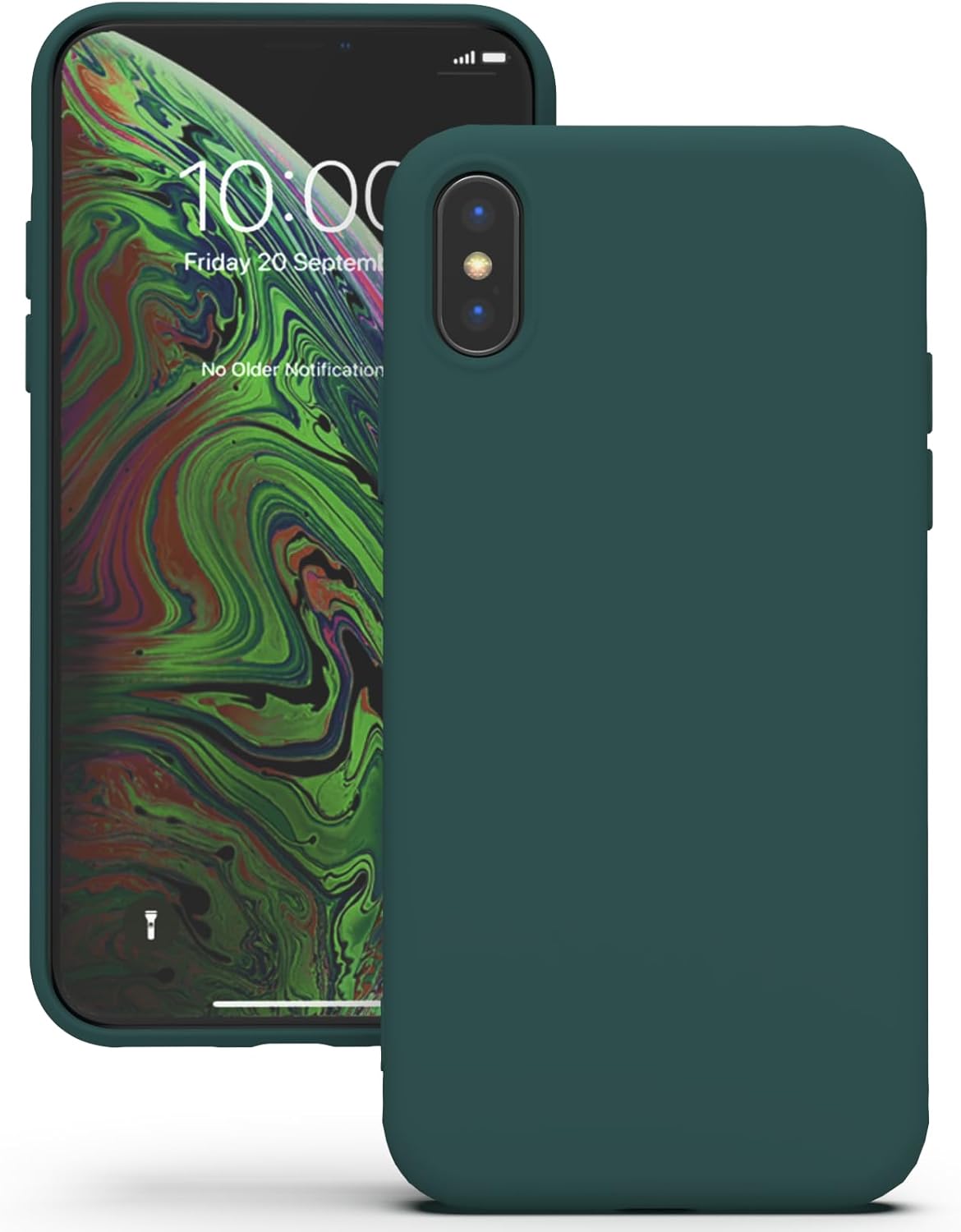 YATWIN Кейс за iPhone X, Кейс за iPhone XS, Премиум силиконов кейс за мобилен телефон с копринено меко покритие, Ултра тънък, Удароустойчив, Устойчив на надраскване, Защитен кейс, Зелен