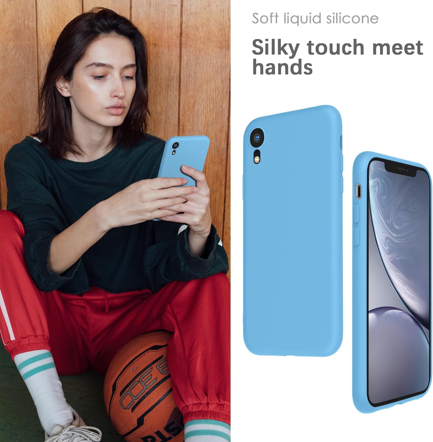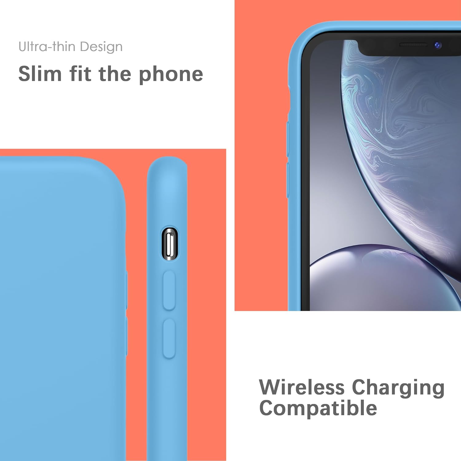 YATWIN Кейс за iPhone XR, Премиум силиконов калъф за мобилен телефон с копринено меко докосване, Ултра тънък, Удароустойчив, Устойчив на надраскване, Защитен калъф, Лазурно син