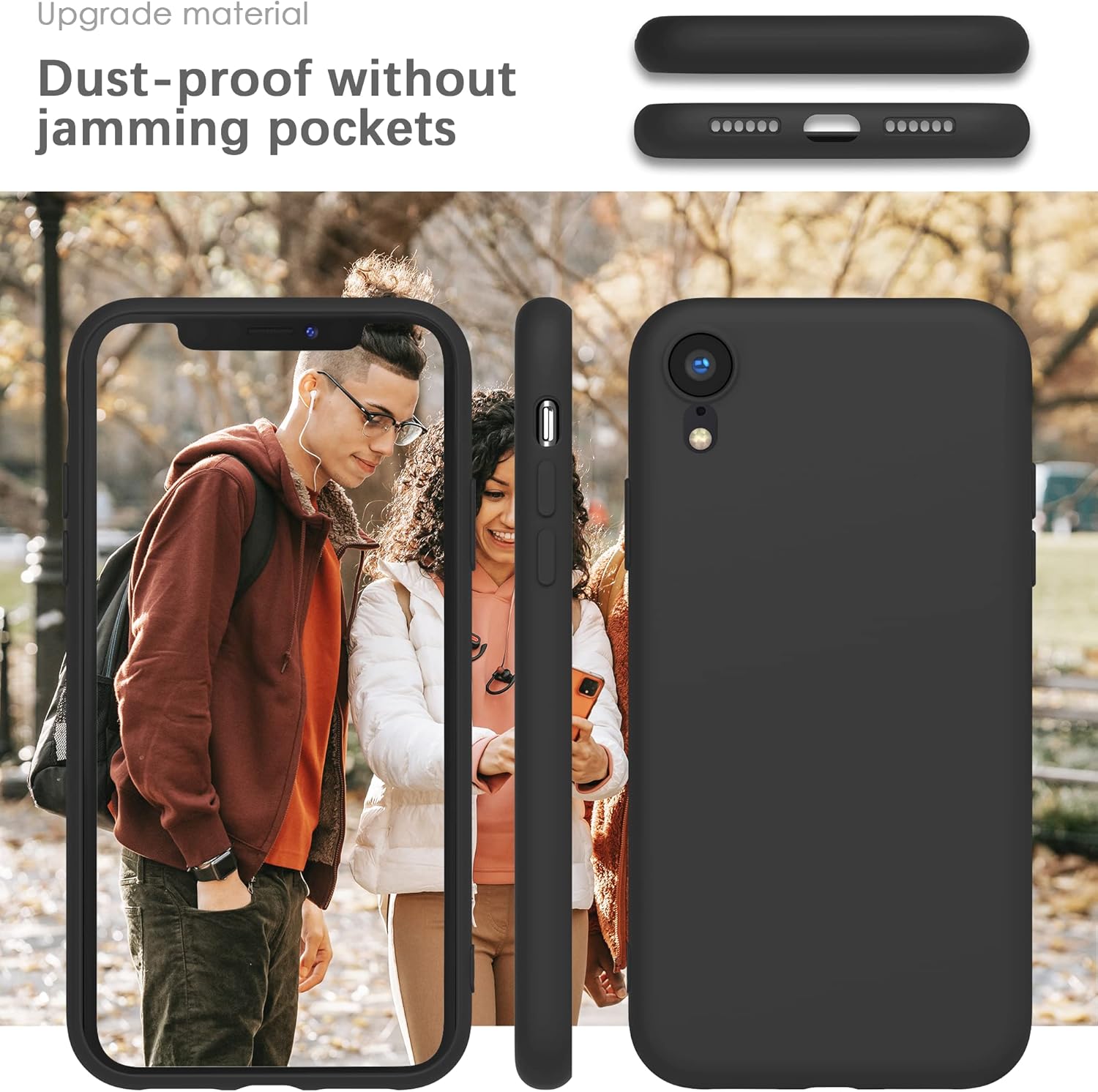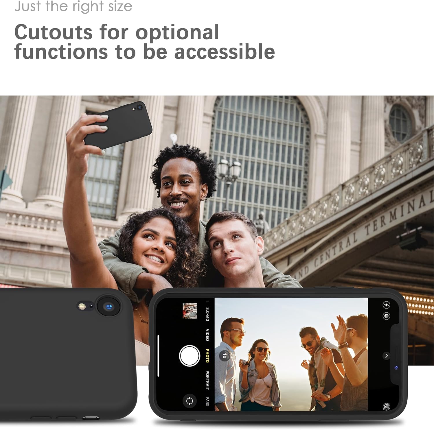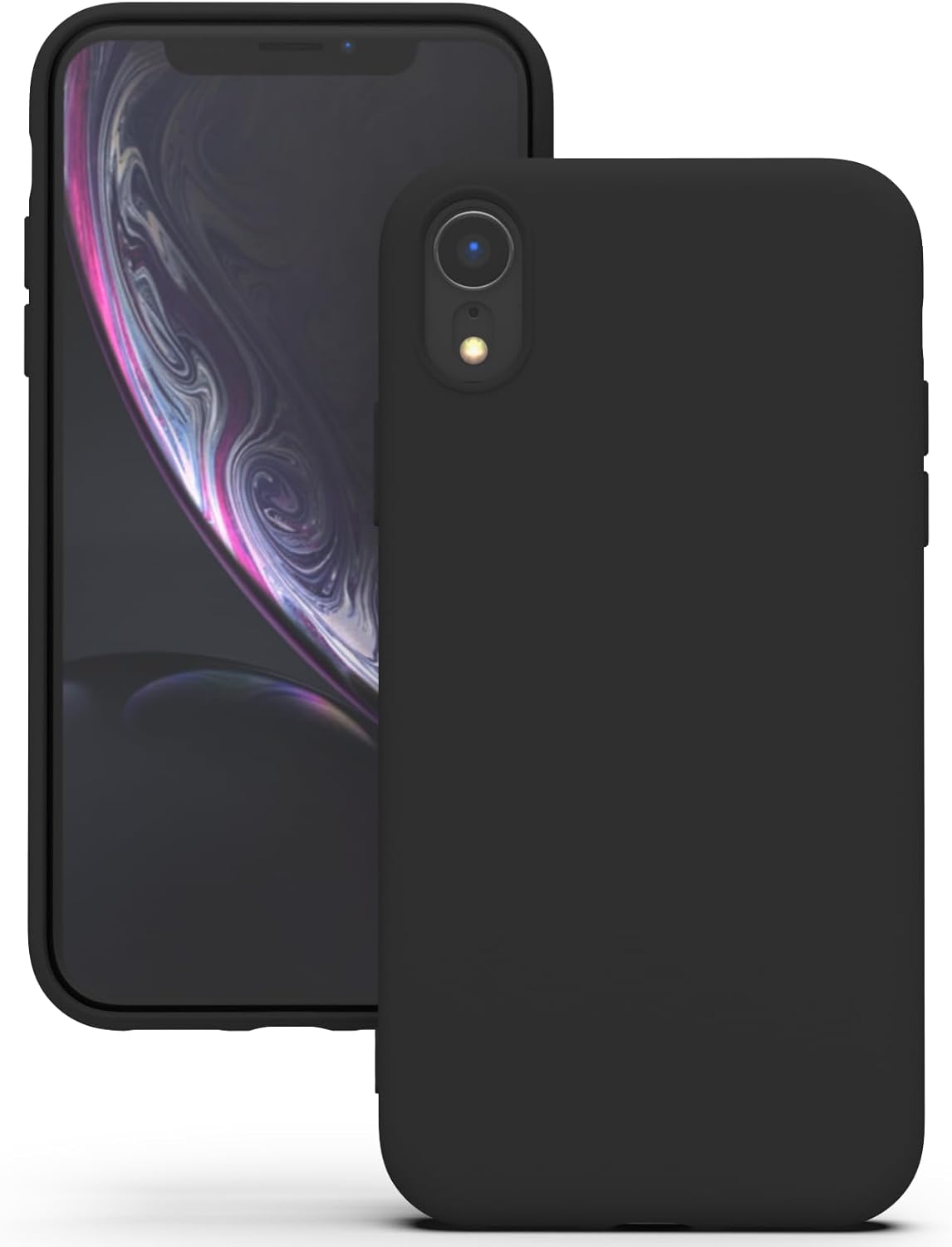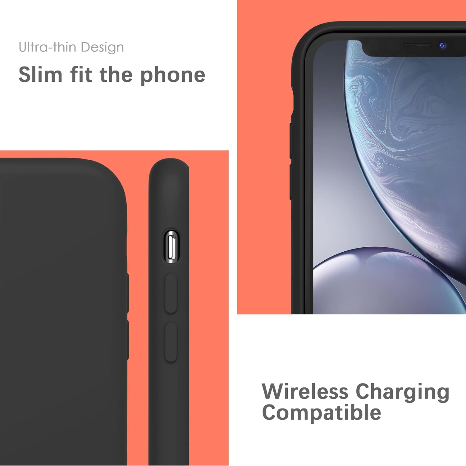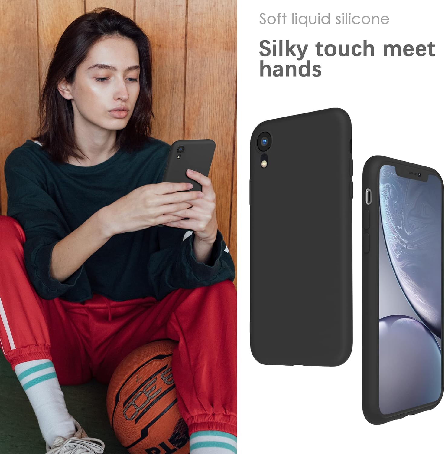 YATWIN Кейс за iPhone XR, Премиум силиконов калъф за мобилен телефон с копринено меко покритие, Ултра тънък, Удароустойчив, Устойчив на надраскване, Защитен калъф, Черен