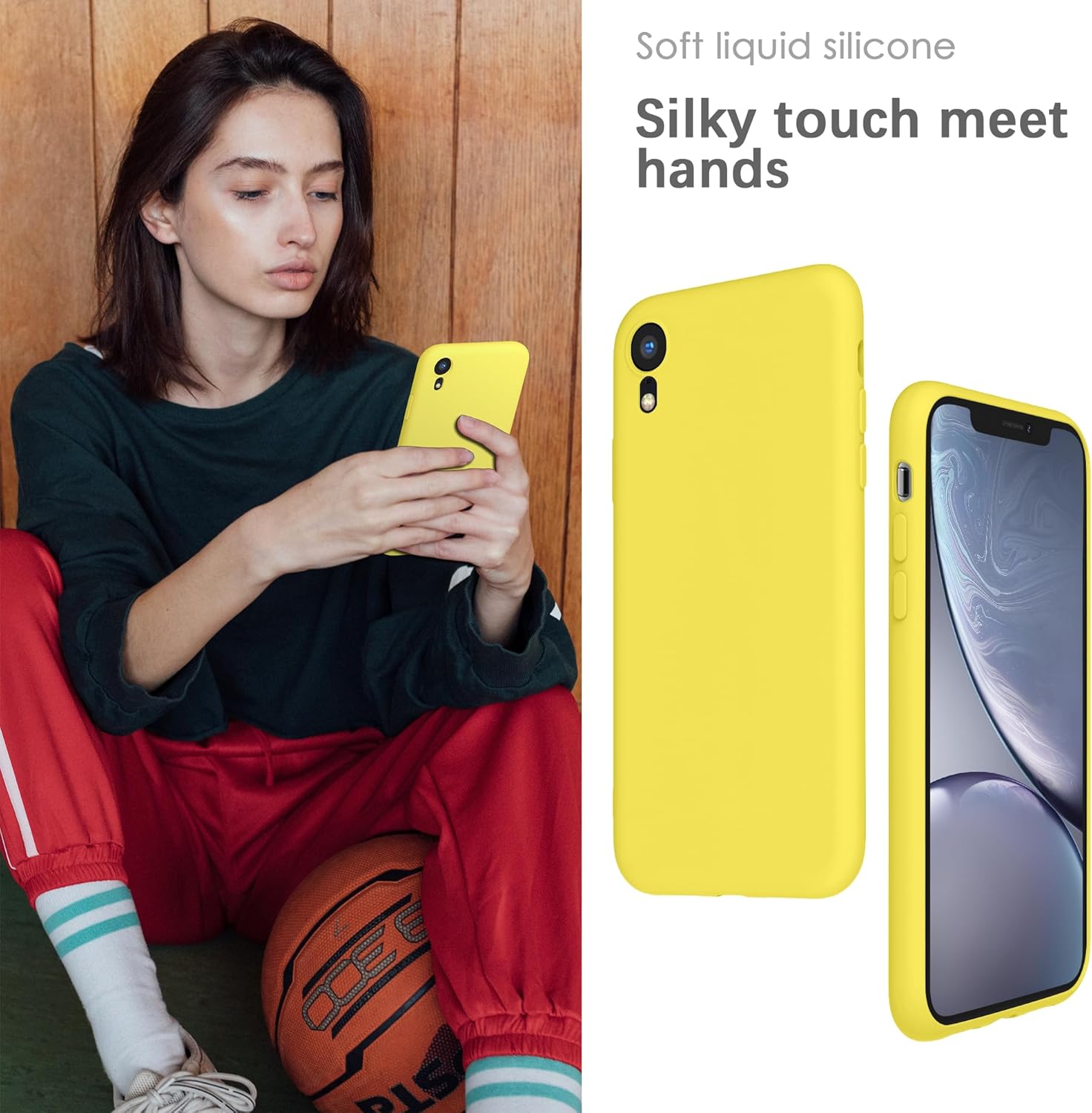 YATWIN Кейс за iPhone XR, Премиум силиконов калъф за мобилен телефон с копринено меко покритие, Ултра тънък, Удароустойчив, Устойчив на надраскване, Защитен калъф, Жълт
