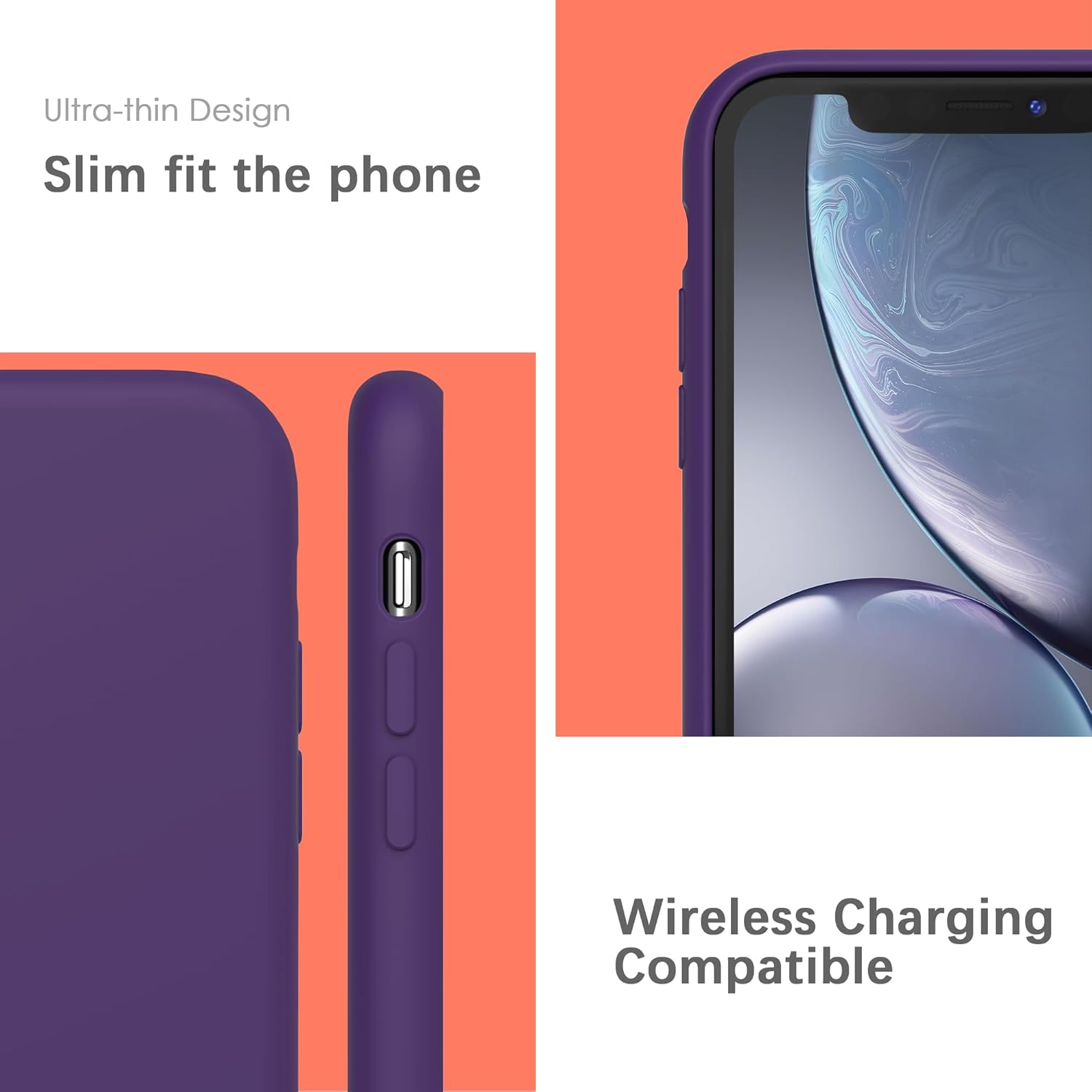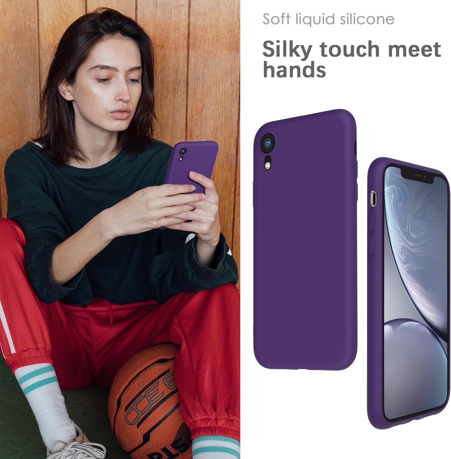 YATWIN Кейс за iPhone XR, Премиум силиконов калъф за мобилен телефон с копринено меко покритие, Ултра тънък, Удароустойчив, Устойчив на надраскване, Защитен калъф, Лилав