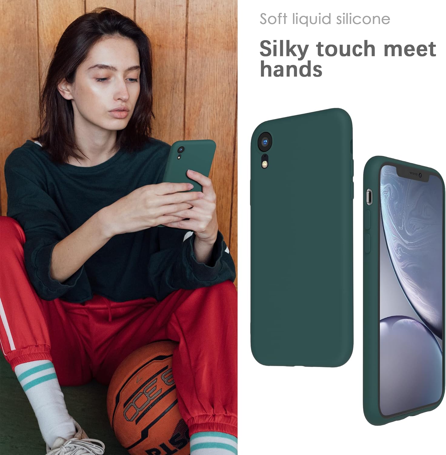 YATWIN Кейс за iPhone XR, Премиум силиконов калъф за мобилен телефон с копринено меко покритие, Ултра тънък, Удароустойчив, Устойчив на надраскване, Защитен калъф, Зелен