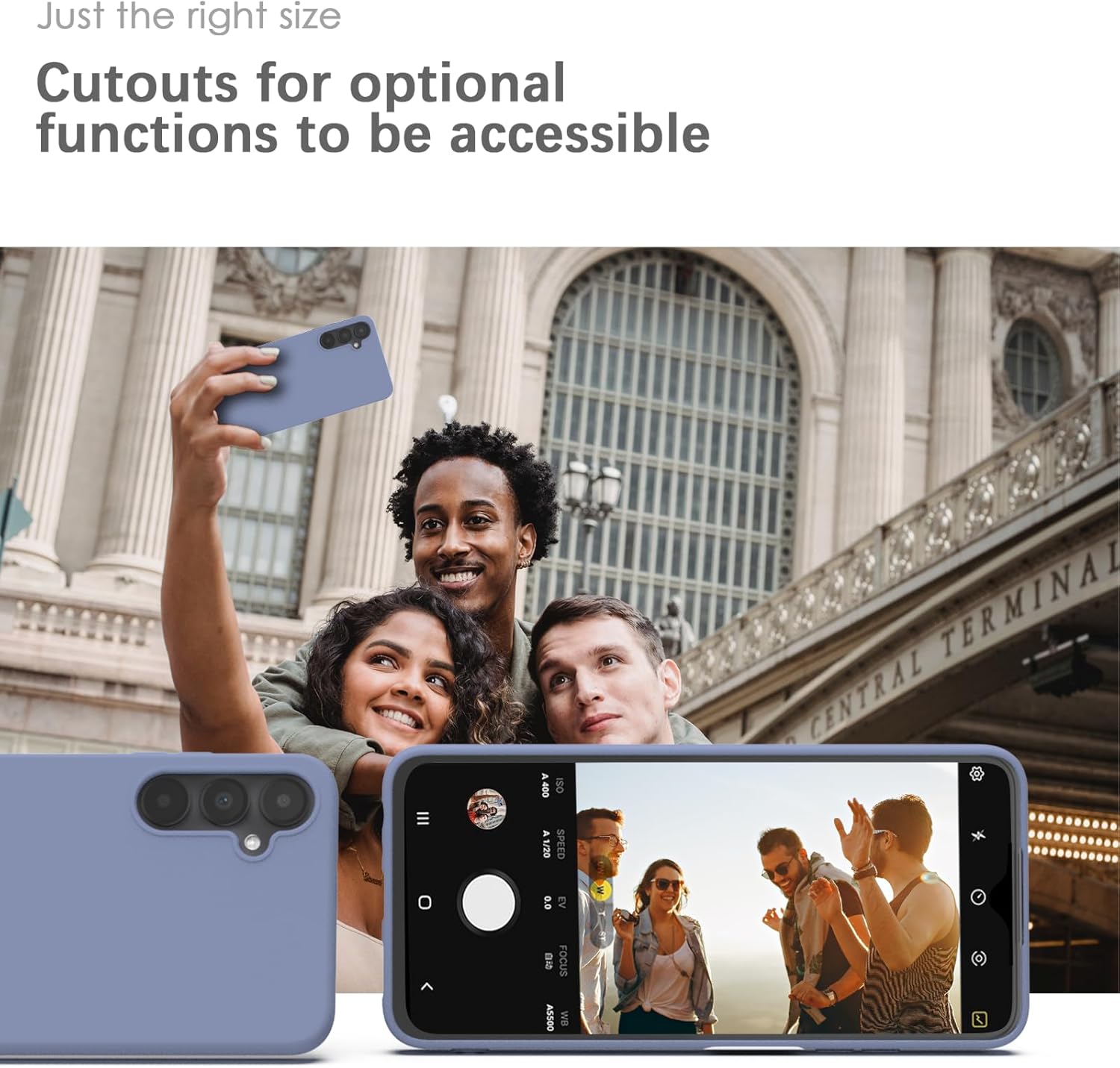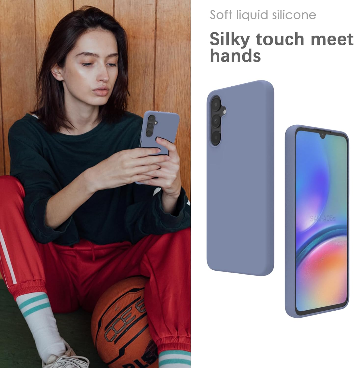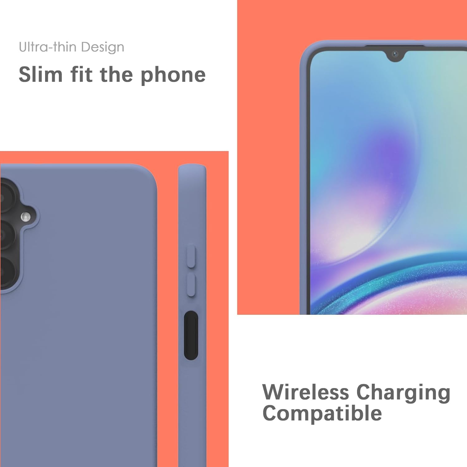 YATWIN Кейс за Samsung Galaxy A05S, Премиум силиконов калъф за мобилен телефон със защита на камерата, Копринен, Мек на допир, Ултра тънък, Удароустойчив, Устойчив на надраскване, Защитен калъф, Лавандулово сив