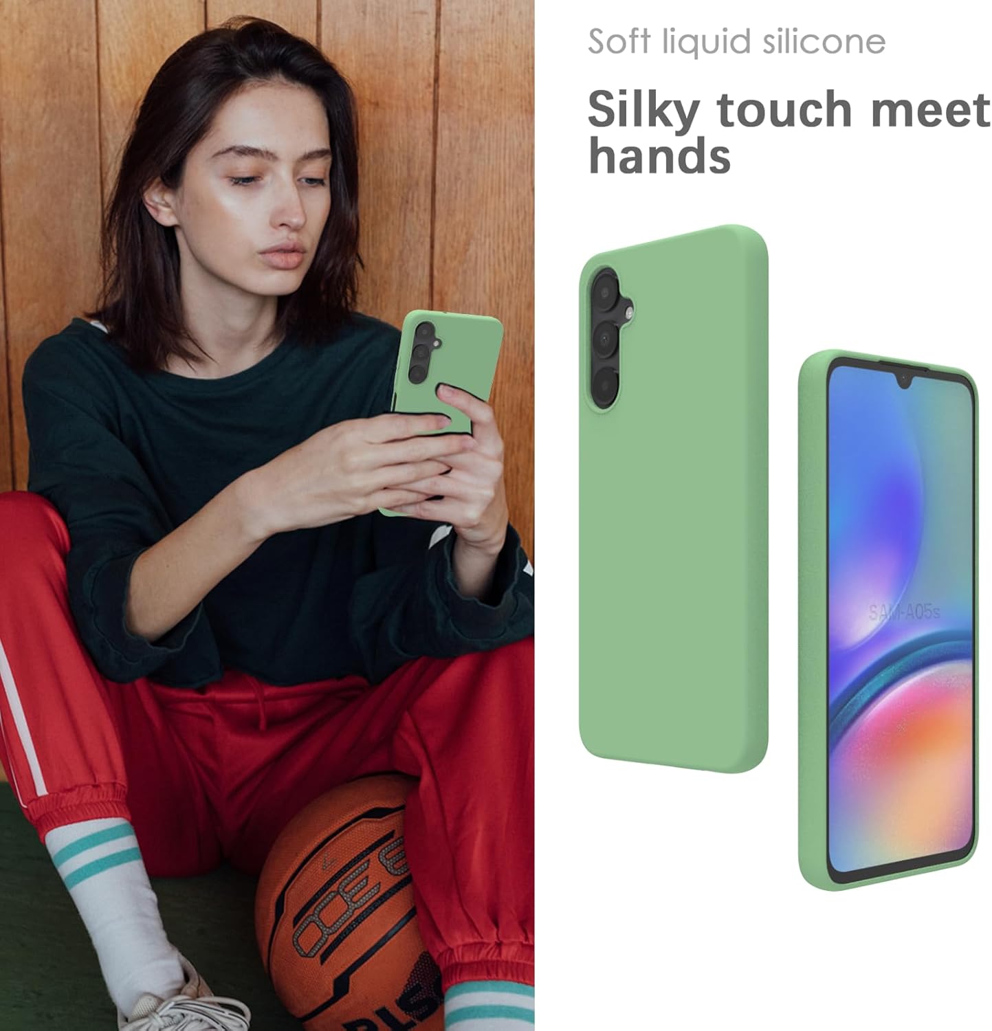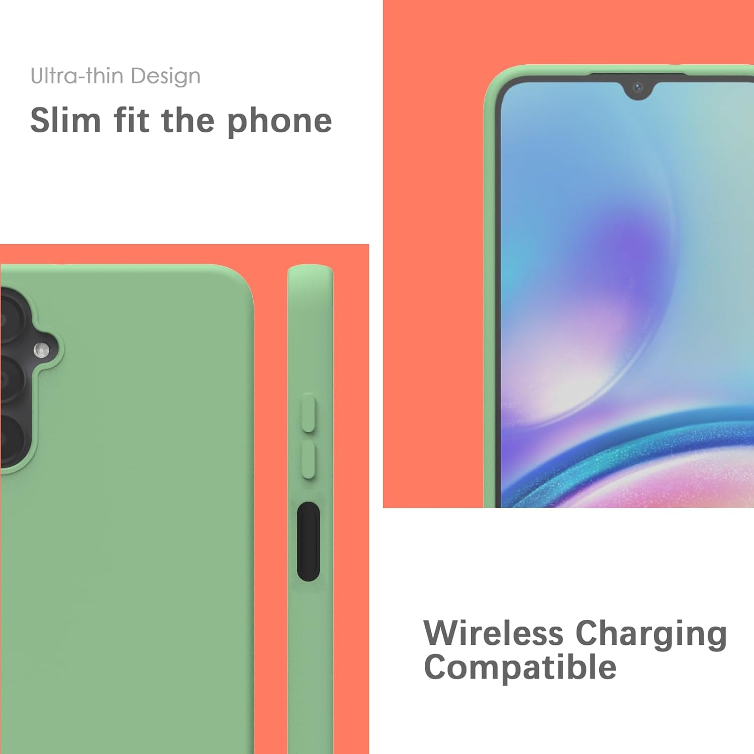 YATWIN Кейс за Samsung Galaxy A05S, Премиум силиконов калъф за мобилен телефон със защита на камерата, Копринен, Мек на допир, Ултра тънък, Удароустойчив, Устойчив на надраскване, Защитен калъф, Ментово зелен