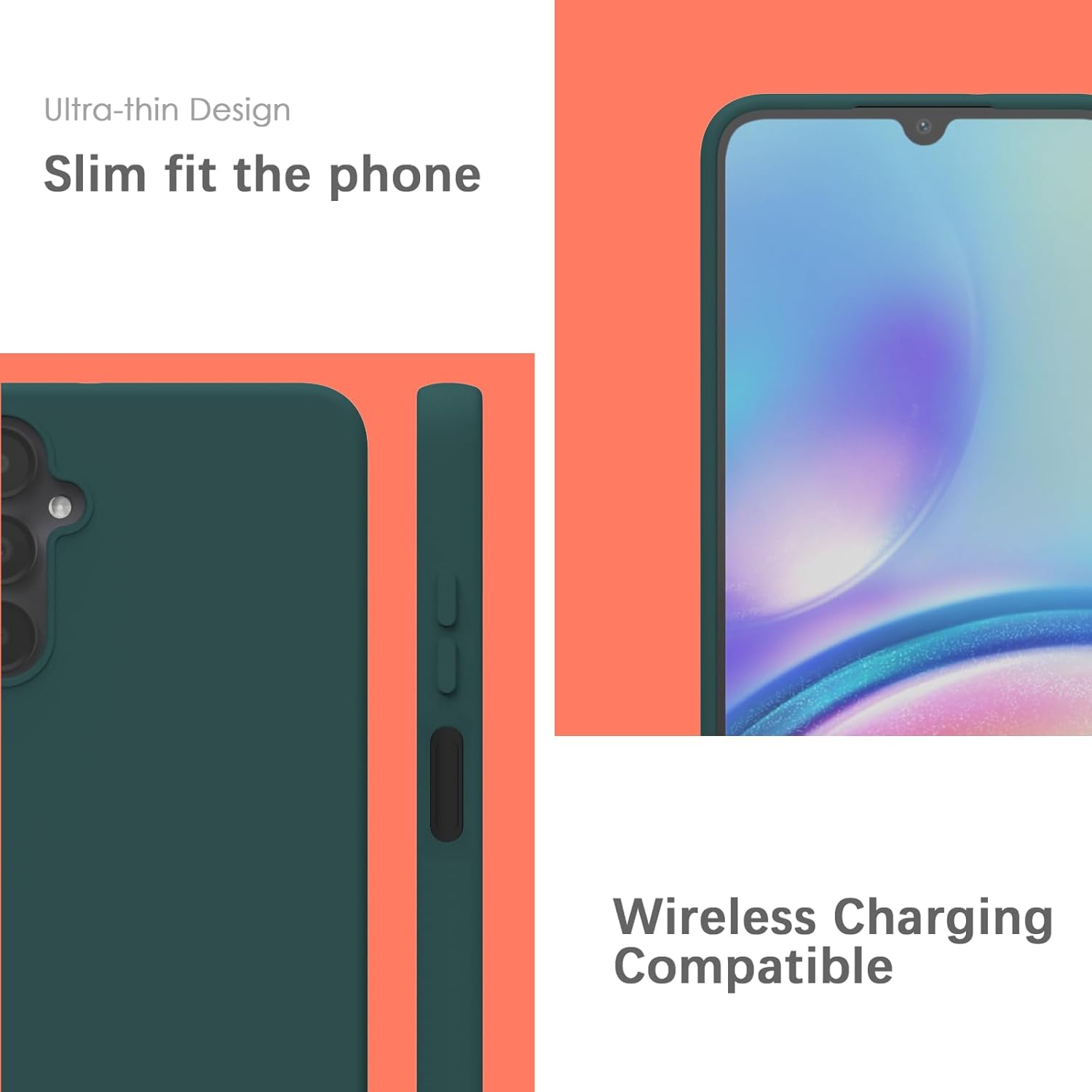 YATWIN Кейс за Samsung Galaxy A05S, Премиум силиконов калъф за мобилен телефон със защита на камерата, Копринен, Мек на допир, Ултра тънък, Удароустойчив, Устойчив на надраскване, Защитен калъф, Зелен