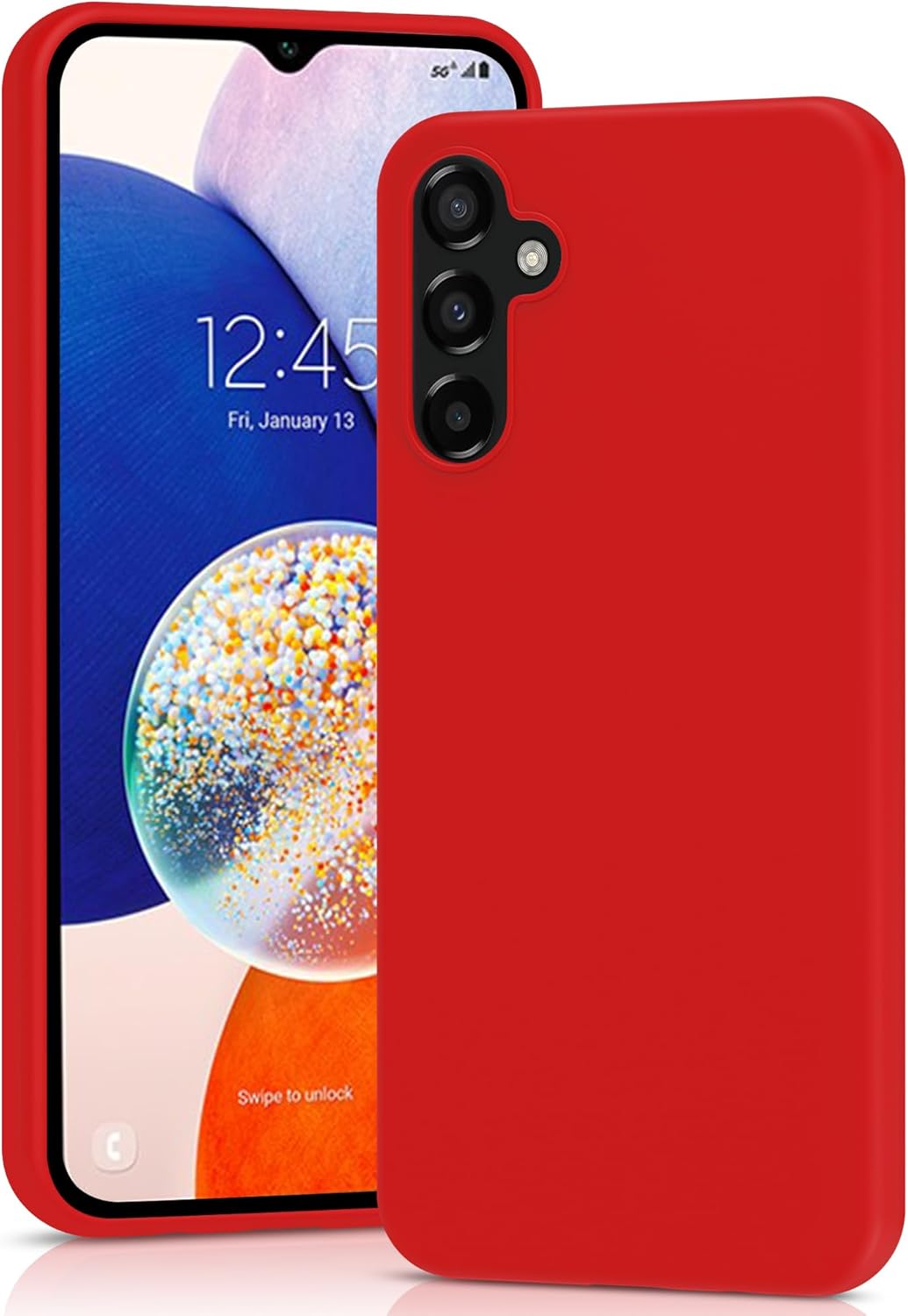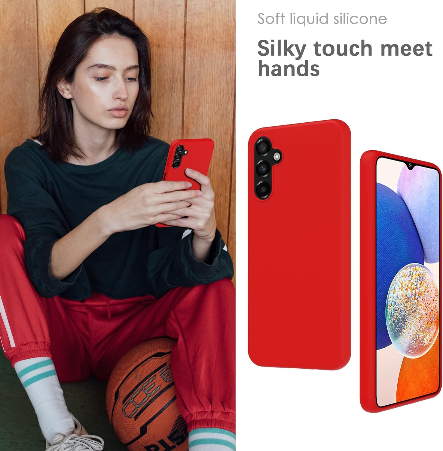 YATWIN Кейс за Samsung Galaxy A14 4G/5G, Премиум силиконов калъф за мобилен телефон със защита на камерата, Копринен, Мек на допир, Ултра тънък, Удароустойчив, Устойчив на надраскване, Защитен калъф, Червен