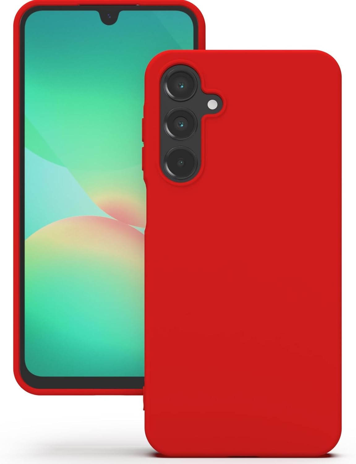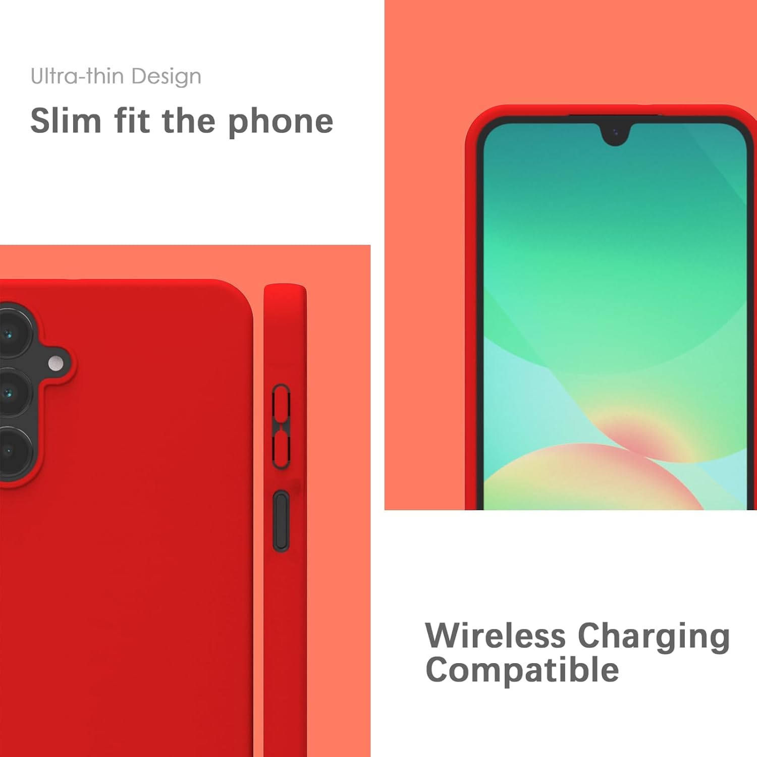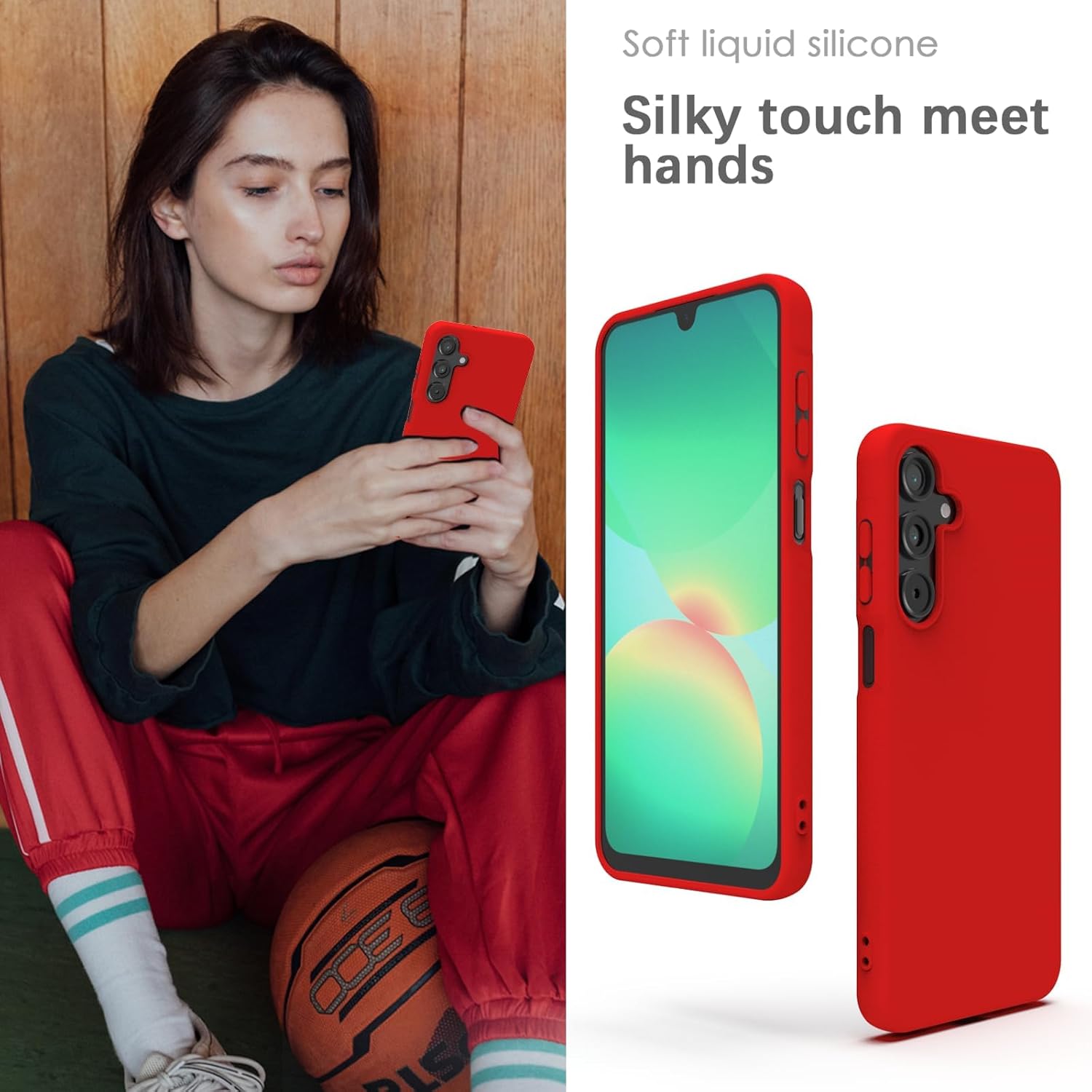 YATWIN Кейс за Samsung Galaxy A26 5G, Премиум силиконов калъф за мобилен телефон със защита на камерата, Копринен, Мек на допир, Ултра тънък, Удароустойчив, Устойчив на надраскване, Защитен калъф, Червен