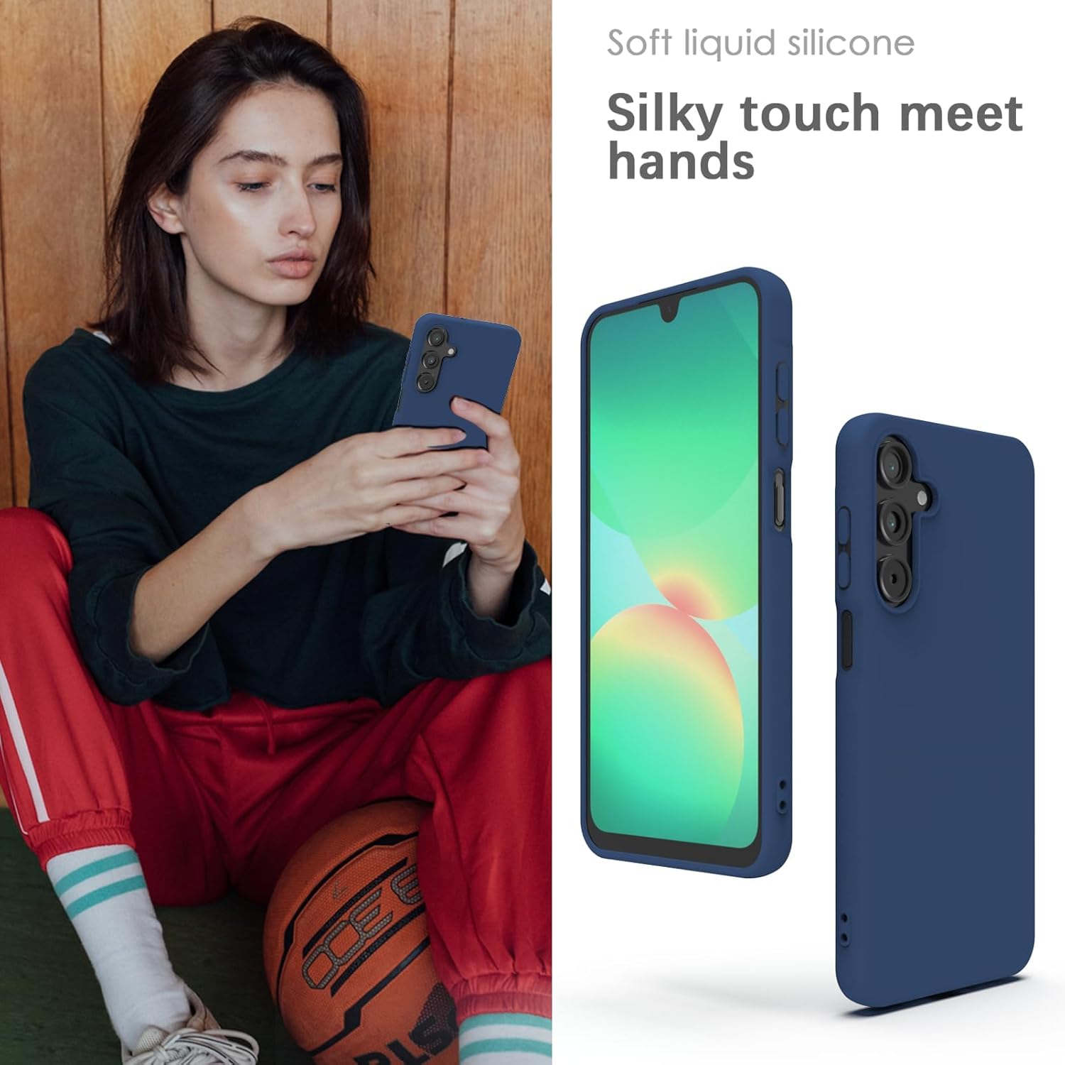 YATWIN Кейс за Samsung Galaxy A26 5G, Премиум силиконов калъф за мобилен телефон със защита на камерата, Копринен, Мек на допир, Ултра тънък, Удароустойчив, Устойчив на надраскване, Защитен калъф, Син