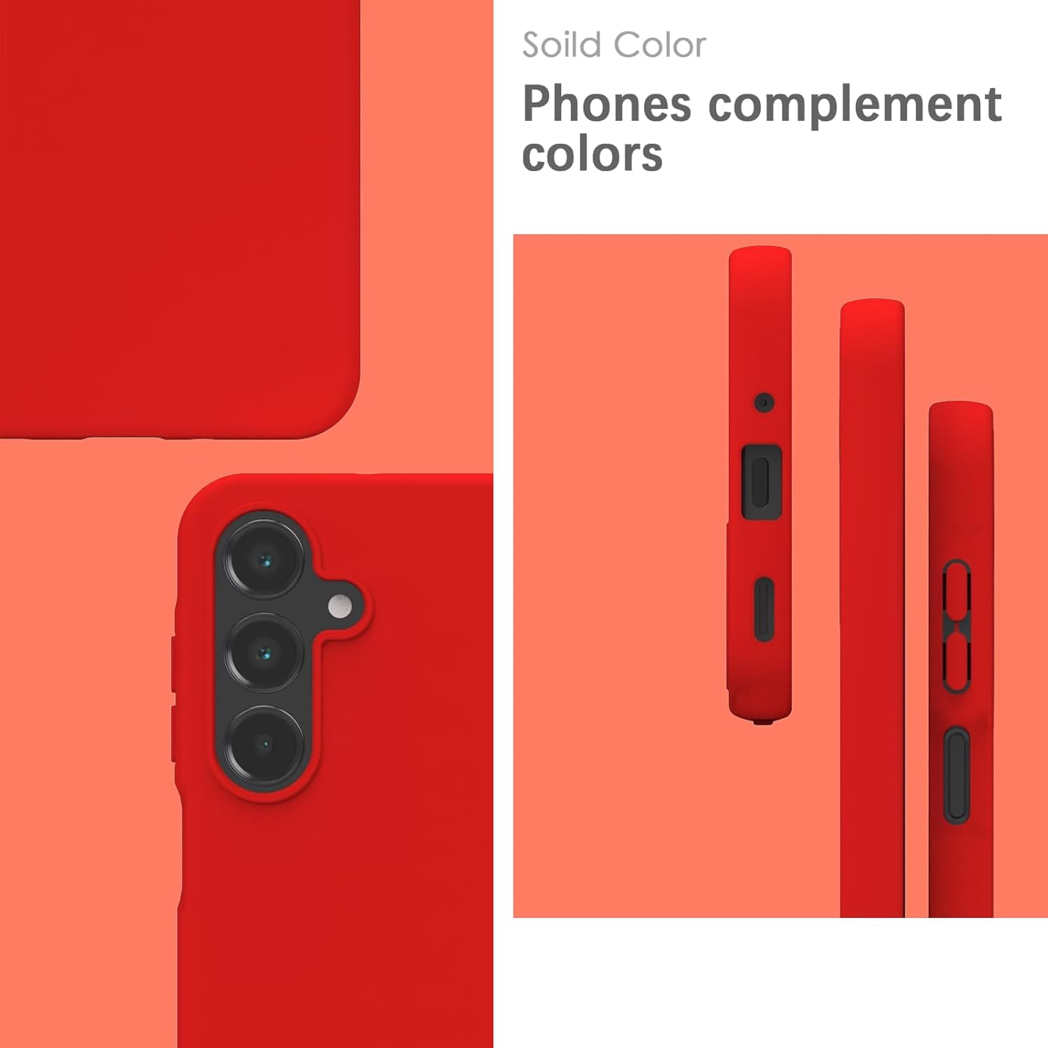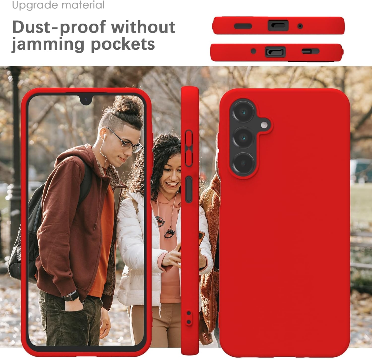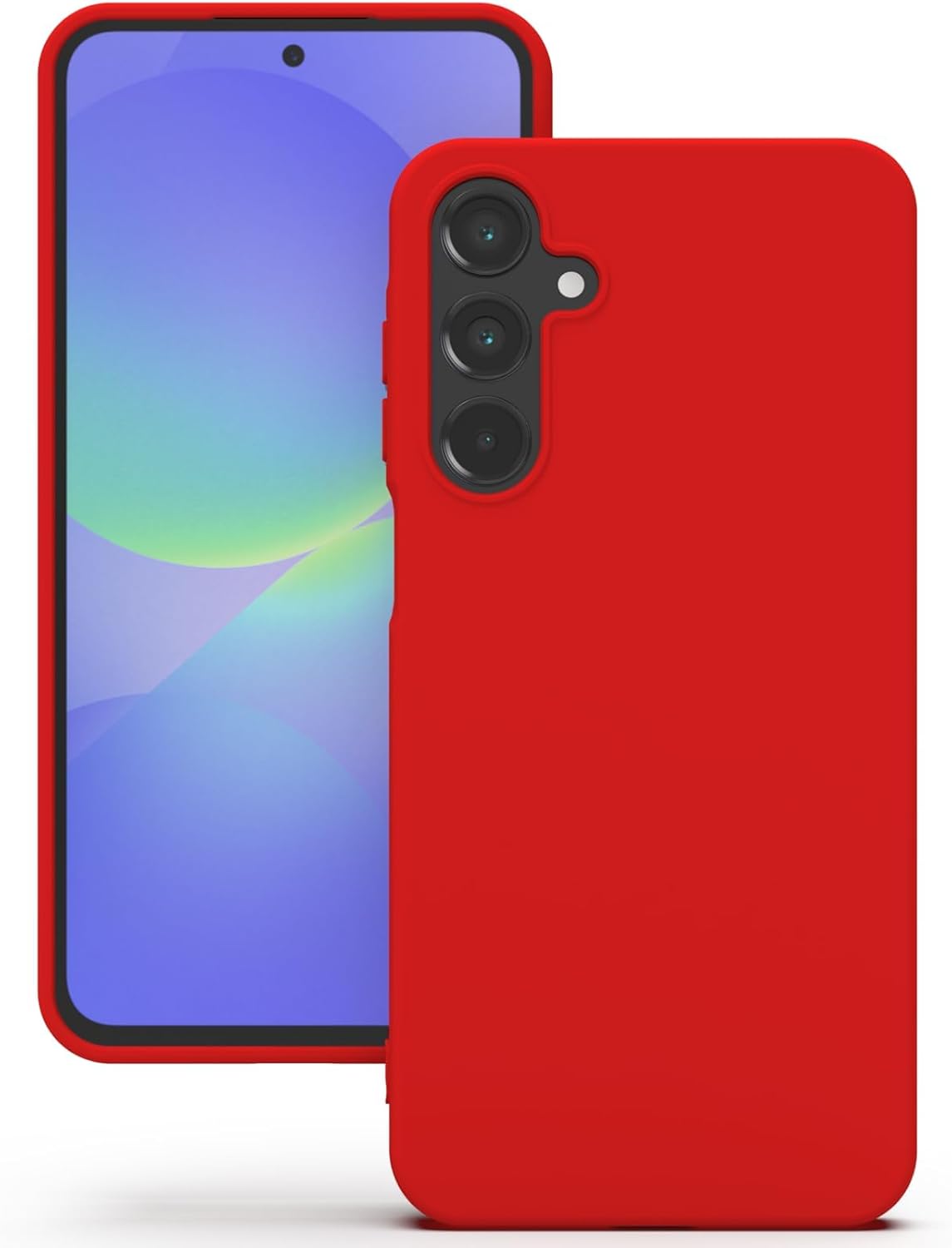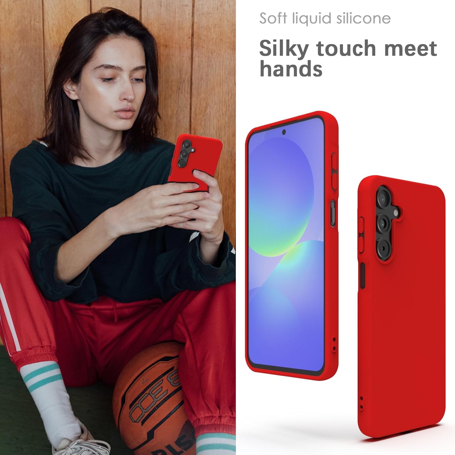 YATWIN Кейс за Samsung Galaxy A36 5G, Премиум силиконов калъф за мобилен телефон със защита на камерата, Копринен, Мек на допир, Ултра тънък, Удароустойчив, Устойчив на надраскване, Защитен калъф, Червен