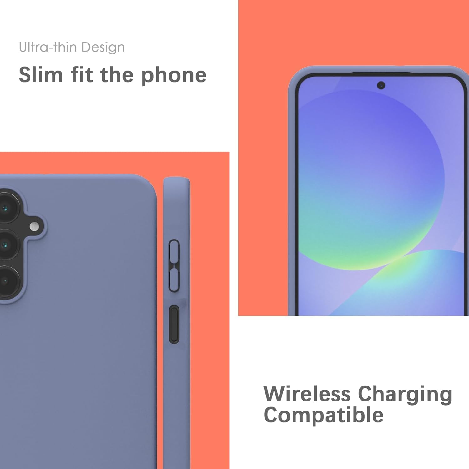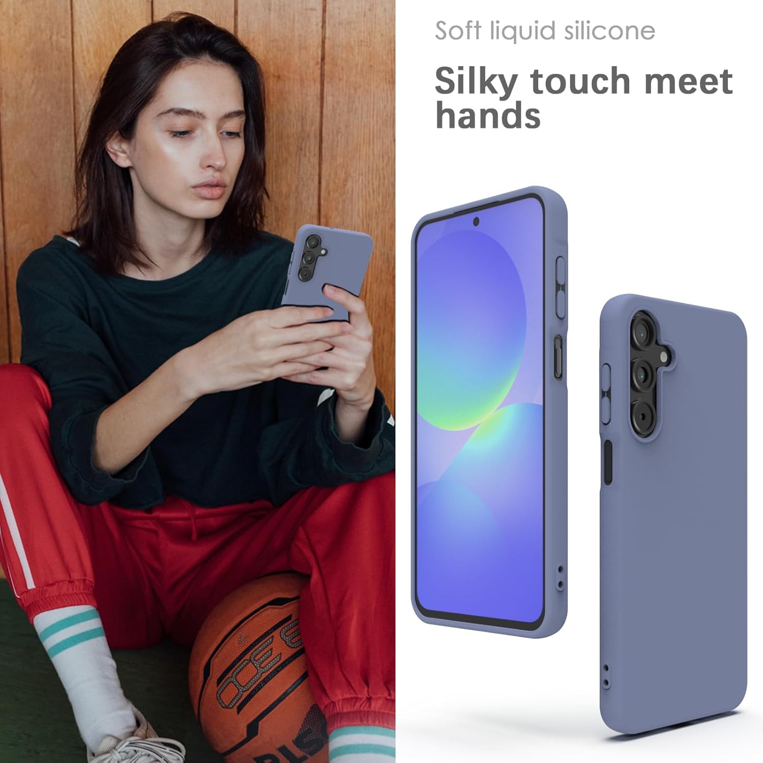 YATWIN Кейс за Samsung Galaxy A36 5G, Премиум силиконов калъф за мобилен телефон със защита на камерата, Копринен, Мек на допир, Ултра тънък, Удароустойчив, Устойчив на надраскване, Защитен калъф, Лавандулово сив