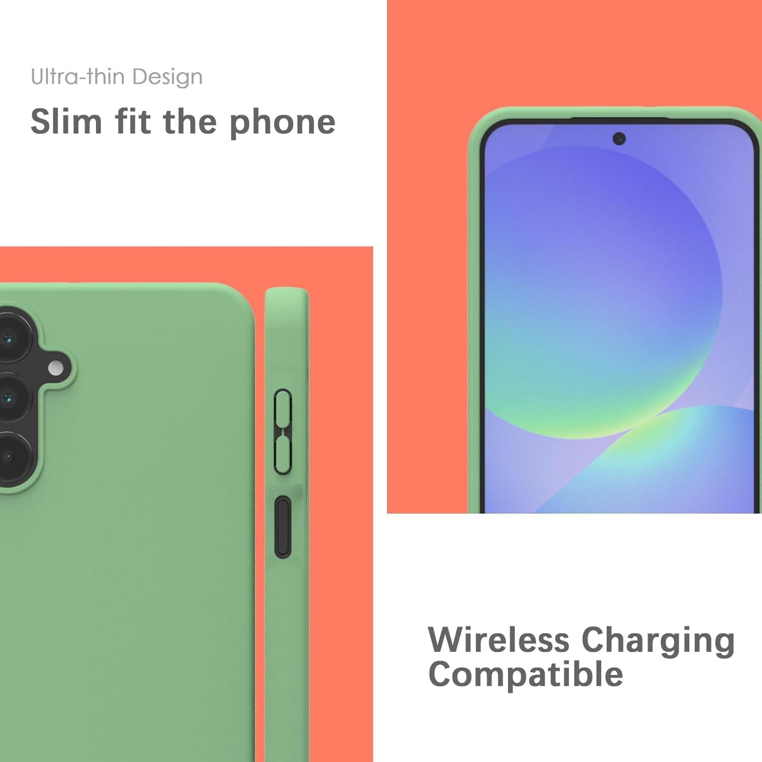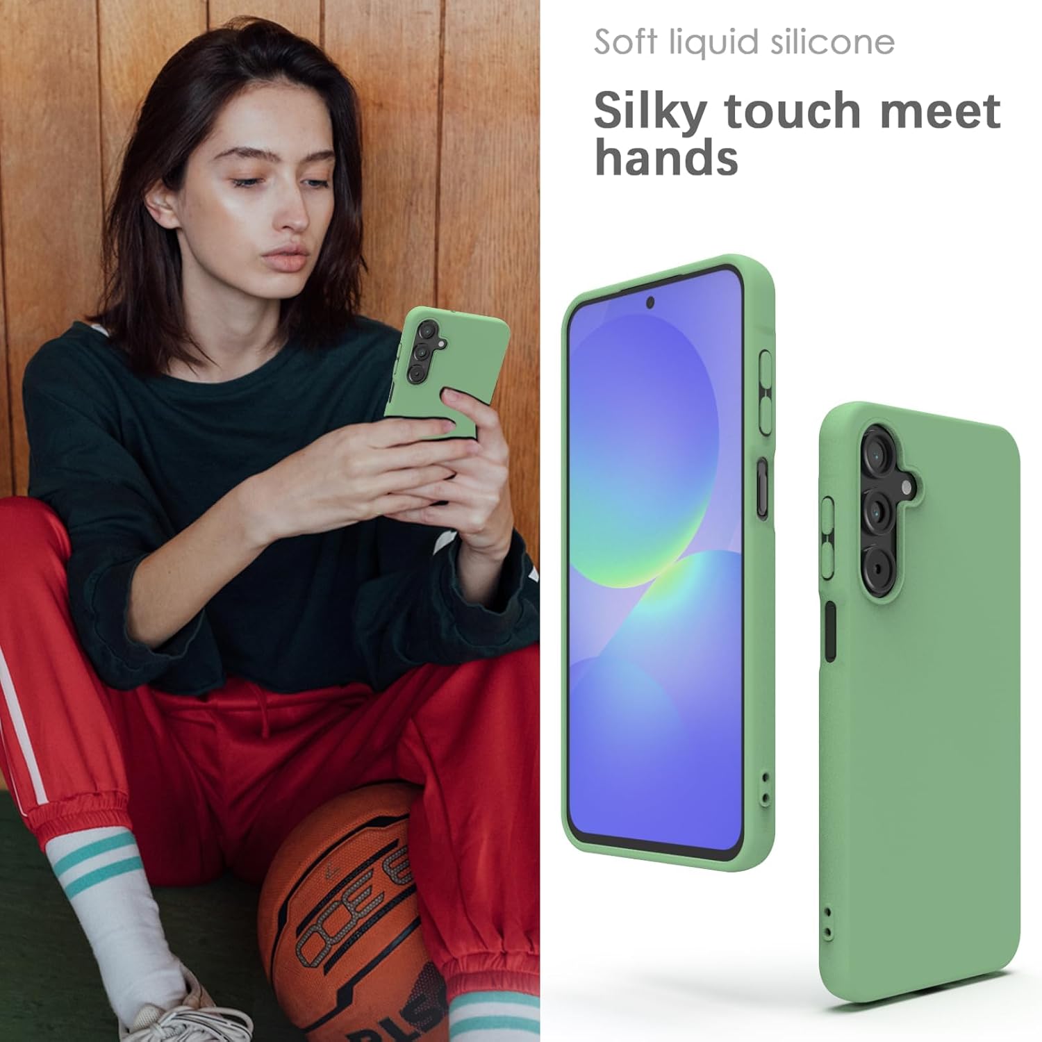 YATWIN Кейс за Samsung Galaxy A36 5G, Премиум силиконов калъф за мобилен телефон със защита на камерата, Копринен, Мек на допир, Ултра тънък, Удароустойчив, Устойчив на надраскване, Защитен калъф, Ментово зелен