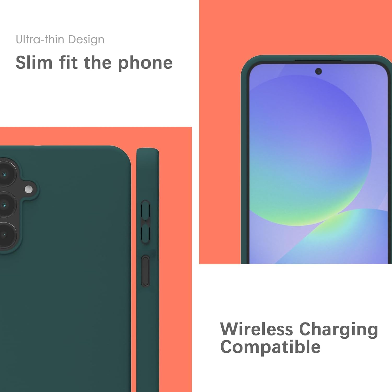 YATWIN Кейс за Samsung Galaxy A36 5G, Премиум силиконов калъф за мобилен телефон със защита на камерата, Копринен, Мек на допир, Ултра тънък, Удароустойчив, Устойчив на надраскване, Защитен калъф, Зелен