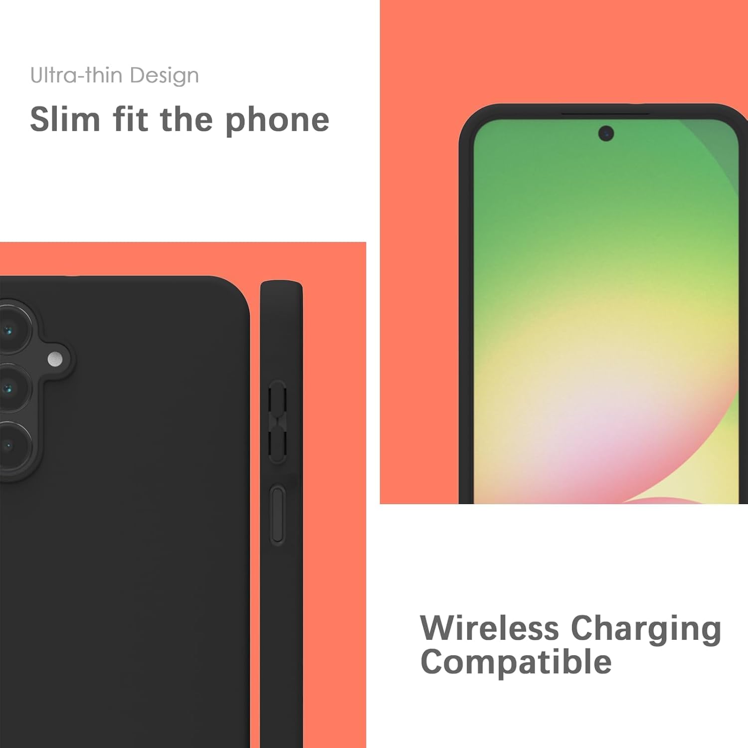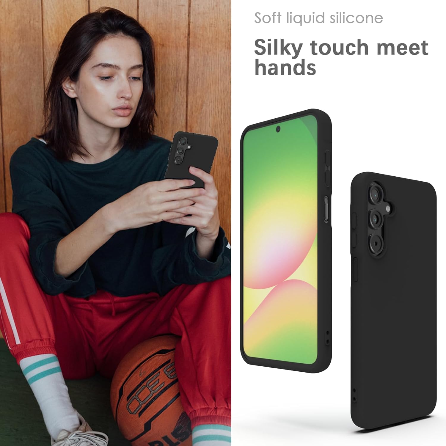 YATWIN Кейс за Samsung Galaxy A56 5G, Премиум силиконов калъф за мобилен телефон със защита на камерата, Копринен, Мек на допир, Ултра тънък, Удароустойчив, Устойчив на надраскване, Защитен калъф, Черен
