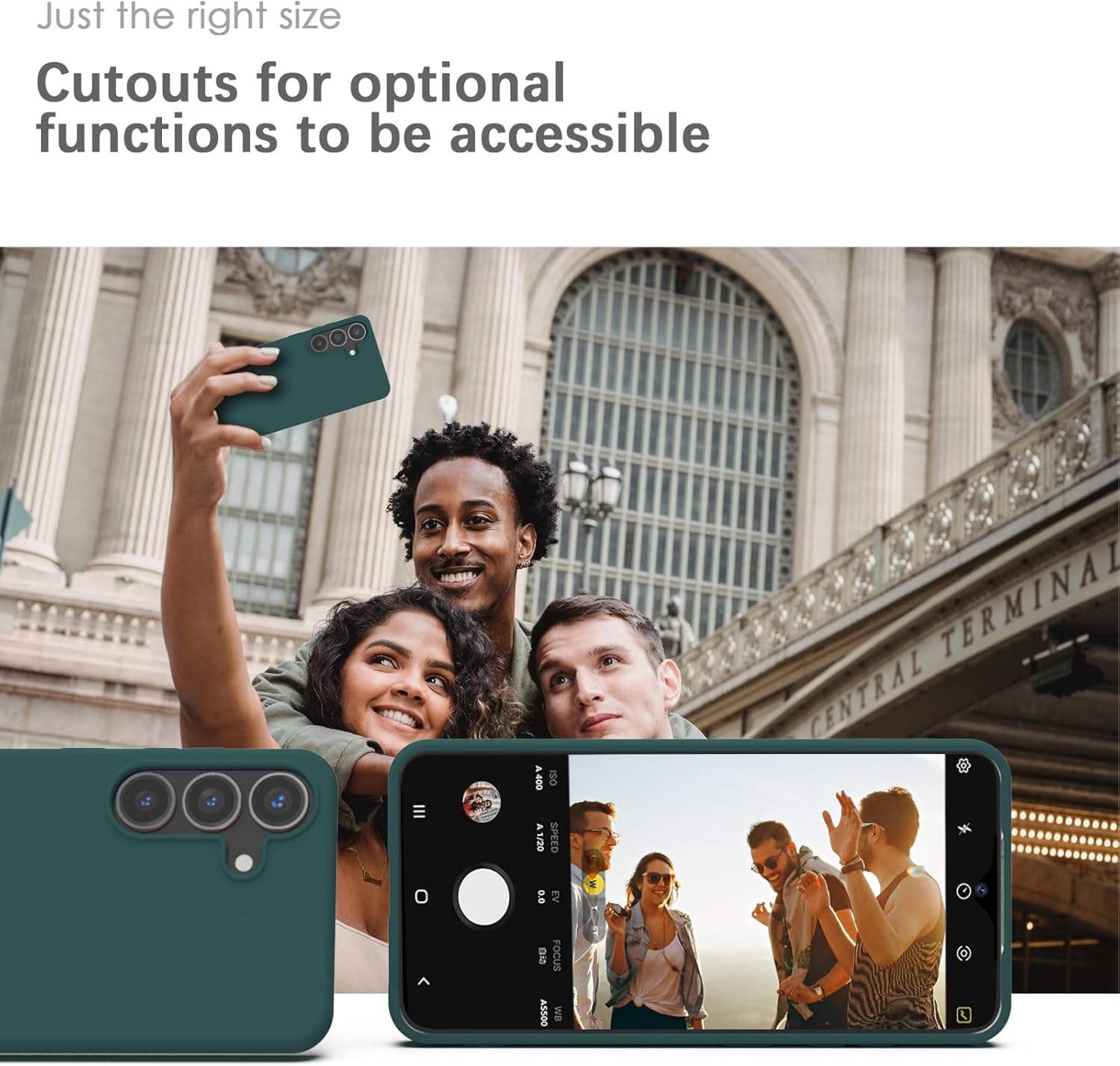 • Перфектно подравнените изрези улесняват премахването/включването на кабела за зареждане, не пречат на камерата и запазват качеството на звука на високоговорителите.