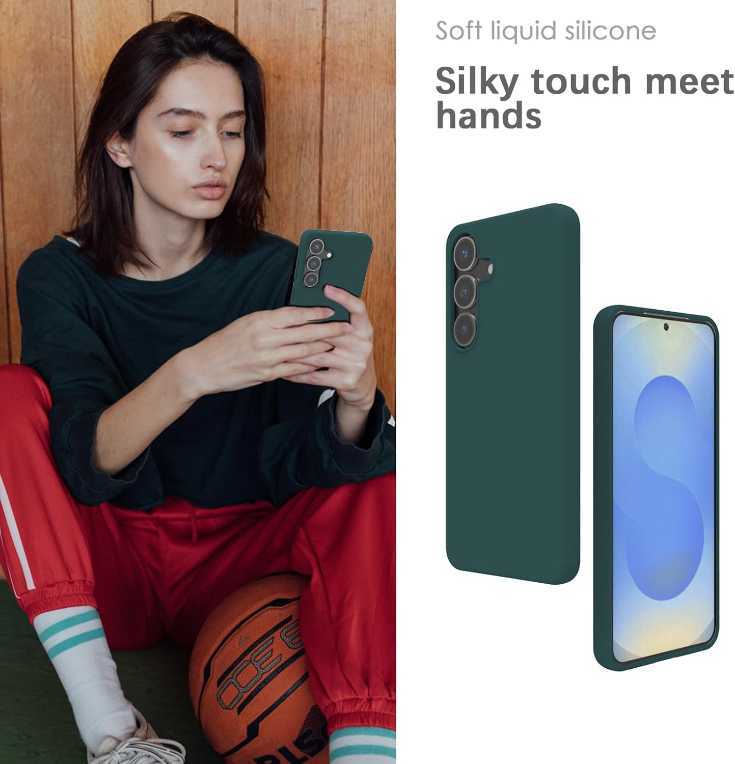 • Копринената, мека повърхност на силикона е приятна в ръката. А от вътрешната страна, мека микрофибърна подплата осигурява още по-голяма защита.
