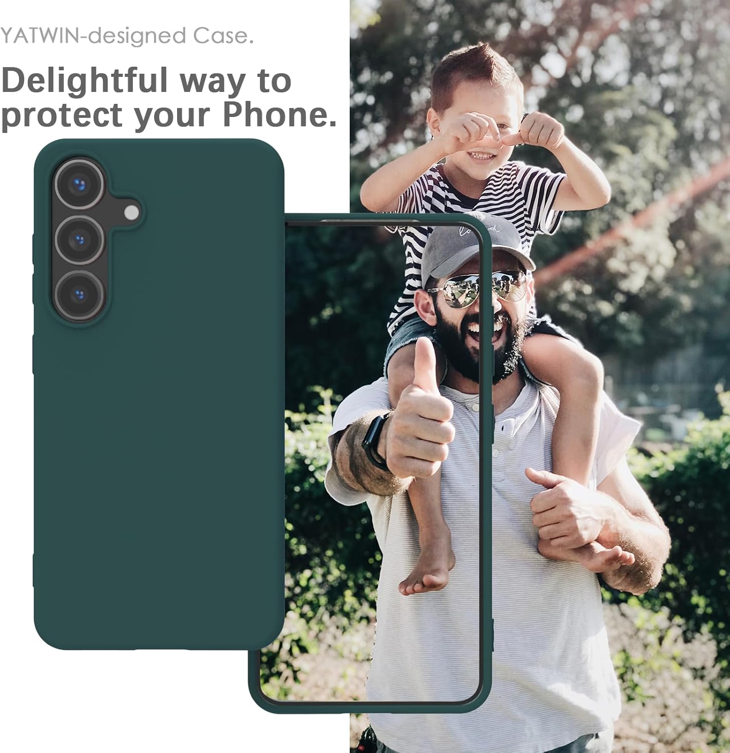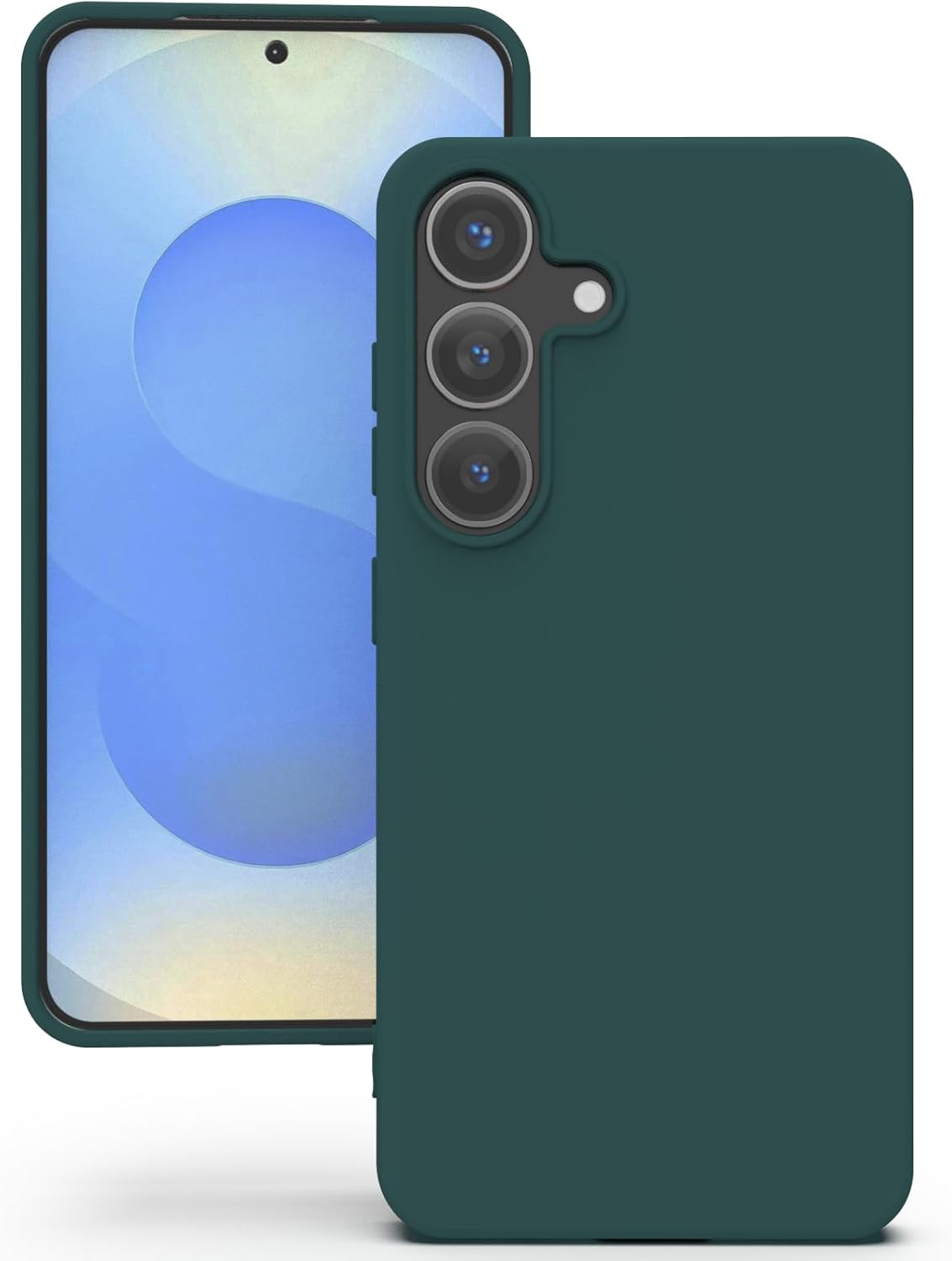 YATWIN Кейс за Samsung Galaxy S25 5G, Премиум силиконов калъф за мобилен телефон със защита на камерата, Копринен, Мек на допир, Ултра тънък, Удароустойчив, Устойчив на надраскване, Защитен калъф, Зелен