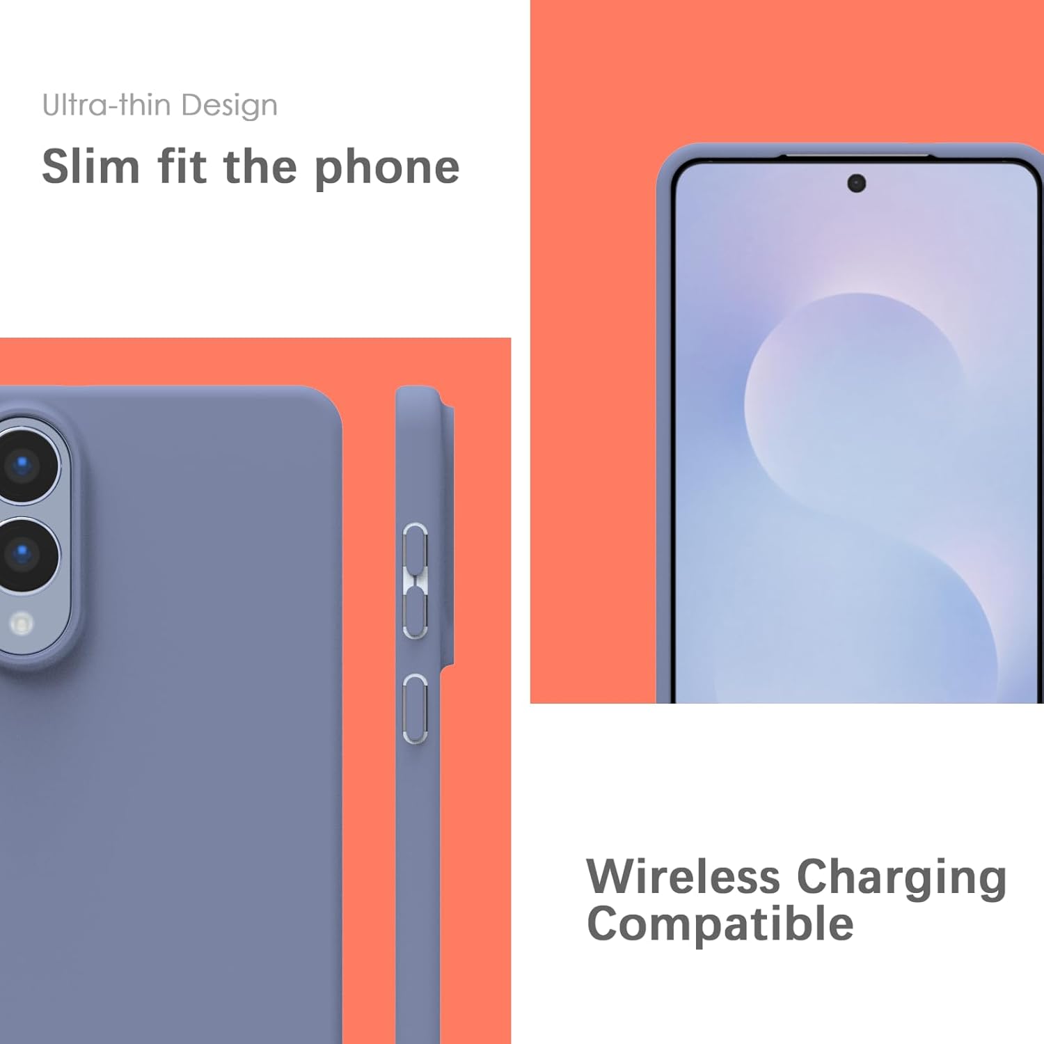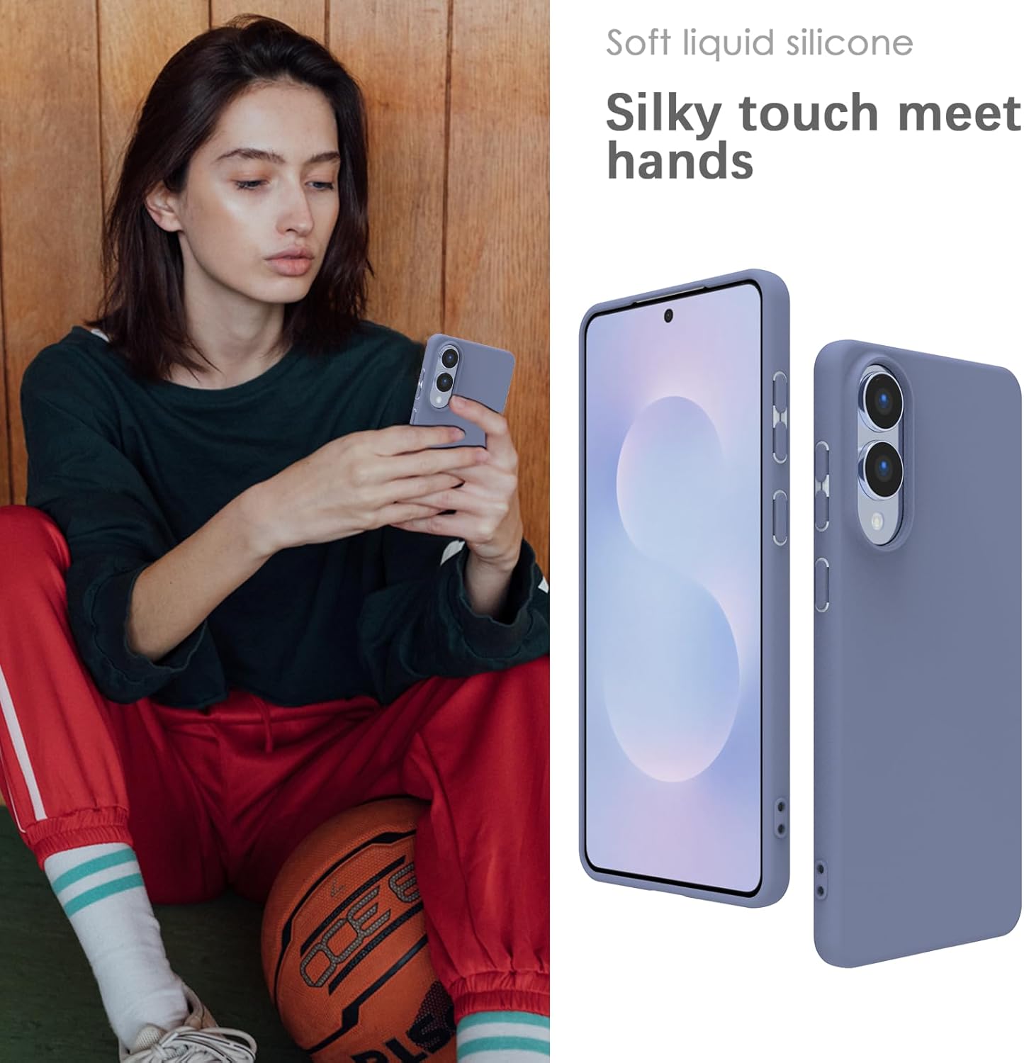 YATWIN Кейс за Samsung Galaxy S25 Edge, Премиум силиконов калъф за мобилен телефон с копринено меко покритие, Ултра тънък, Удароустойчив, Устойчив на надраскване, Защитен калъф, Лавандулово сив
