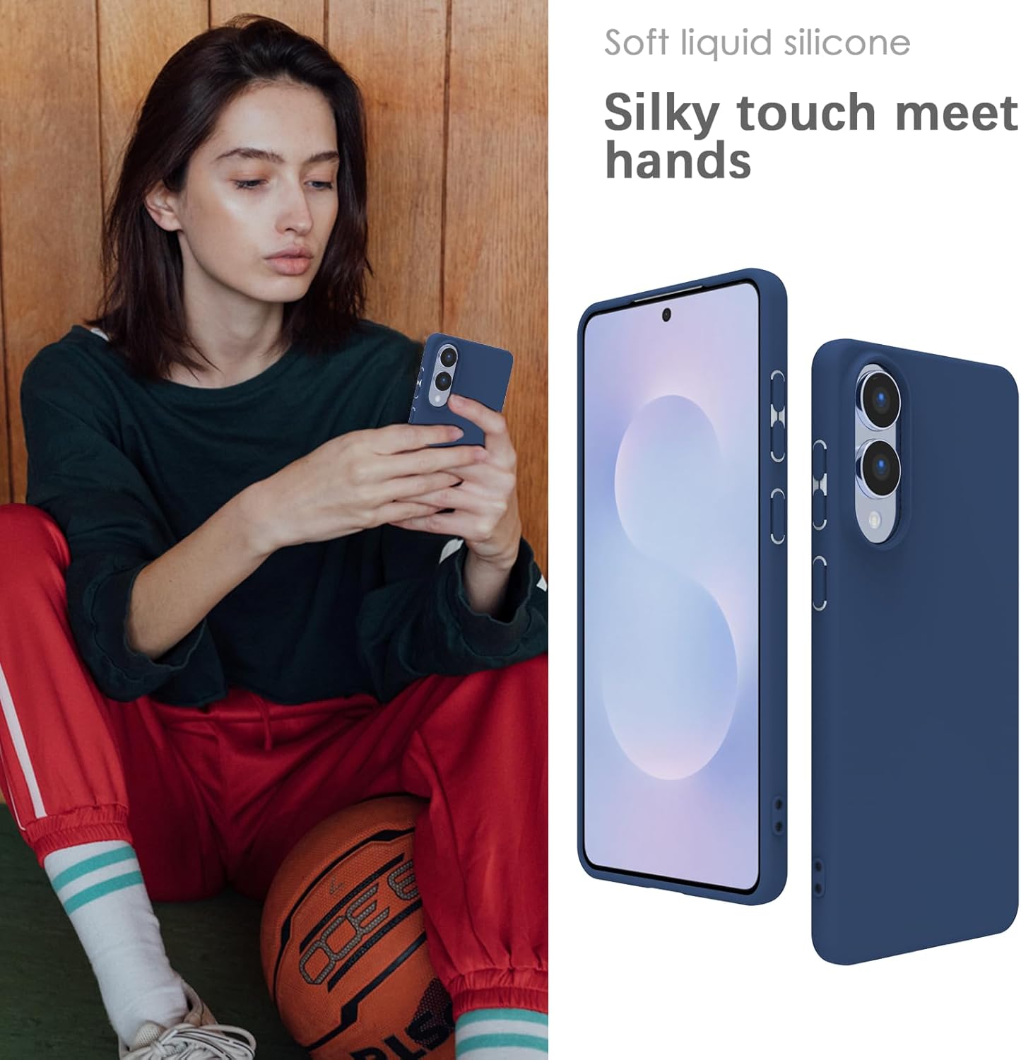 YATWIN Кейс за Samsung Galaxy S25 Edge, Премиум силиконов калъф за мобилен телефон с копринено меко покритие, Ултра тънък, Удароустойчив, Устойчив на надраскване, Защитен калъф, Син