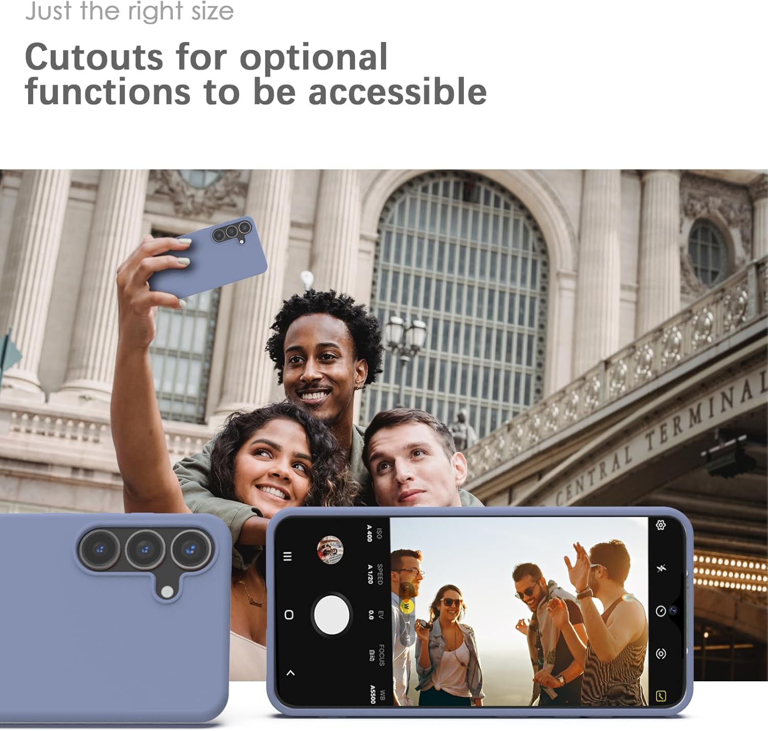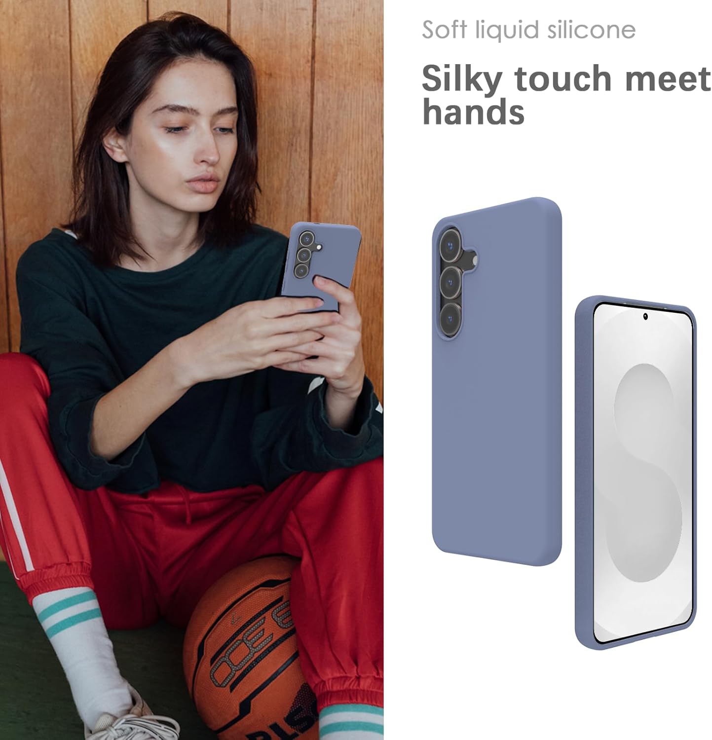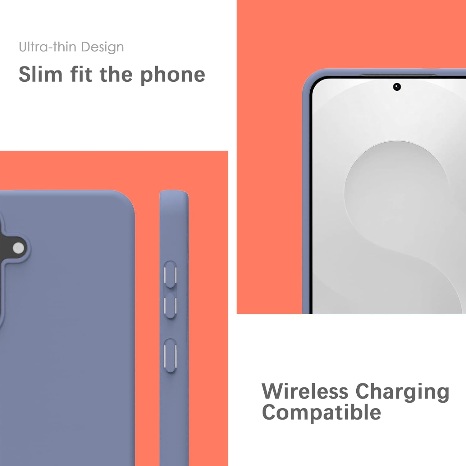 YATWIN Кейс за Samsung Galaxy S25 Plus, Премиум силиконов калъф за мобилен телефон със защита на камерата, Копринен, Мек на допир, Ултра тънък, Удароустойчив, Устойчив на надраскване, Защитен калъф, Лавандулово сив