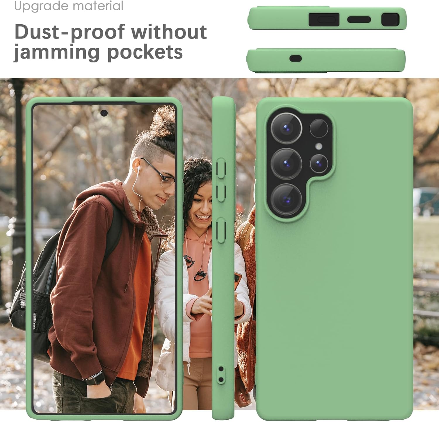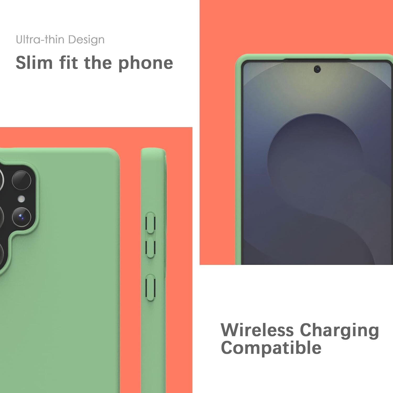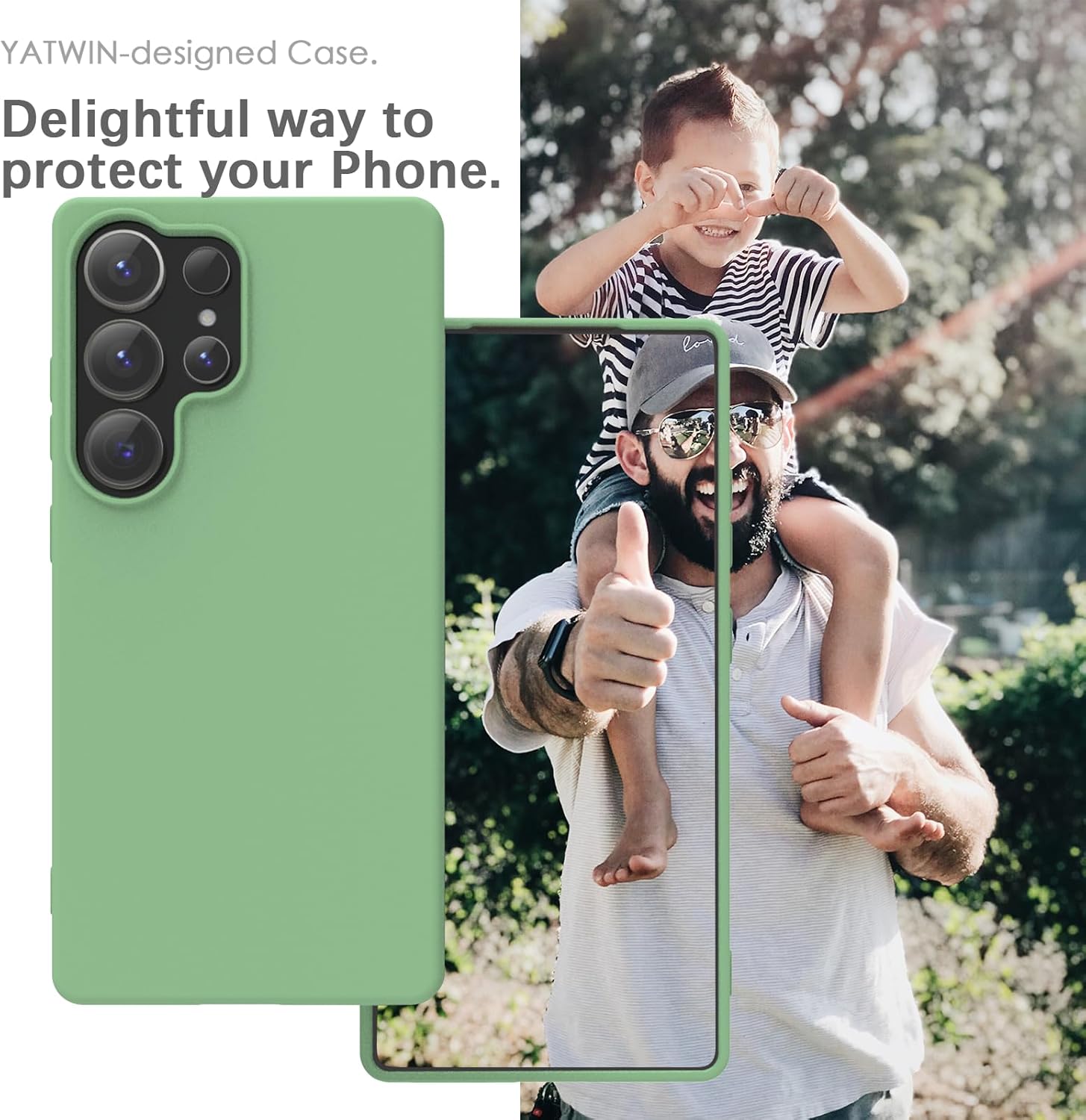 YATWIN Кейс за Samsung Galaxy S25 Ultra, Премиум силиконов калъф за мобилен телефон със защита на камерата, Копринен, Мек на допир, Ултра тънък, Удароустойчив, Устойчив на надраскване, Защитен калъф, Ментово зелен