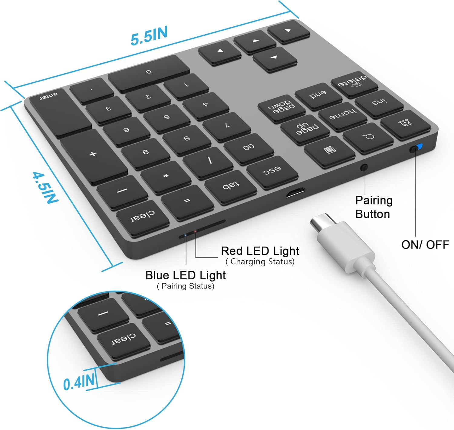 С тегло от 126 г и размери 142 x 115 x 9 мм, нашата Bluetooth цифрова клавиатура се отличава с минималистичен дизайн за стилен външен вид и е лесна за носене.