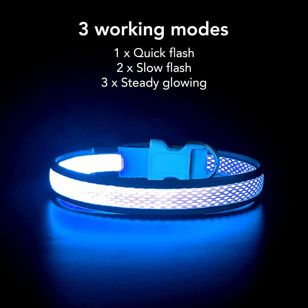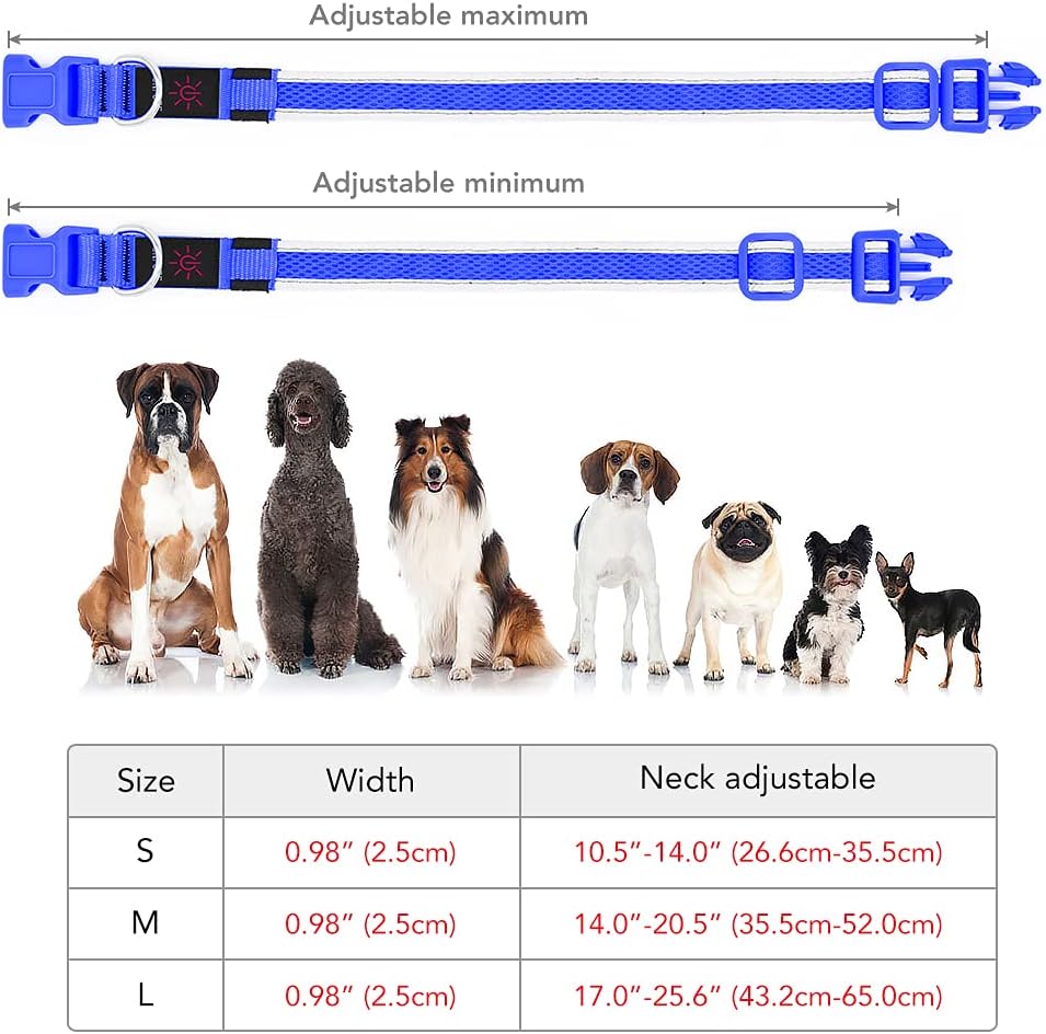 YFbrite Светещ нашийник за кучета, Презареждащ се LED нашийник за кучета, Регулируеми светлоотразителни нашийници за кучета, Безопасно светене през нощта (Син, L)