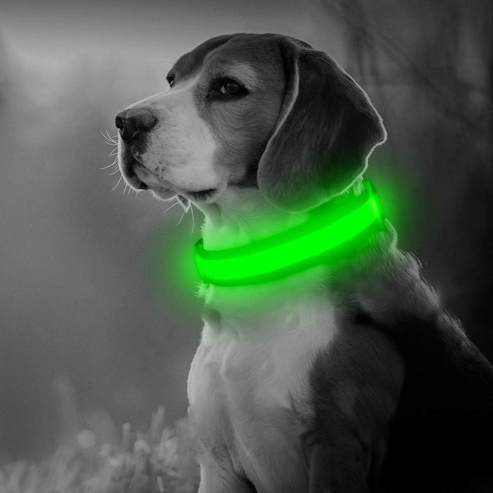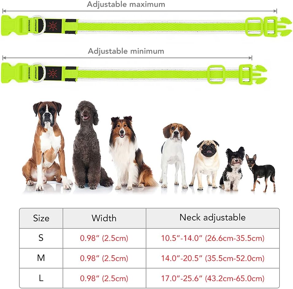 YFbrite Светещ нашийник за кучета, Презареждащи се LED нашийници за кучета, Мигащи регулируеми светлоотразителни нашийници за кучета, Безопасно светене през нощта (зелен, S)